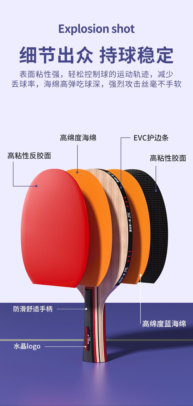 Raqueta de tenis de mesa de 361 productos genuinos profesional de alta elasticidad cara de la raqueta raqueta horizontal principiante raqueta doble niños juego de raquetas rectas