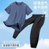 Traje Deportivo Personalizado Verano Seda de Hielo Secado Rápido Camiseta Manga Corta Pantalón Casual para Hombre Conjunto de Dos Piezas Blanco Gris