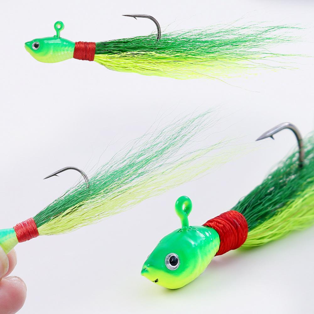 Señuelo Cabeza de Pescado Tipo Cabeza de Plomo Anzuelo Anti-Enganche Fondo Cinturón Cola de Pelo Anzuelo Simple con Farpas Garganta Lejana Pesca Marítima Agua Dulce Cebo Falso Cebo Duro