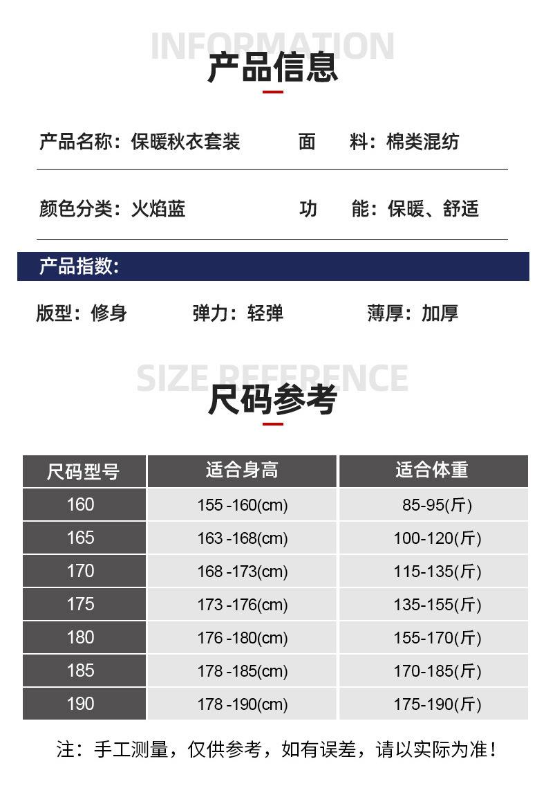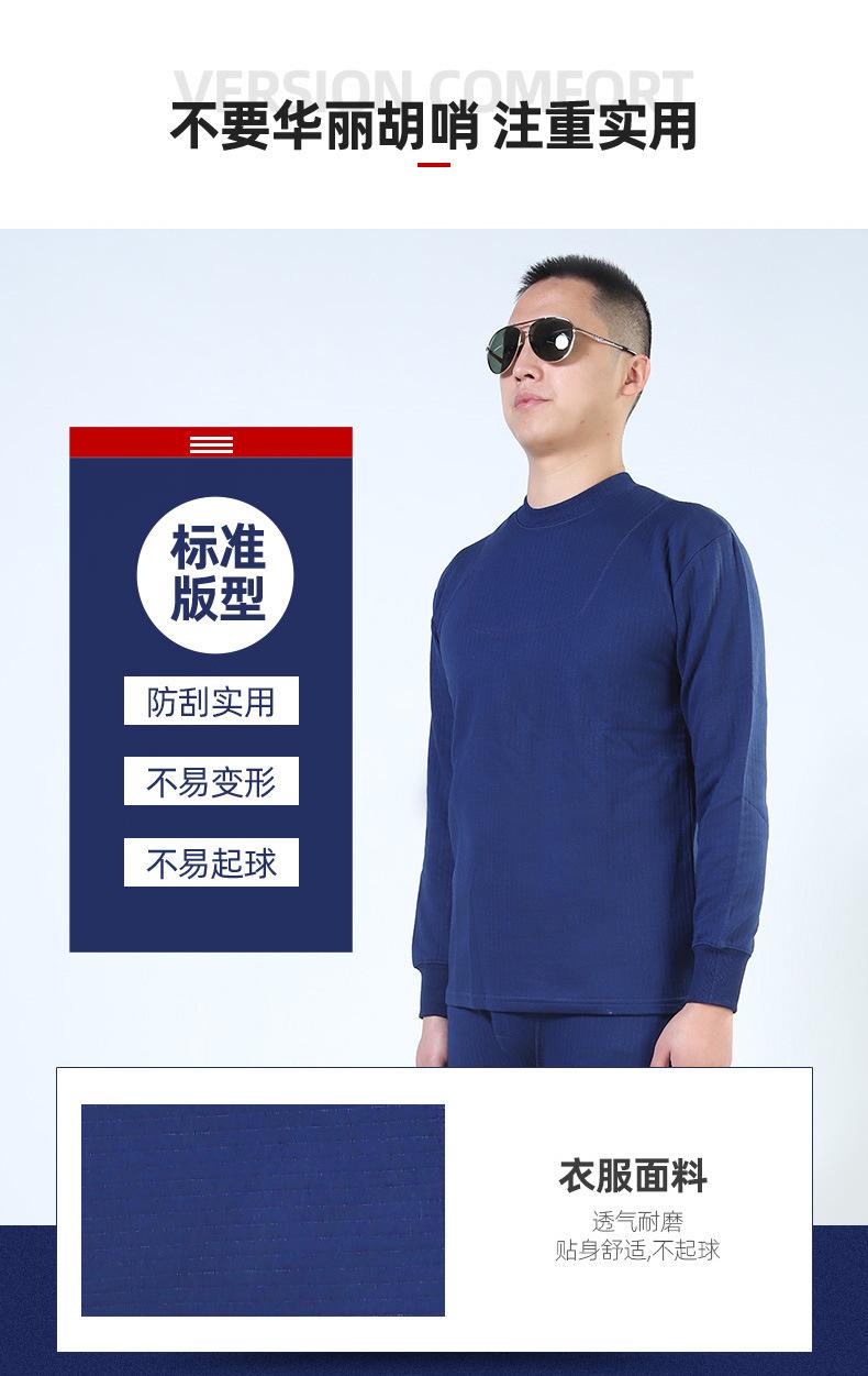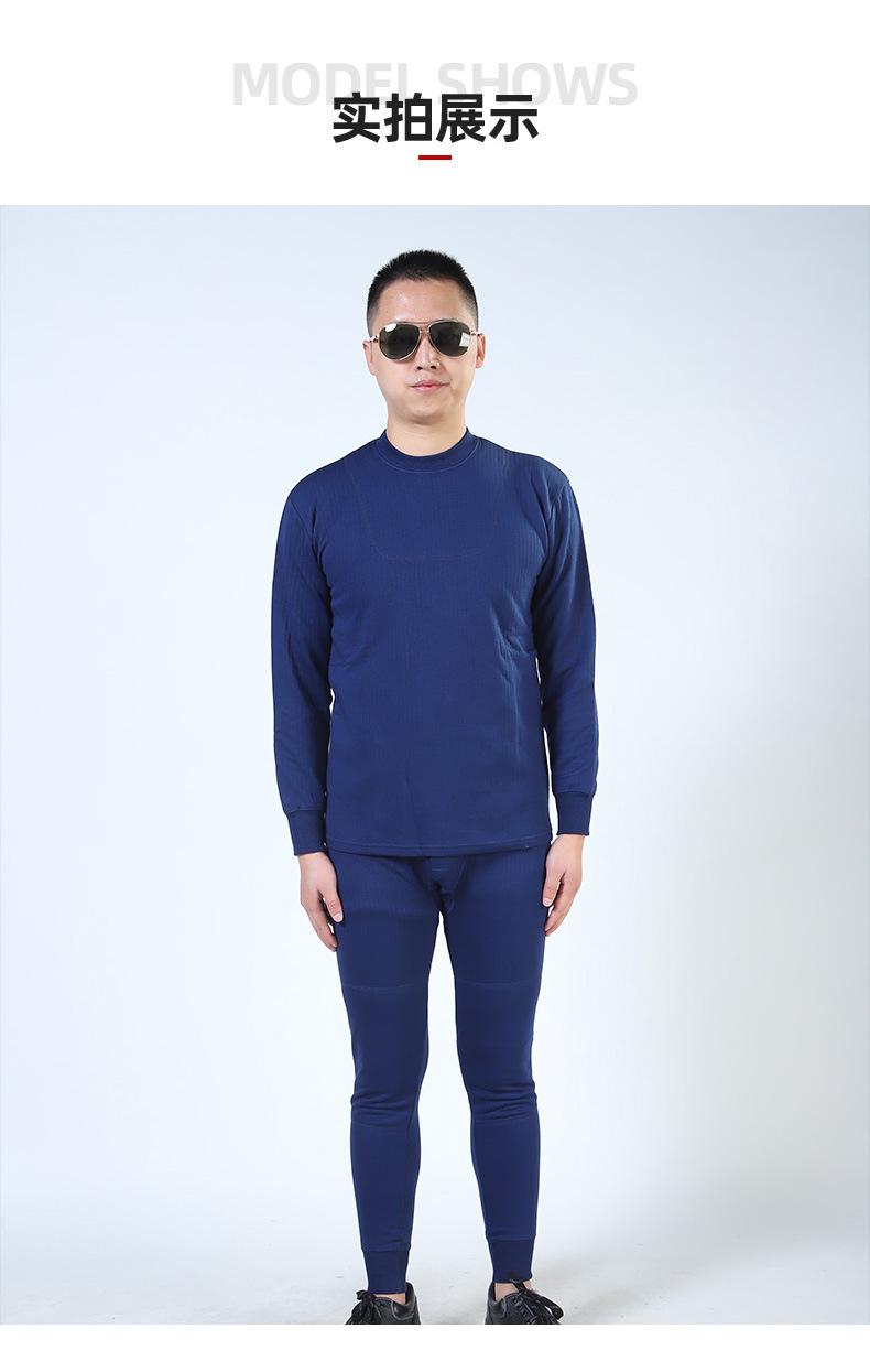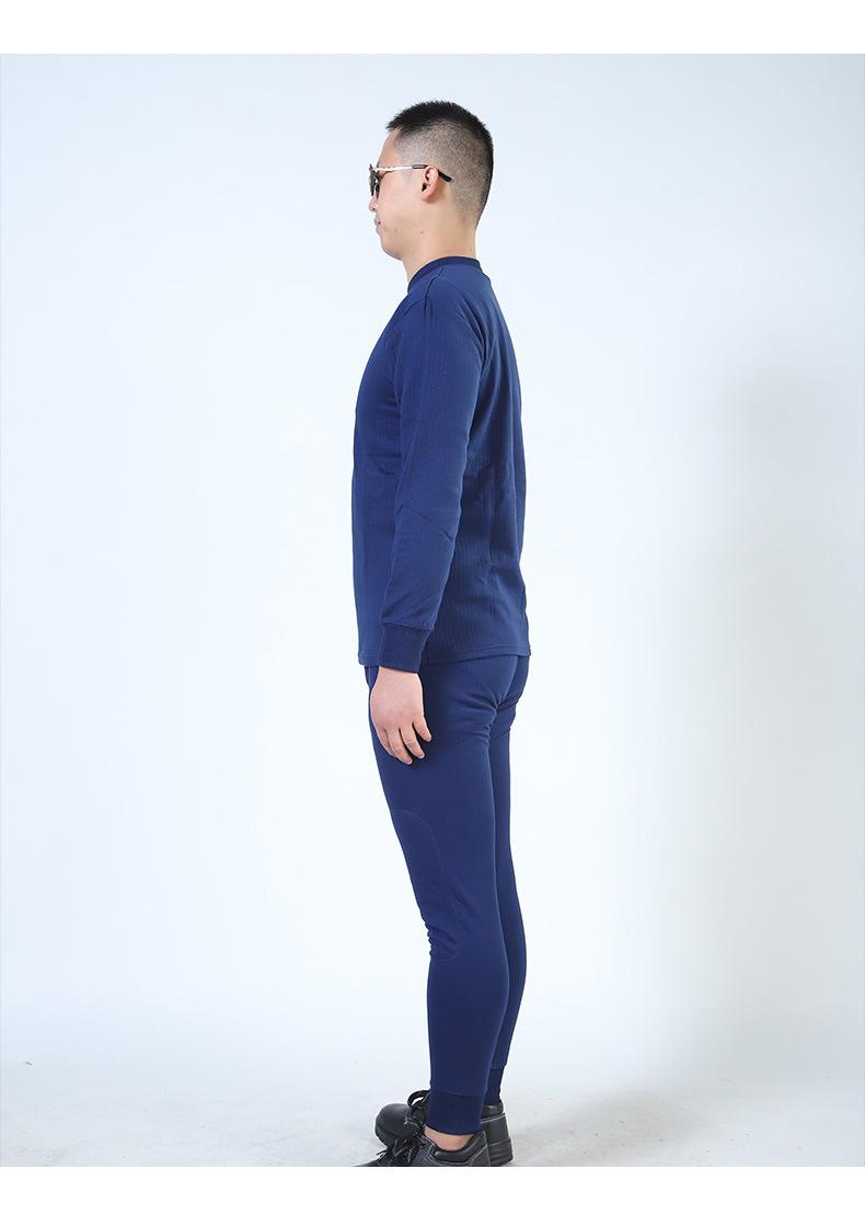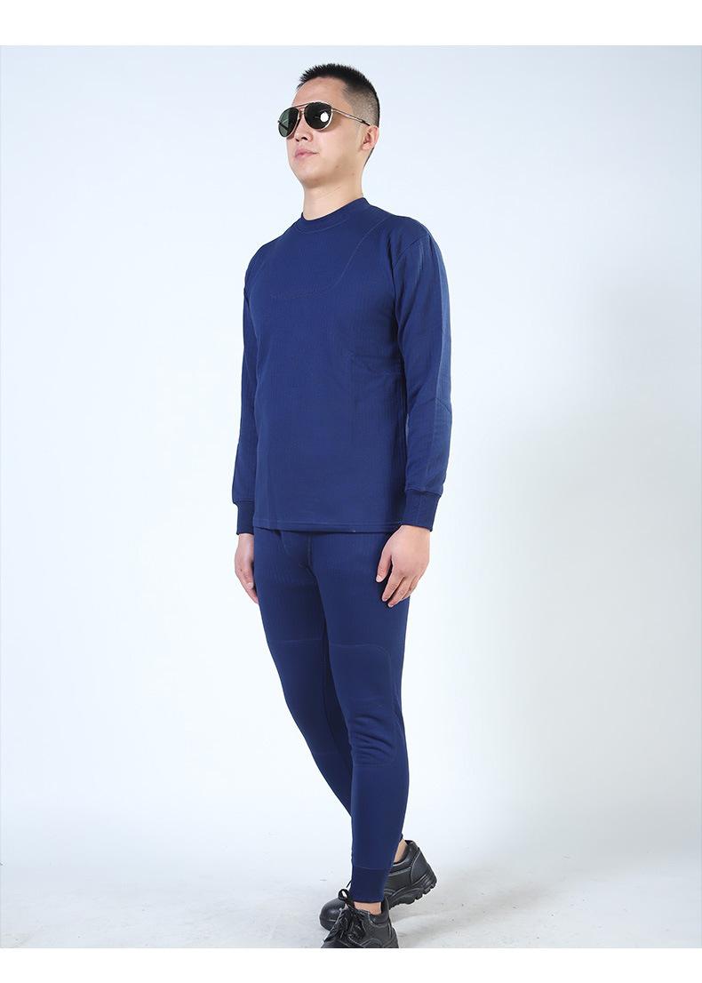 Jihua Cálido para Hombre Cuello Redondo Otoño e Invierno Azul Llama Ropa Interior Térmica Espesada Ropa de Otoño y Pantalones de Otoño Traje de Algodón Modal