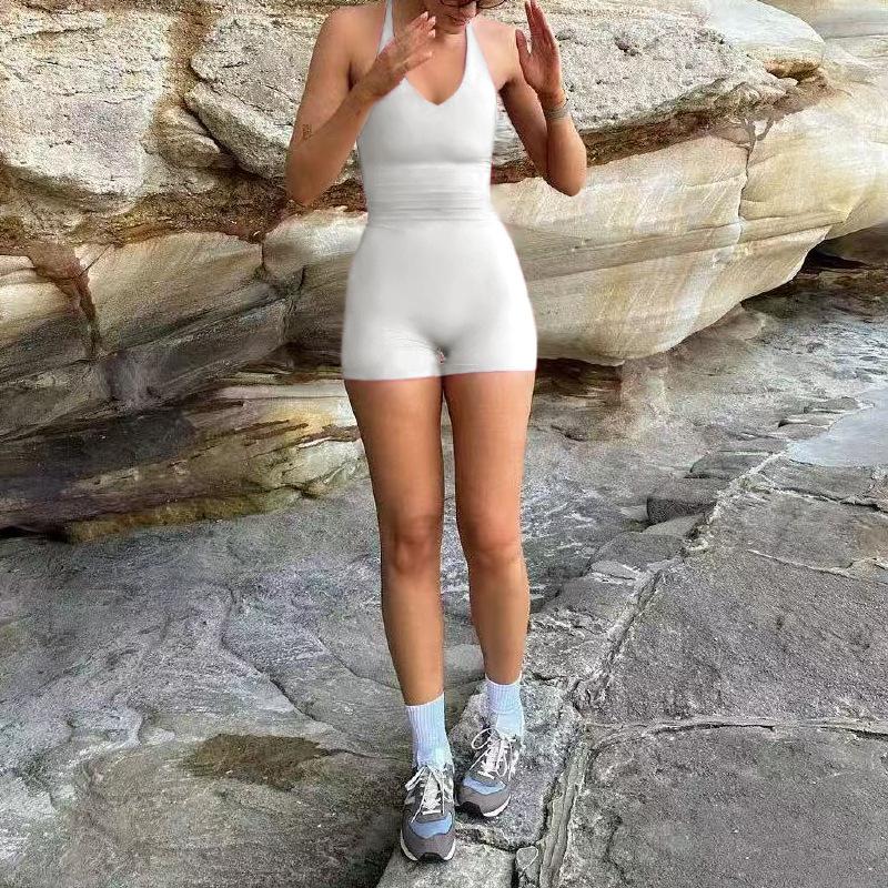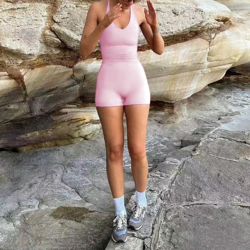Conjunto de Ropa de Yoga Halter de Gama Alta Europea y Americana para Mujer Fitness Deportes Correr Chaleco Shorts Conjunto de Trajes de Yoga