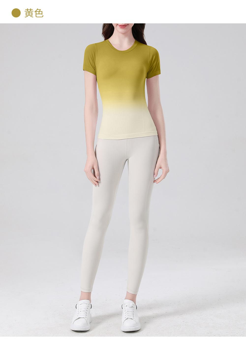 Xinhong Top de Yoga Deportivo Fitness Running Ajustado Combinable Casual Transpirable Camiseta Base Degradada de Alto Valor