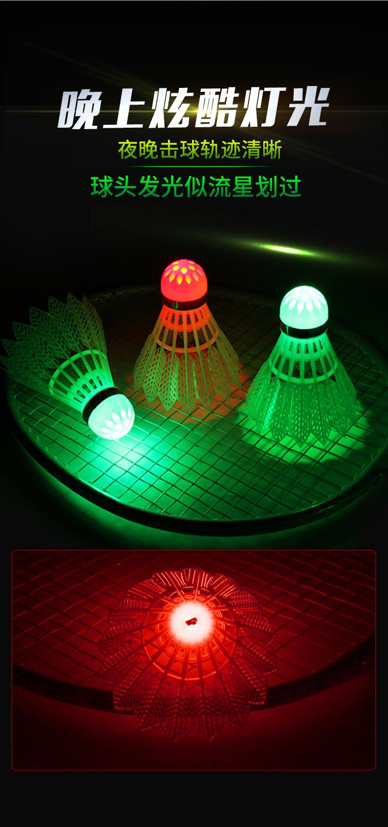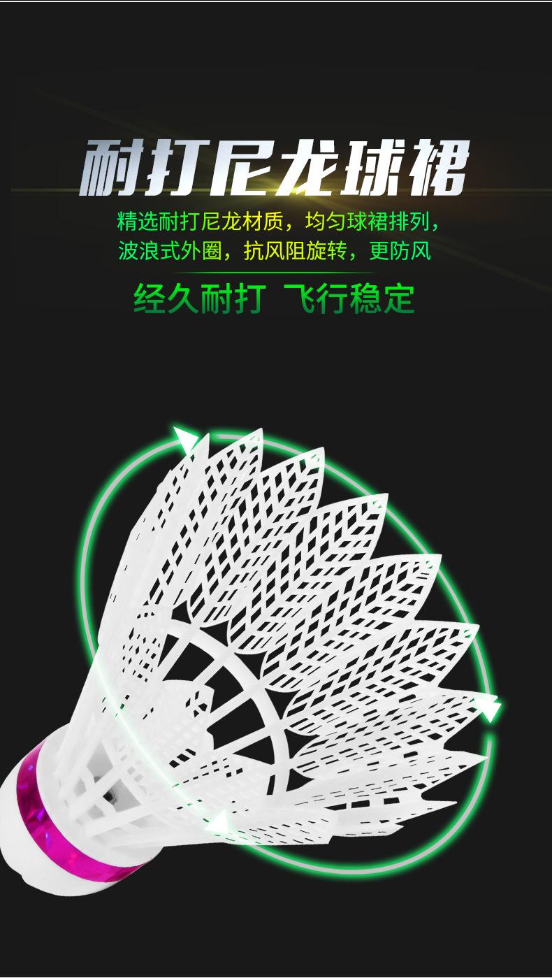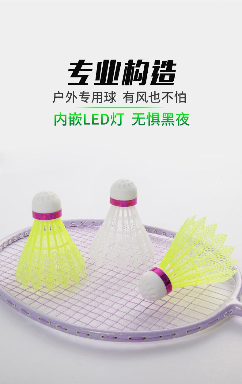 Volante de bádminton luminoso de plástico y nailon con luz resistente para jugar en interiores y exteriores a prueba de viento LED luminoso al por mayor