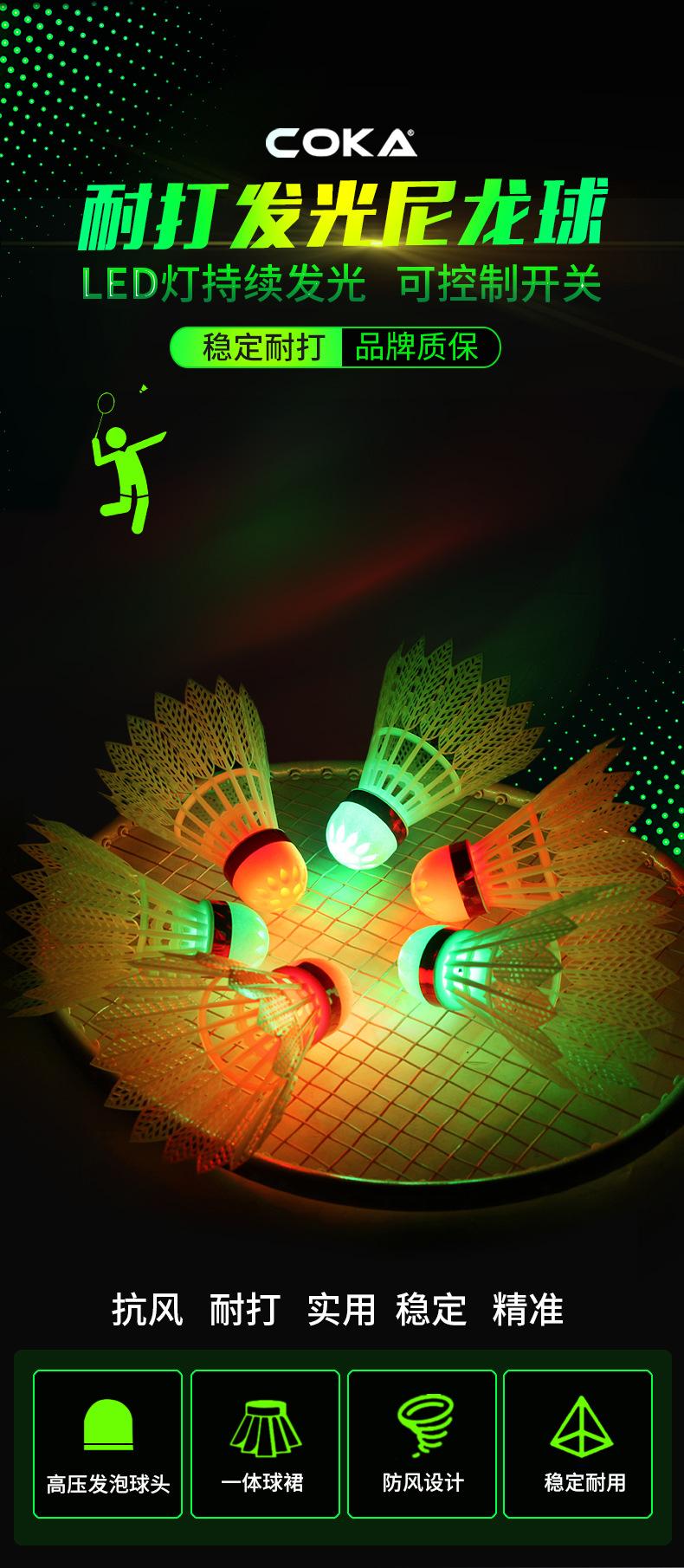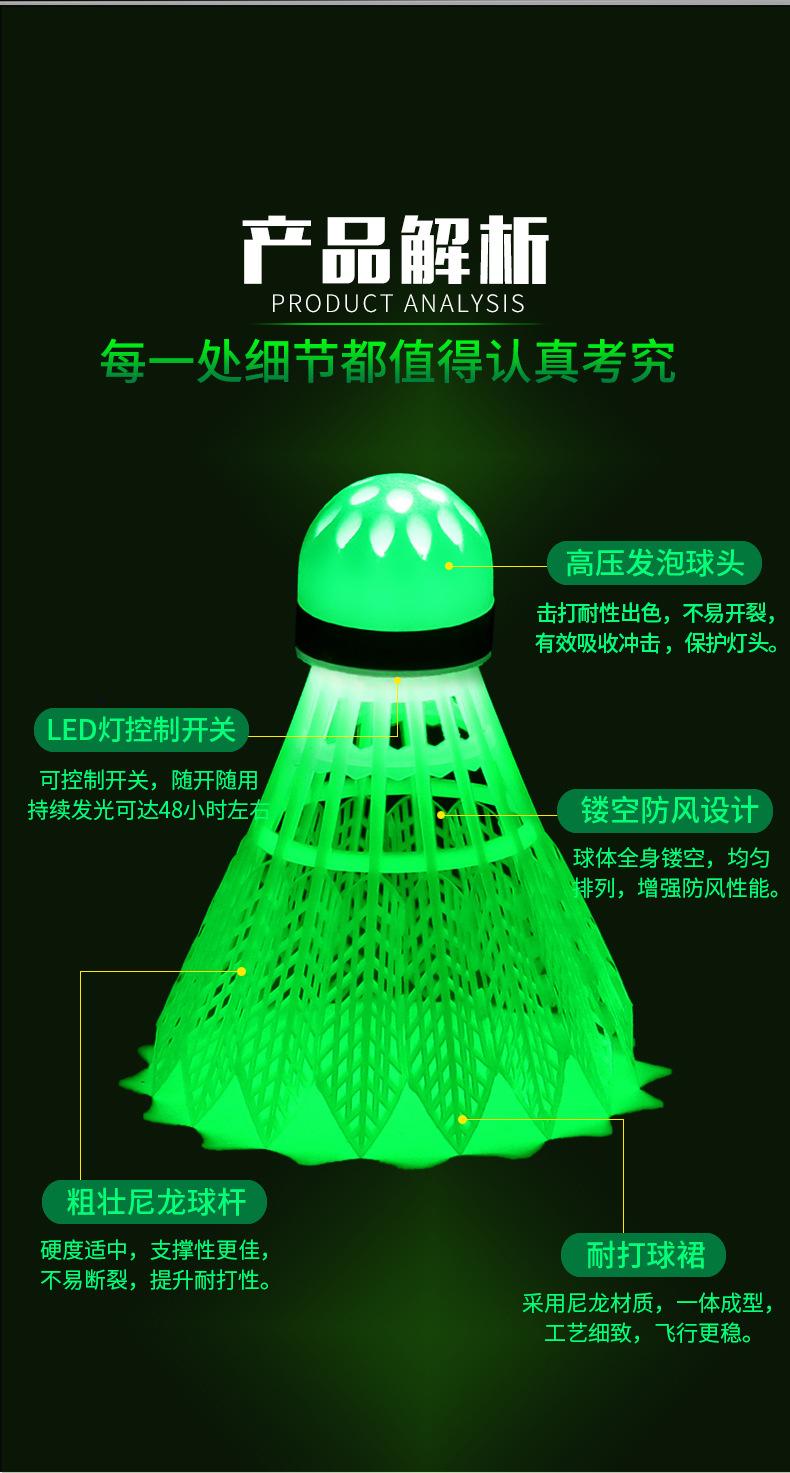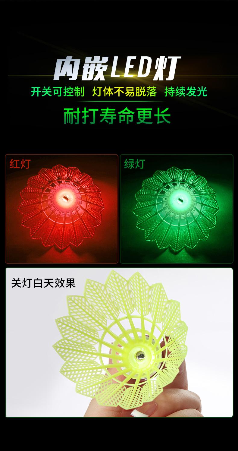 Volante de bádminton luminoso de plástico y nailon con luz resistente para jugar en interiores y exteriores a prueba de viento LED luminoso al por mayor