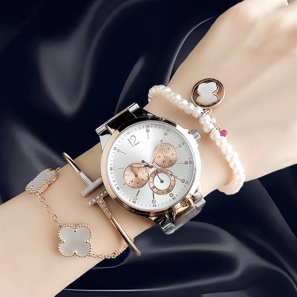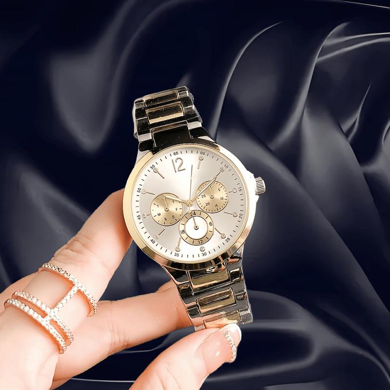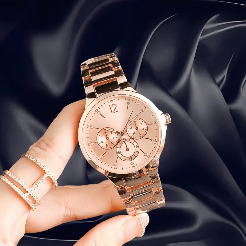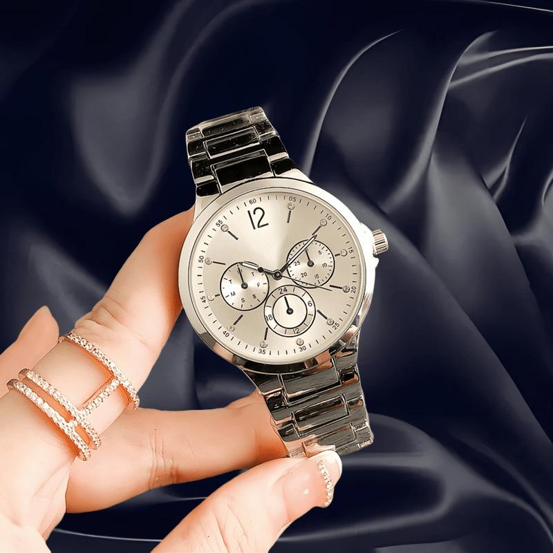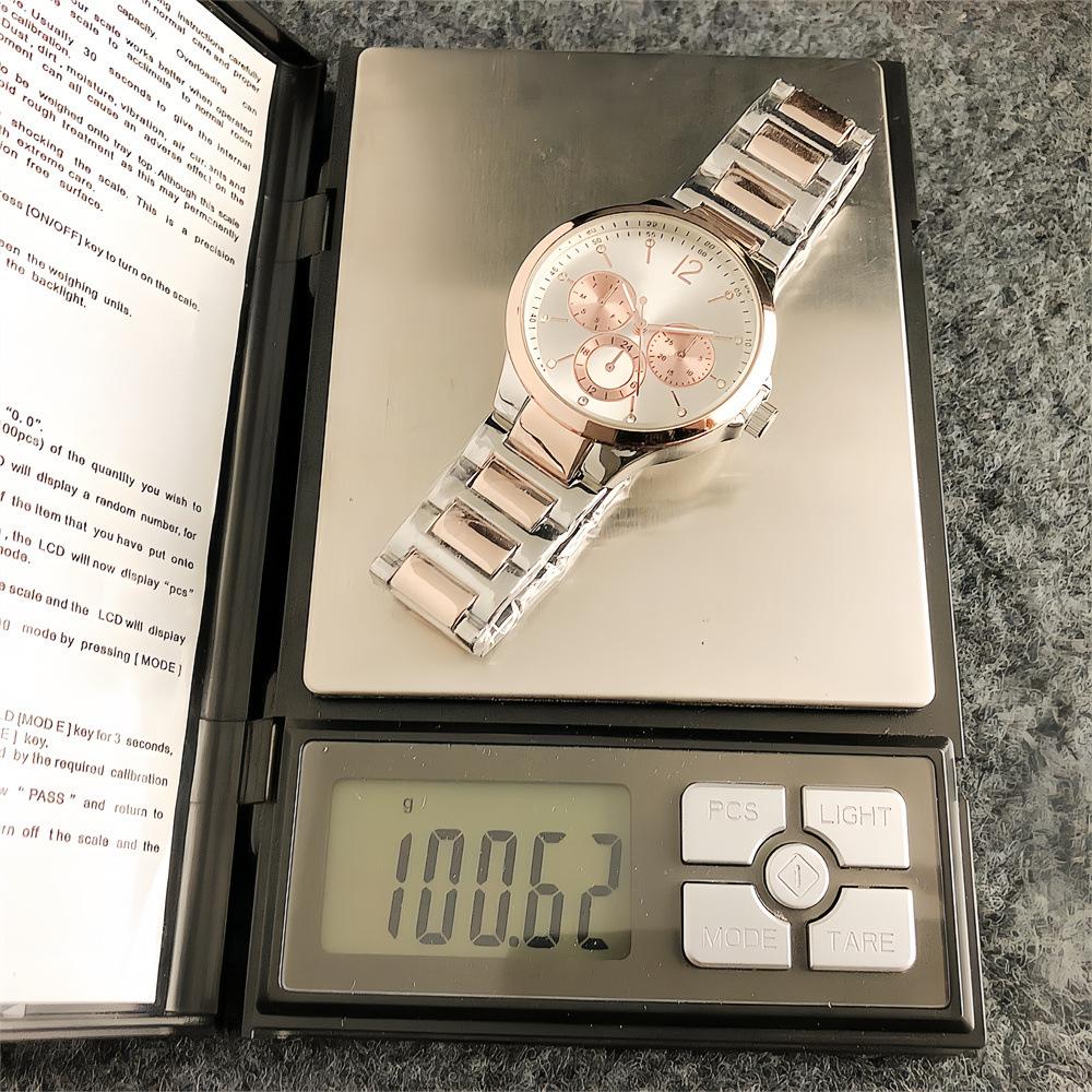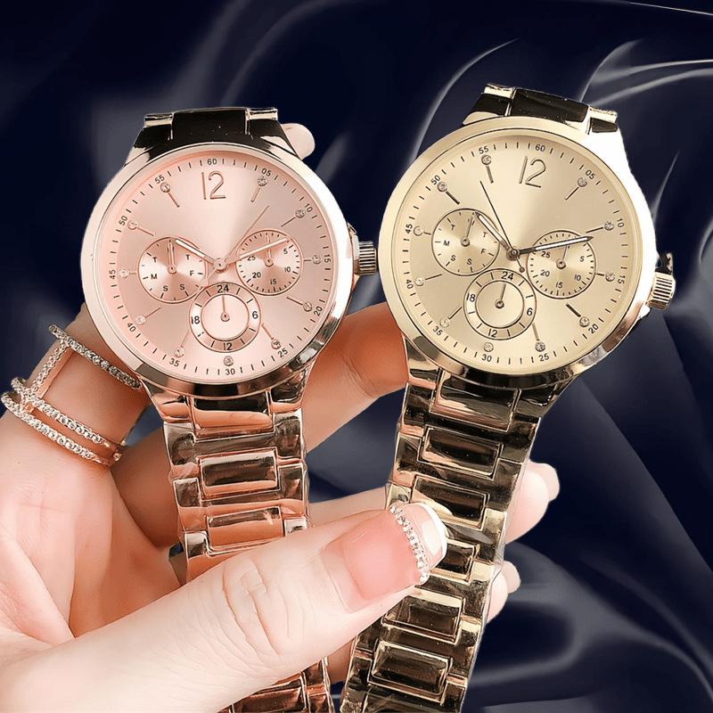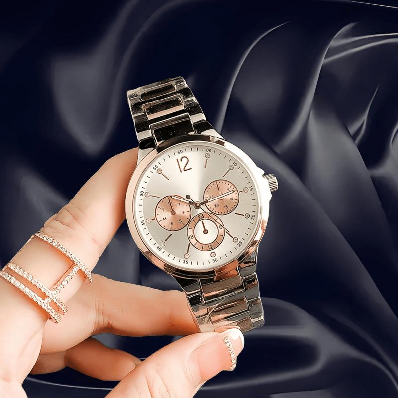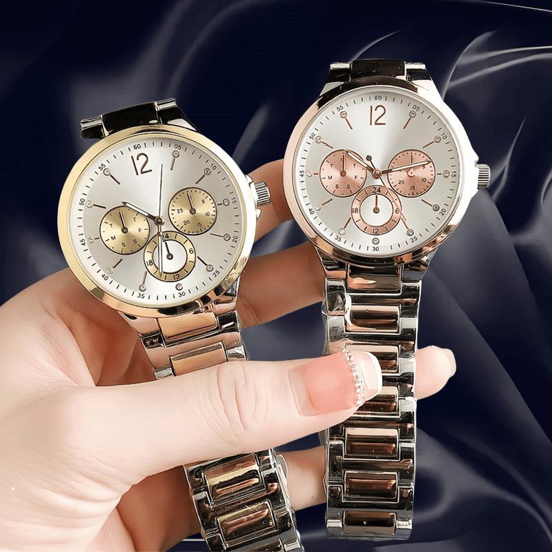 Reloj de pulsera de malla para mujer, de acero inoxidable, de cuarzo, sencillo, con tres esferas