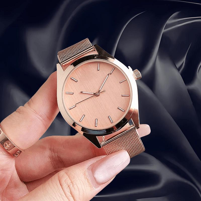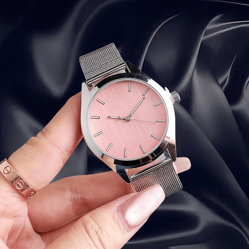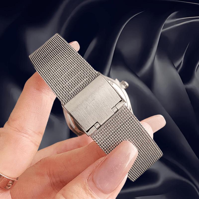 Reloj de cuarzo de malla de acero inoxidable con temperamento femenino de estilo retro con diseño de red de viento rojo Ins, venta al por mayor de fábrica