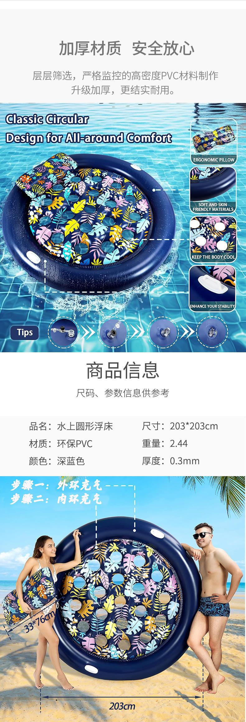 Fábrica Pvc Inflable Redondo Cama Flotante Piscina Flotante Cama Flotante Doble Agujero Hueco con Portavasos