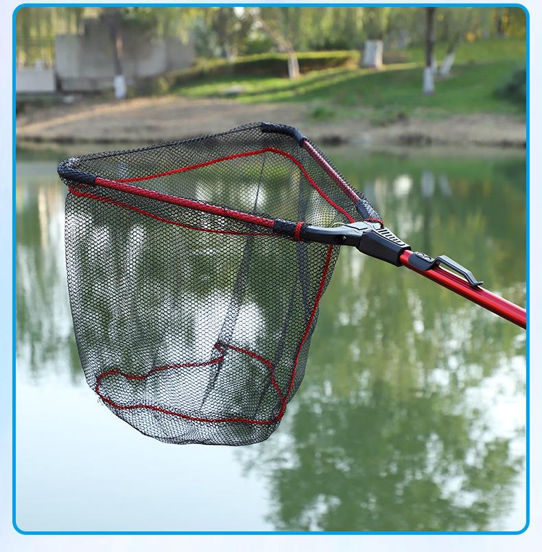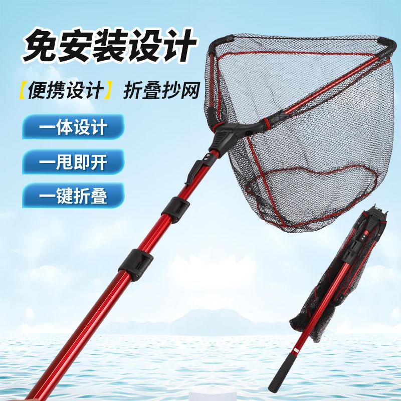 Aleación de Aluminio Red de Pesca Plegable Integrada Red de Pesca Triangular Hebilla Fija Telescópica Plegado con Un Clic Red de Pesca Engrosada