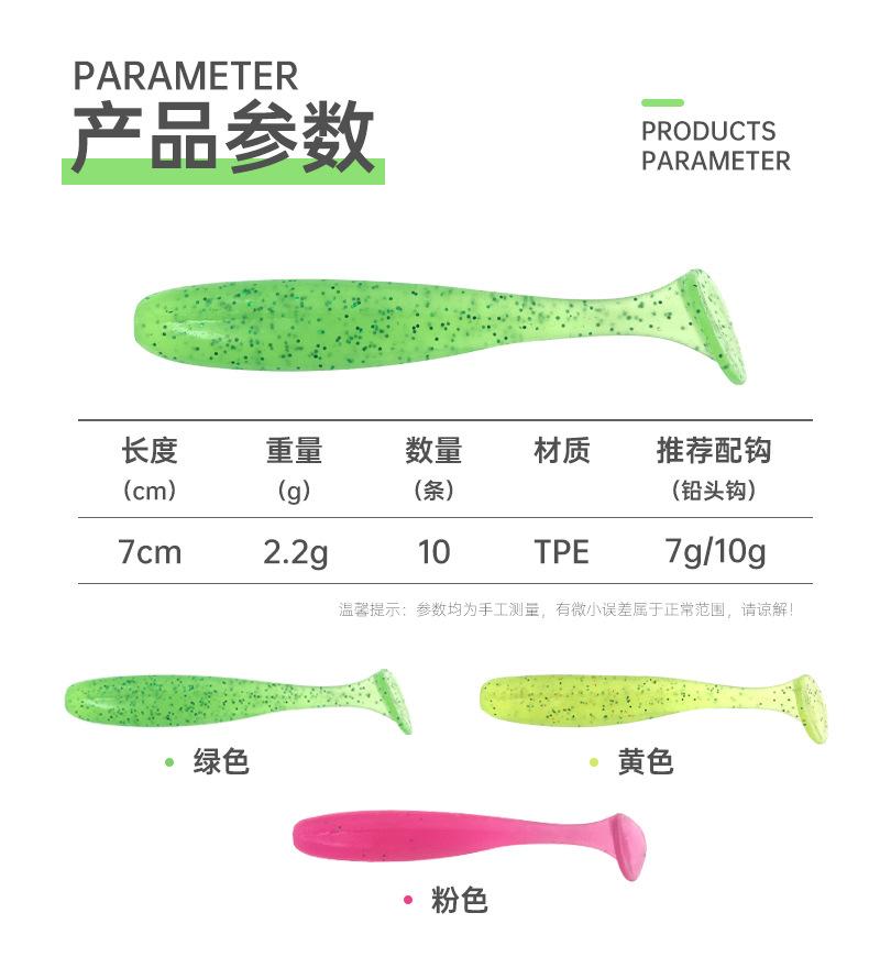 10 Piezas Tpe Transfronterizo Señuelo Blando T-Tail 7Cm/2.2G Señuelo Falso Señuelo Luya Lubina Pez Mandarín Engañado Señuelo Falso