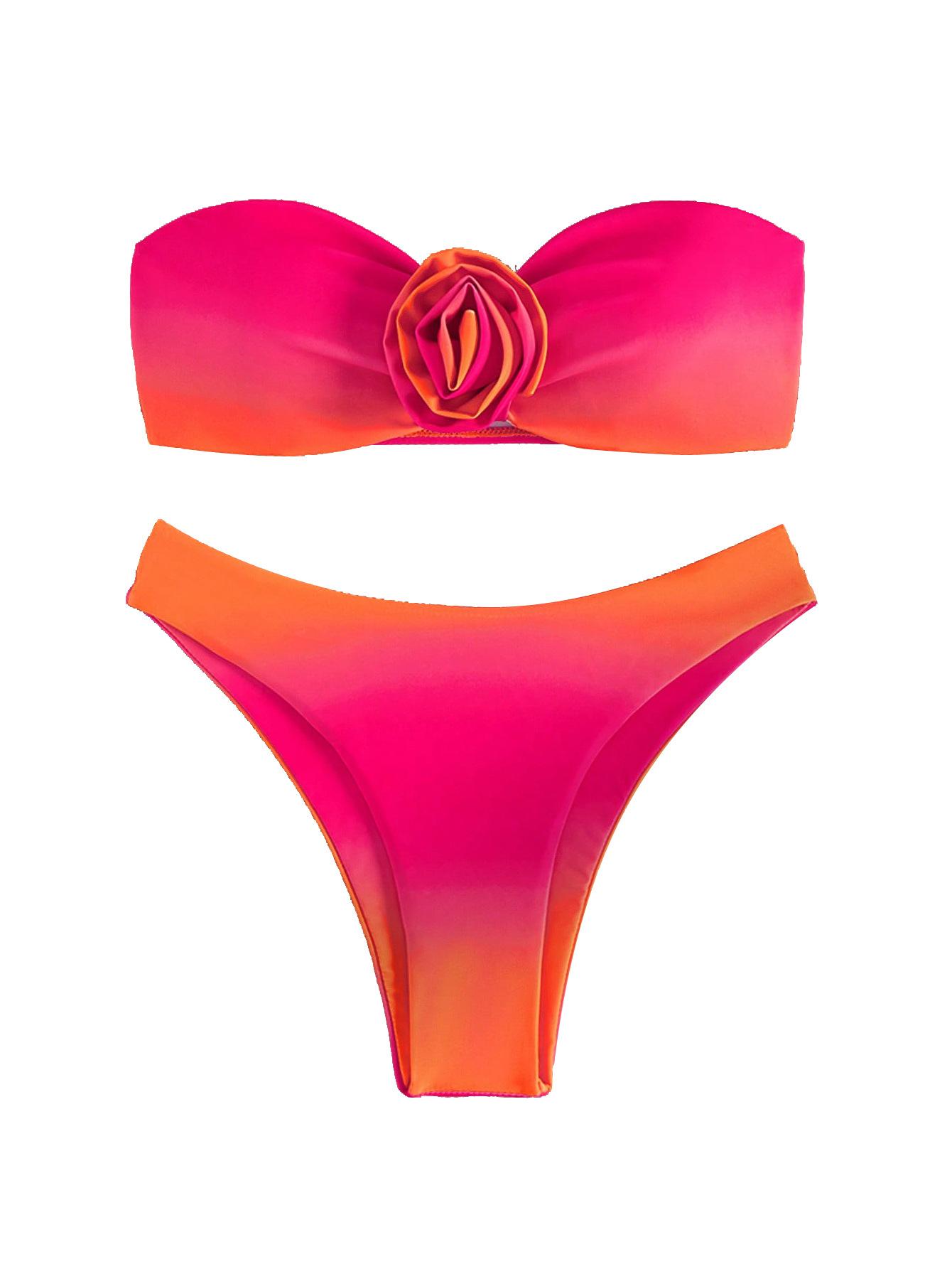 Nuevo Traje de Baño Bikini Top Tubo de Comercio Exterior Flor Degradado Sexy Bikini Transfronterizo Europeo y Americano Amazon Traje de Baño