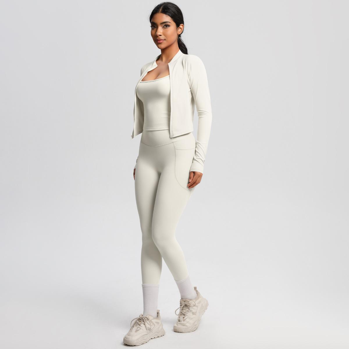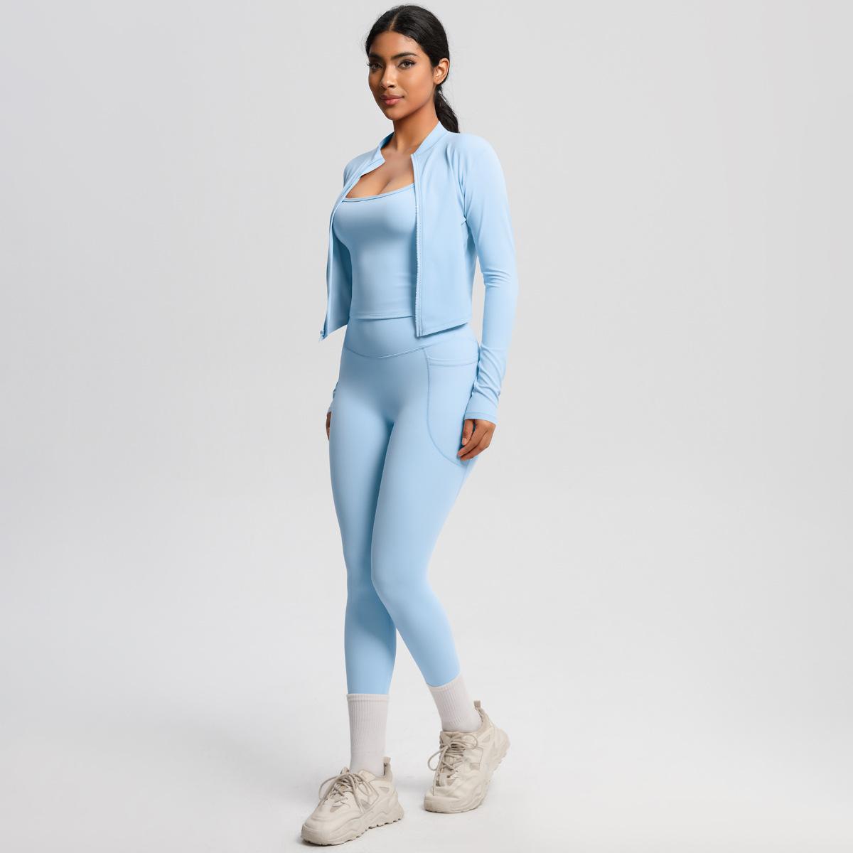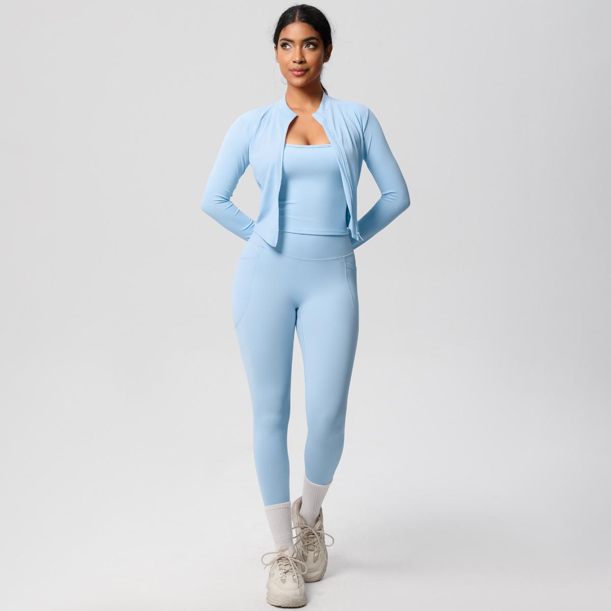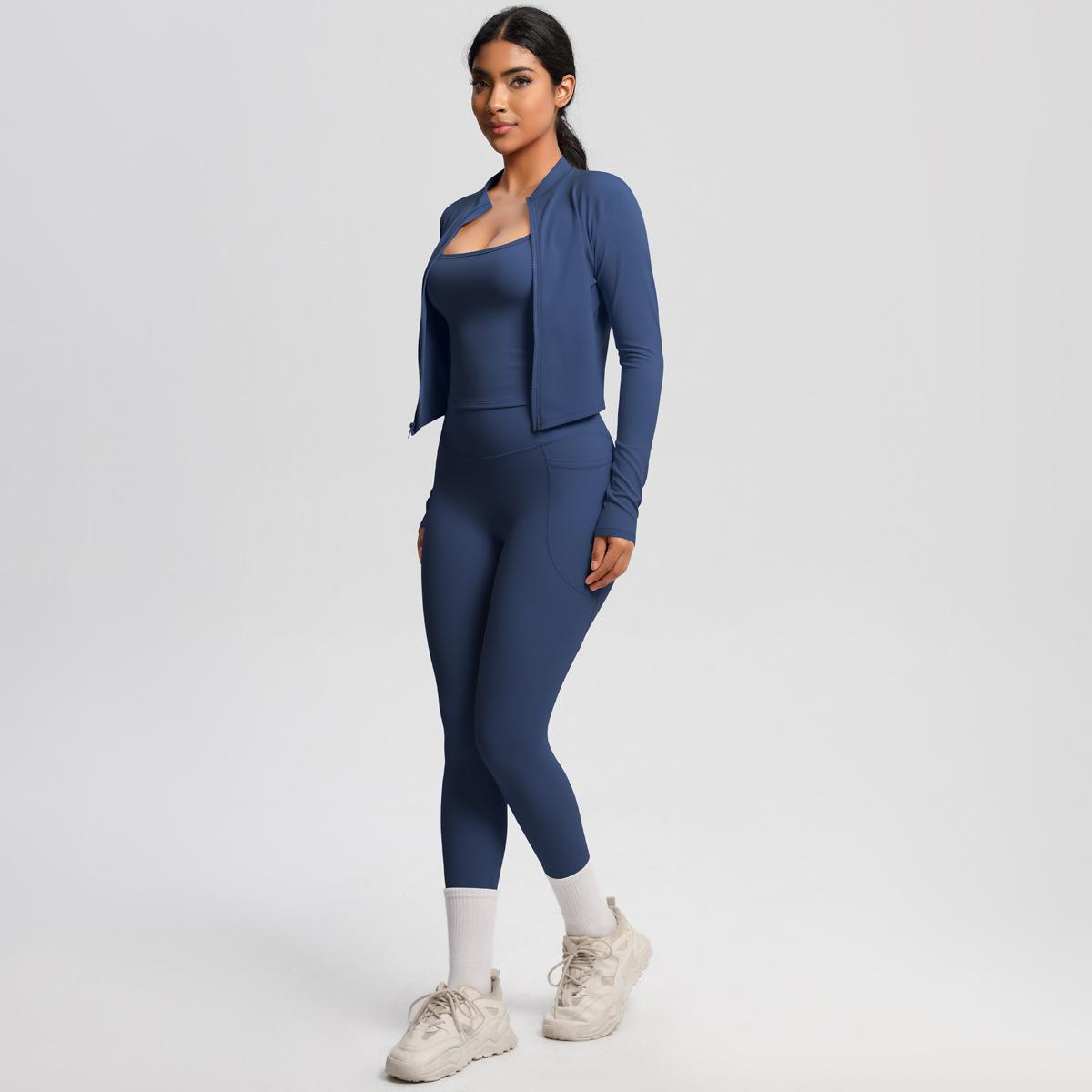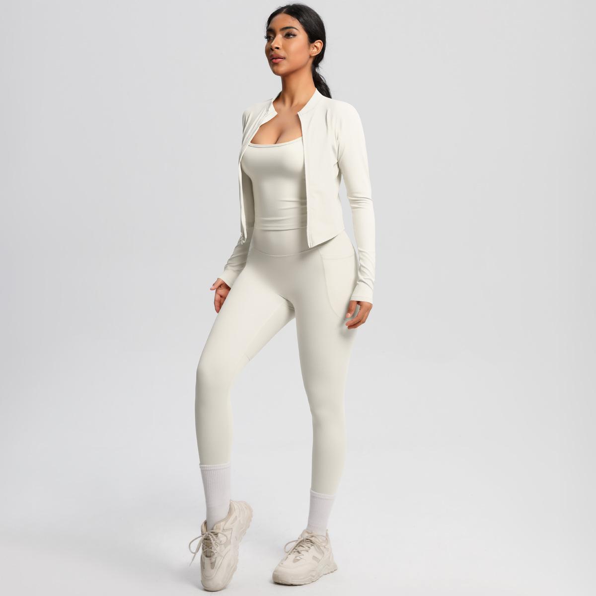 Traje de Yoga Ajustado Casual para Exterior Europeo y Americano con Bolsillo Secado Rápido Cintura Alta Adelgazante Fitness Sensación Nube Set Deportivo de Tres Piezas