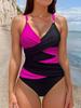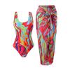 | Traje de baño de una pieza sexy europeo y americano de 2025, con estampado a juego de colores, falda de poliéster de dos piezas, muy vendido, estilo atractivo |