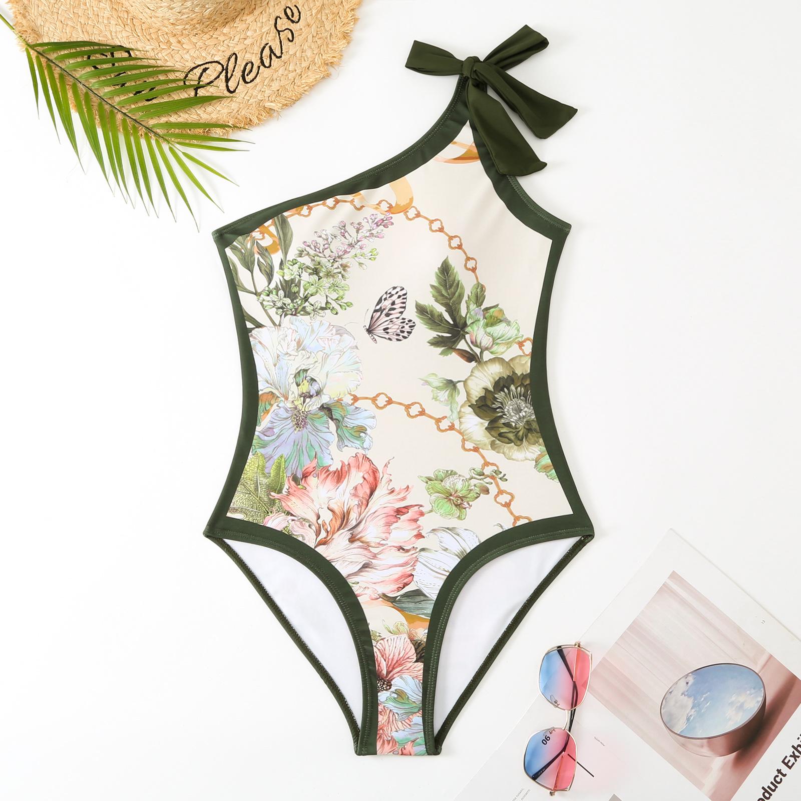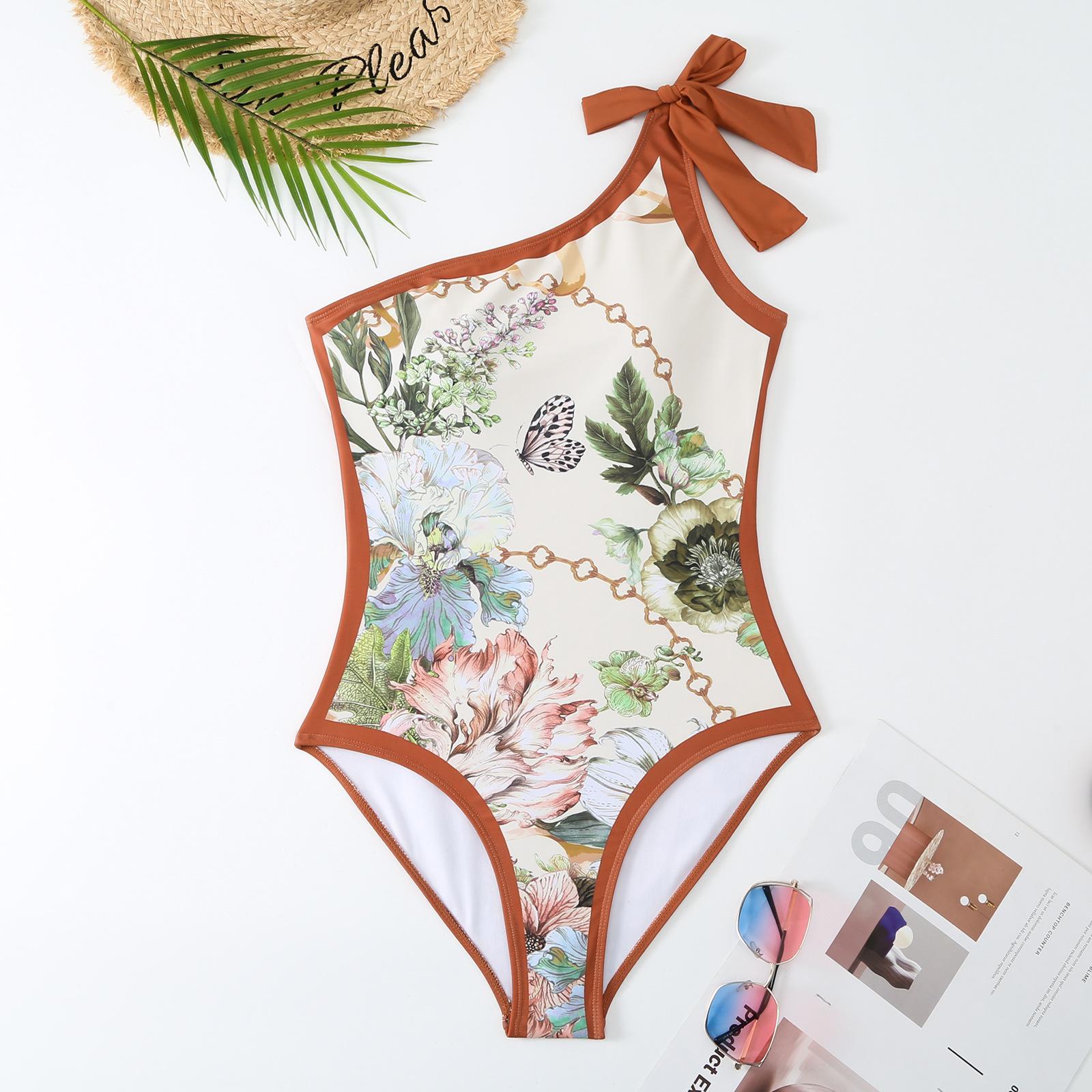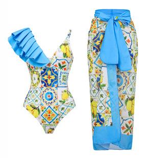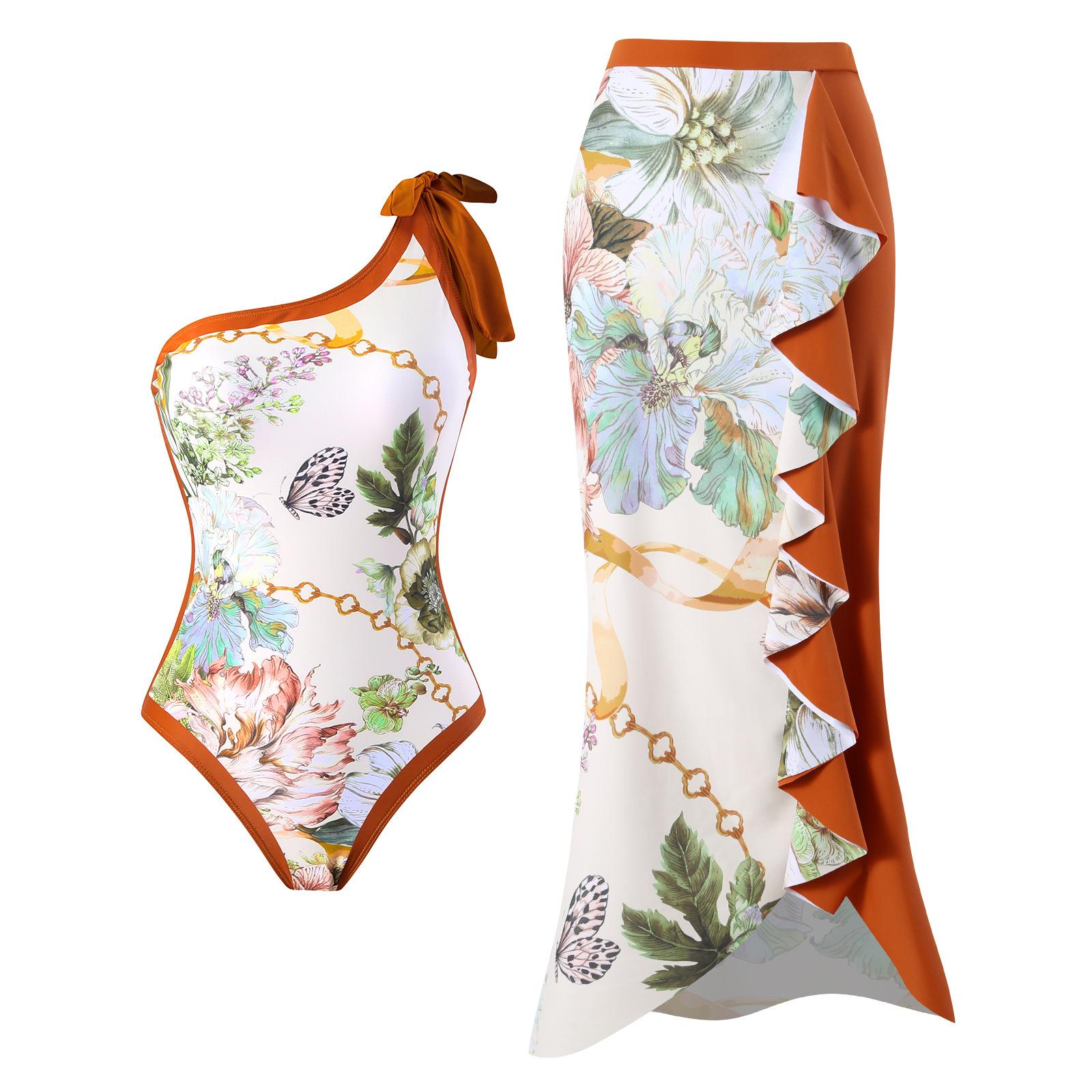 | Traje de baño de una pieza con estampado europeo y americano nuevo de 2025, traje de baño de moda para mujer, traje de baño con falda de gasa, traje de baño de venta caliente, estilo popular |