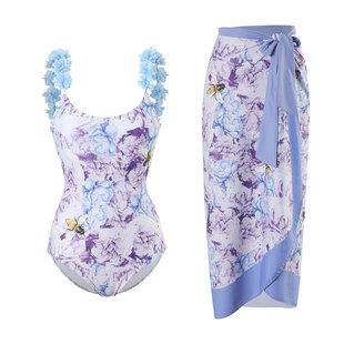 | Gran oferta 2025, nuevo estilo, traje de baño de una pieza con flores tridimensionales 3D para mujer, traje de baño con falda sexy retro francesa |