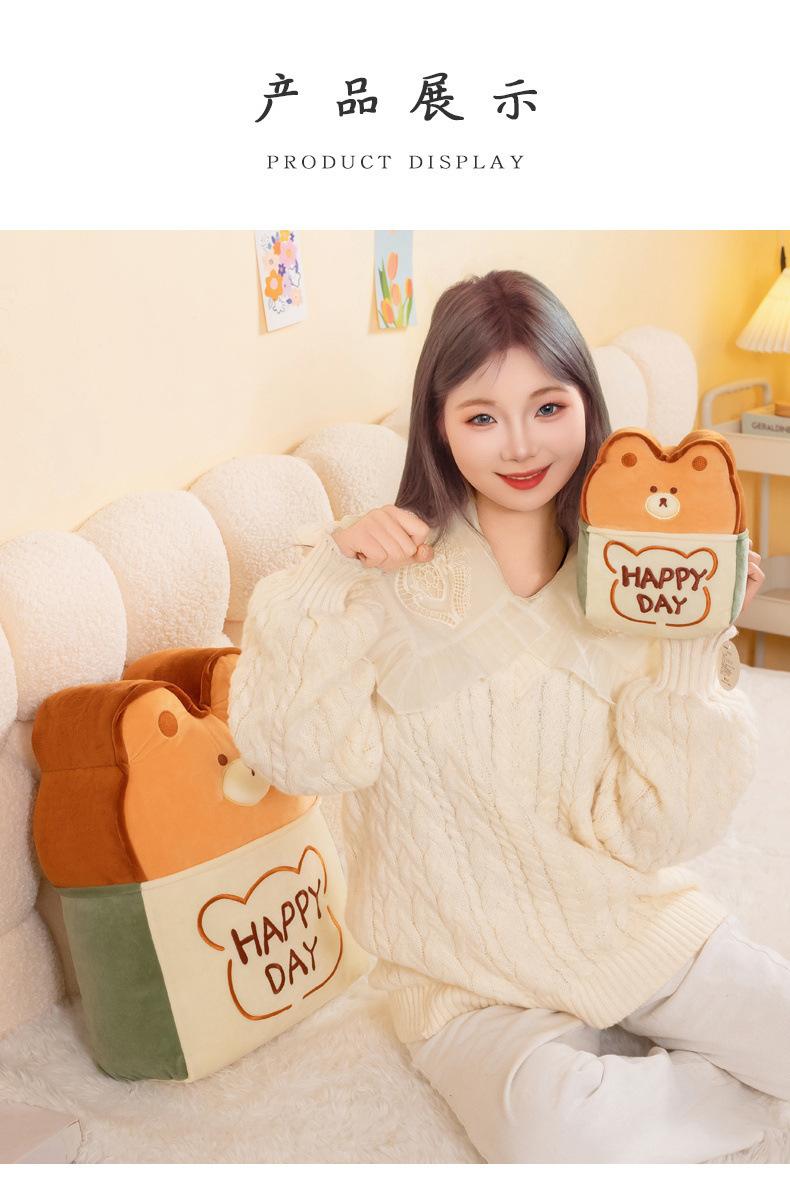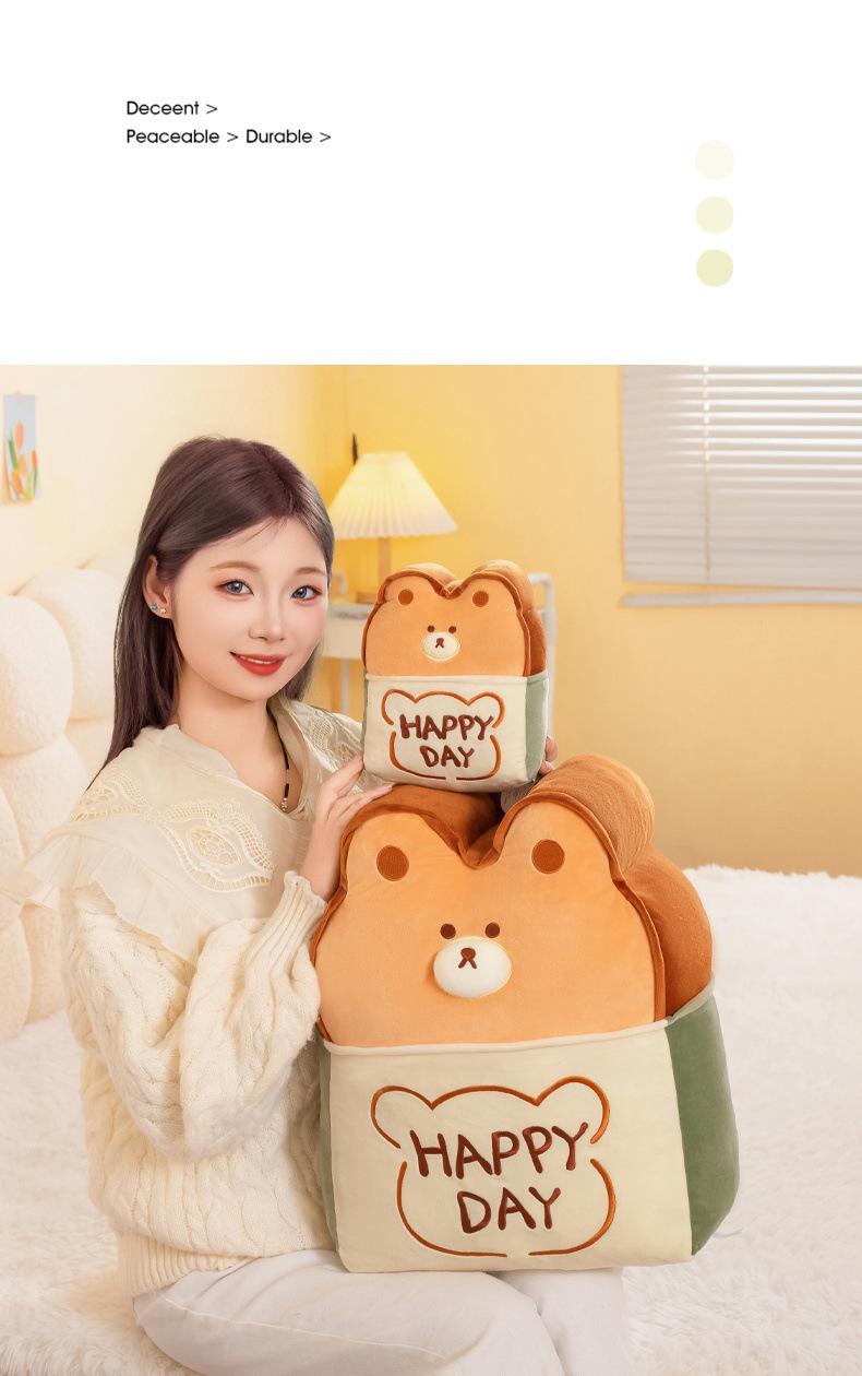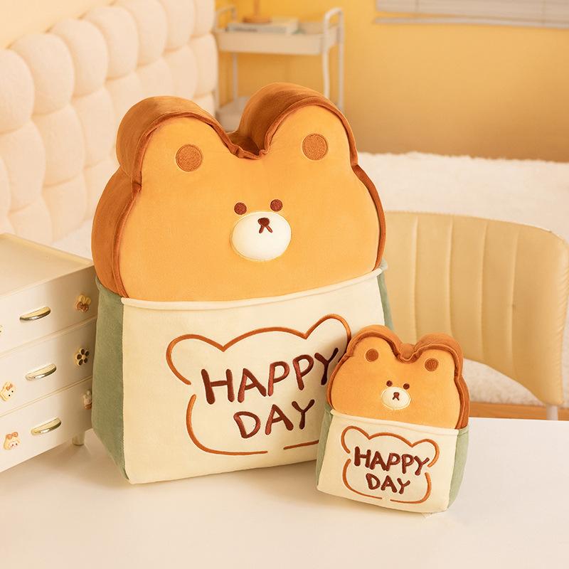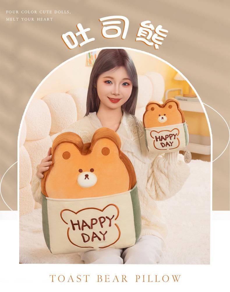 Peluche de Oso Tostada de Dibujos Animados Muñeco de Oso Almohada Creativa para el Hogar Adornos Cojín Muñeca Femenina Regalo