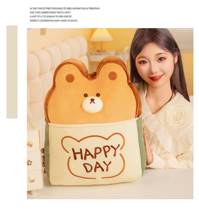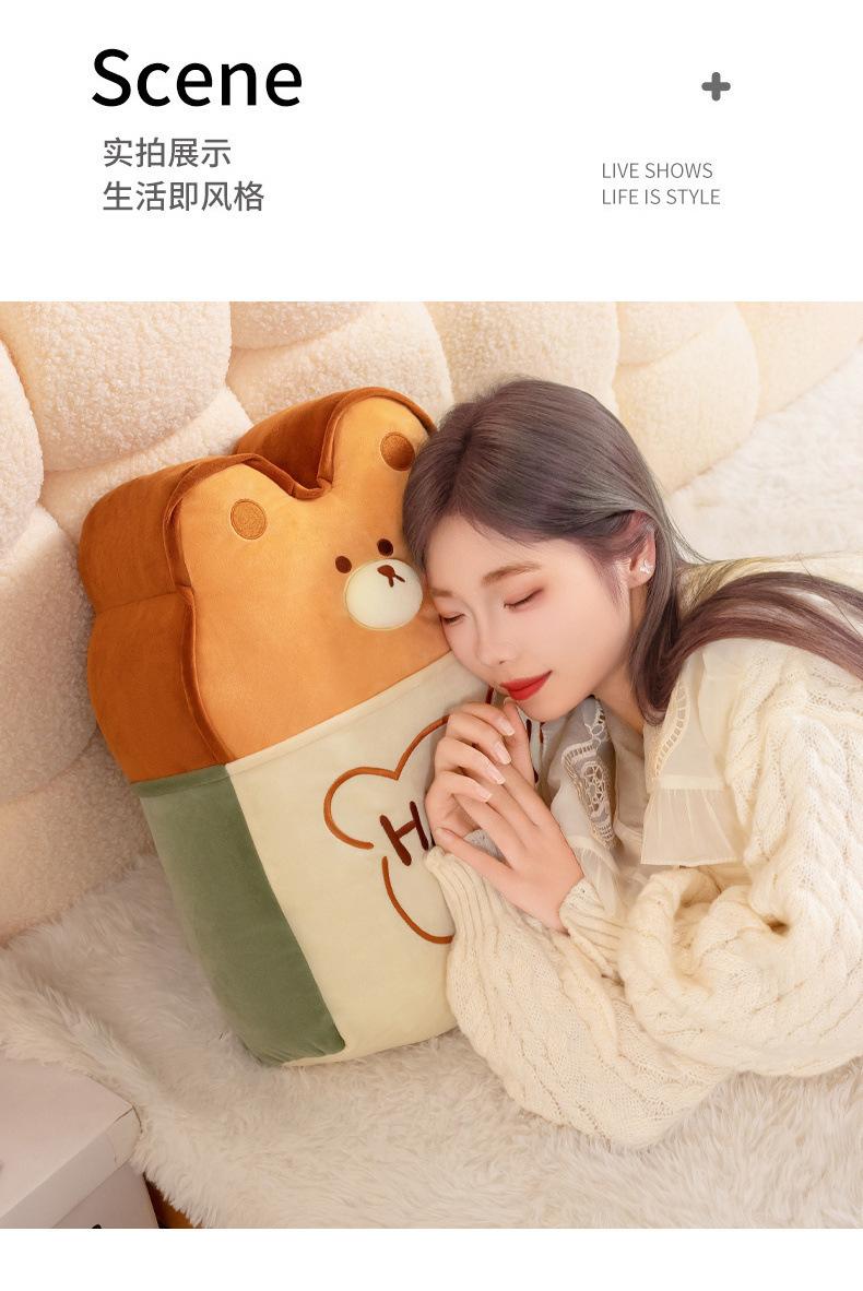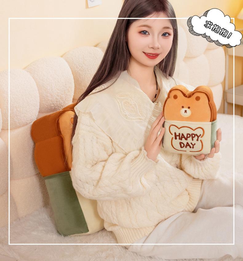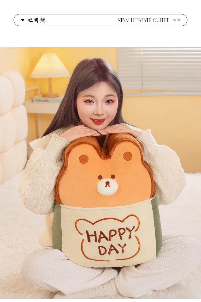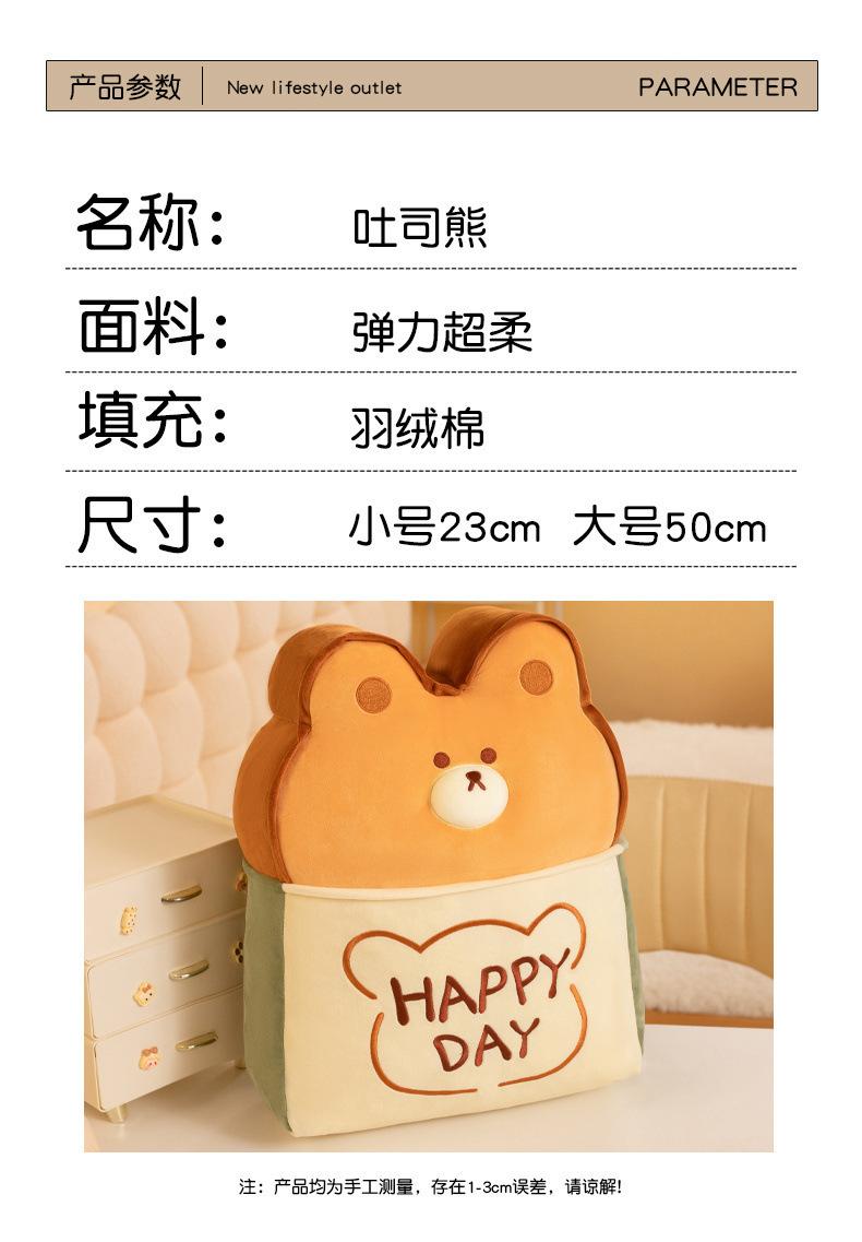 Peluche de Oso Tostada de Dibujos Animados Muñeco de Oso Almohada Creativa para el Hogar Adornos Cojín Muñeca Femenina Regalo
