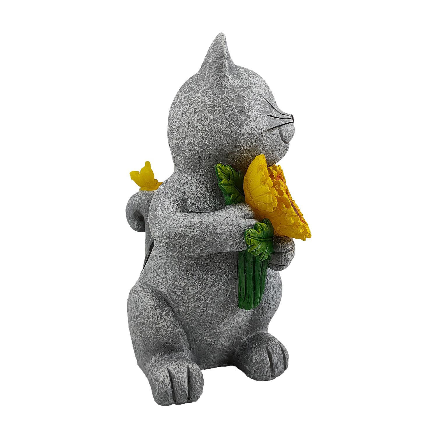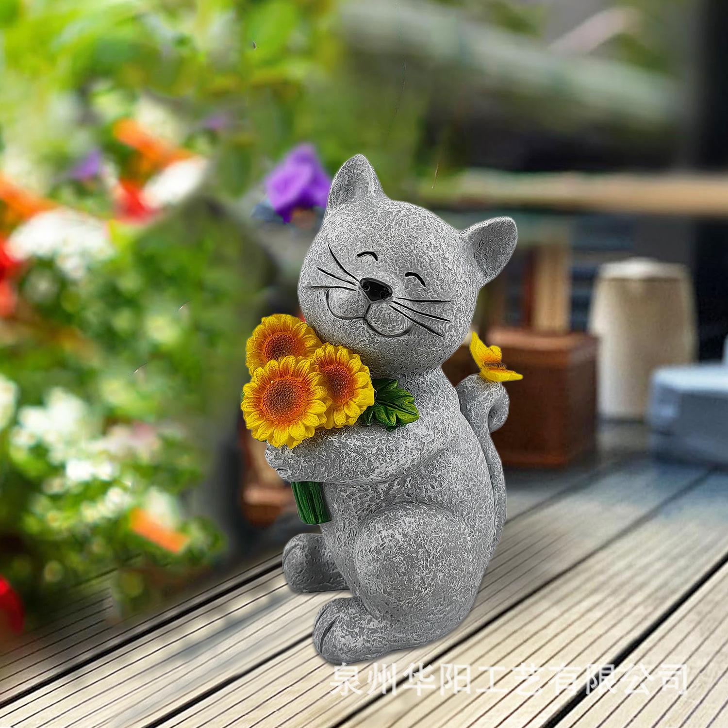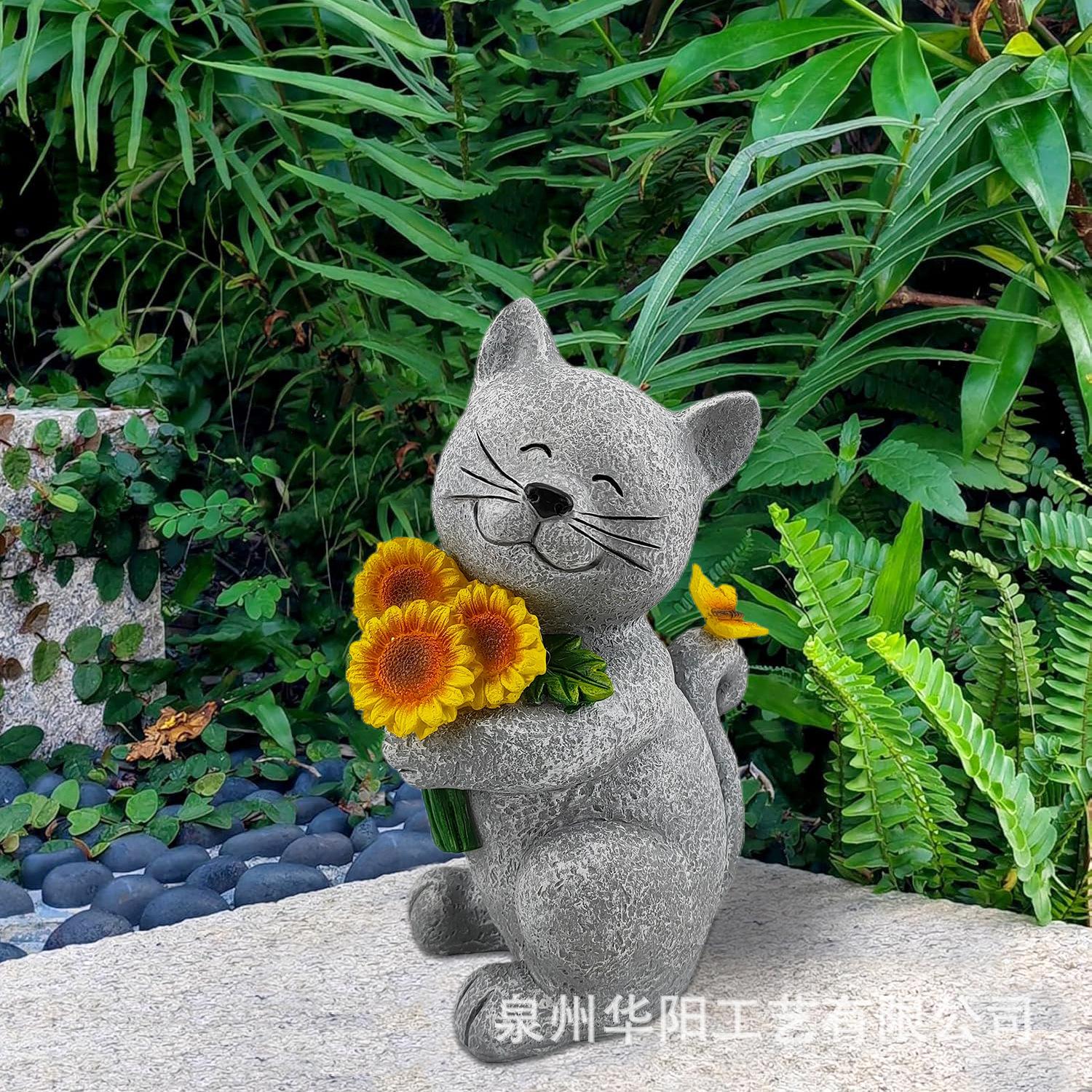 Compra Nuevo Estatua de Jardín Solar Transfronteriza Gato Sosteniendo Flor de Girasol Iluminación Decoración de Patio Césped Regalo de Inauguración de Casa al por mayor en Joom.pro