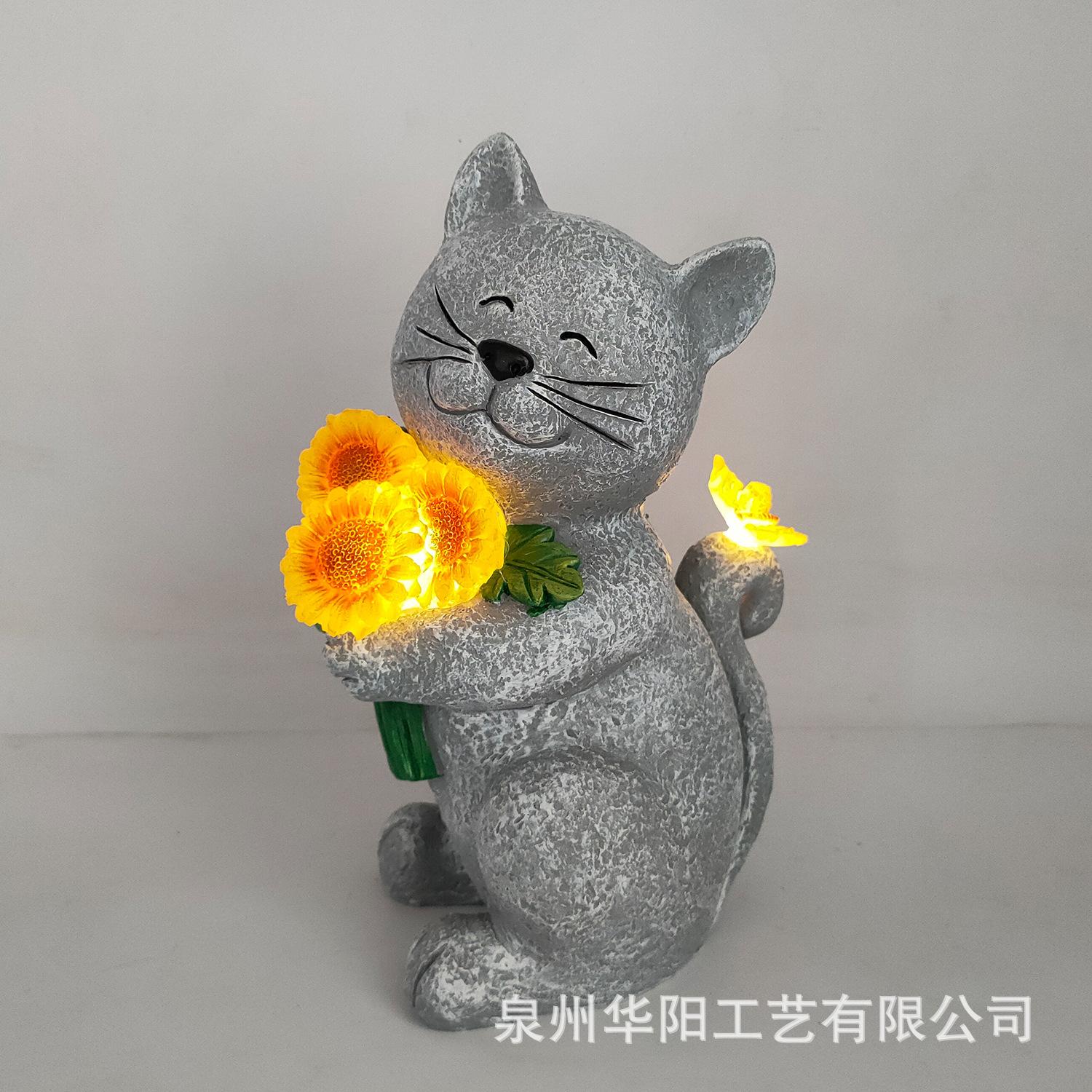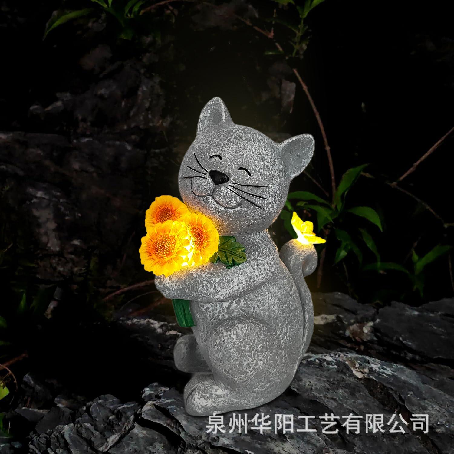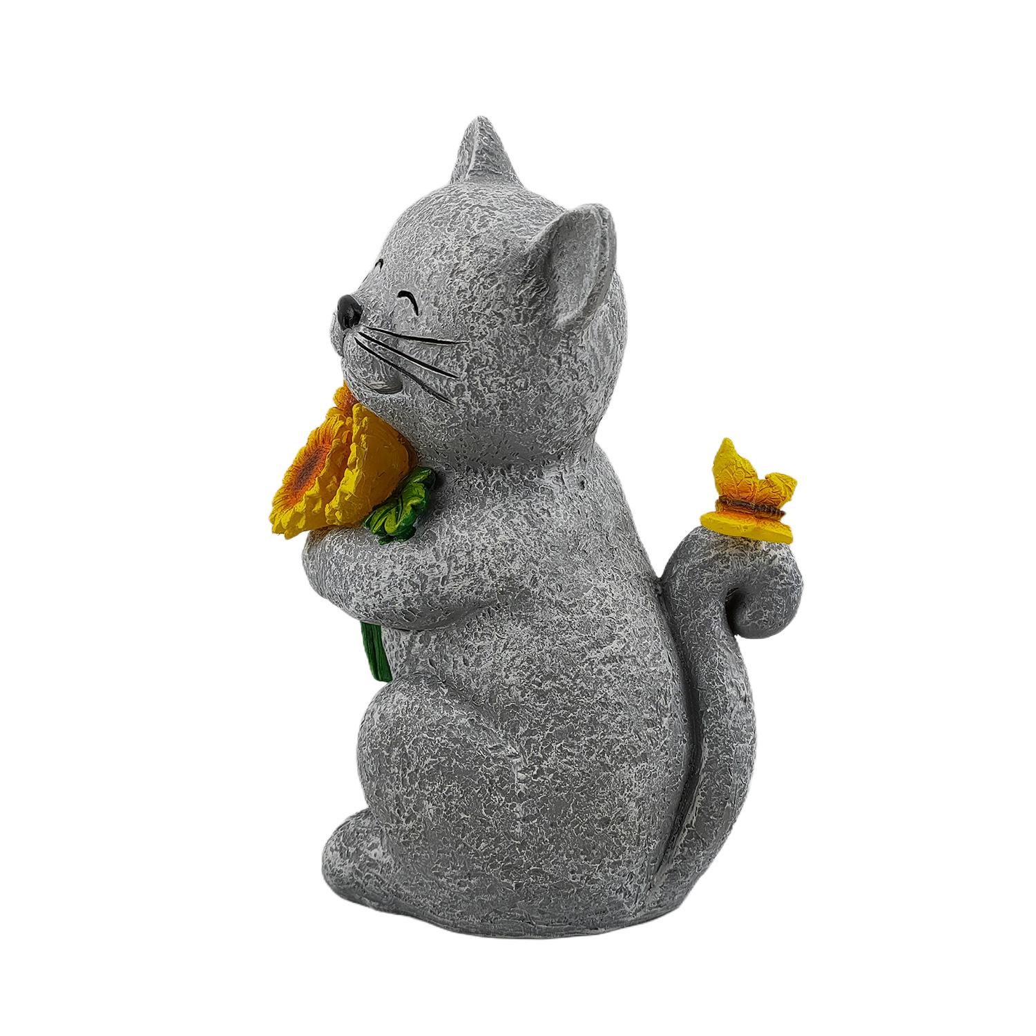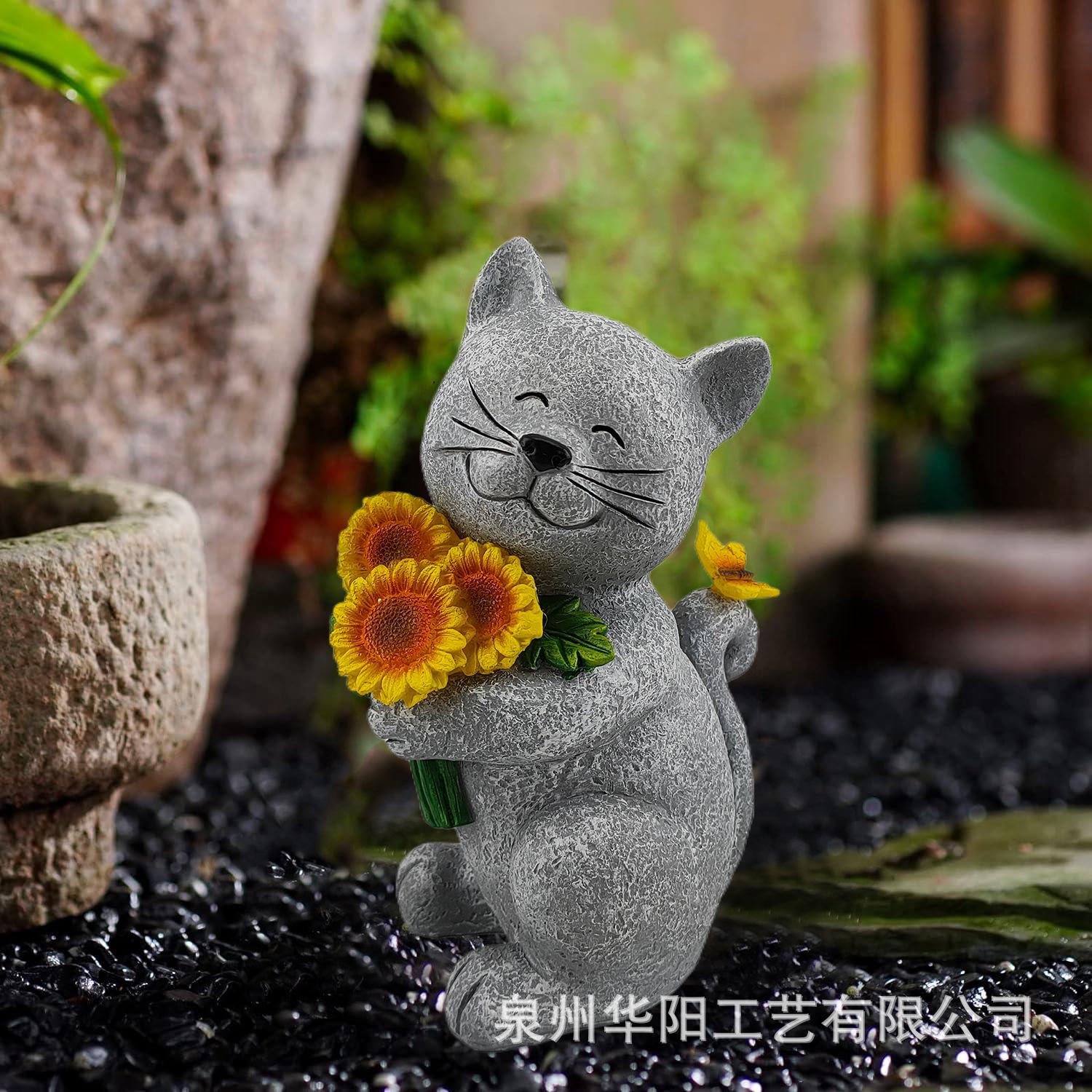 Compra Nuevo Estatua de Jardín Solar Transfronteriza Gato Sosteniendo Flor de Girasol Iluminación Decoración de Patio Césped Regalo de Inauguración de Casa al por mayor en Joom.pro