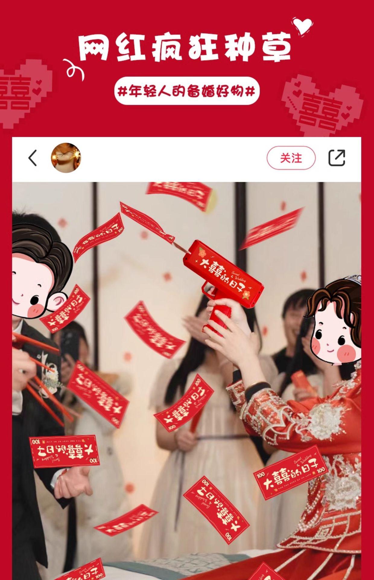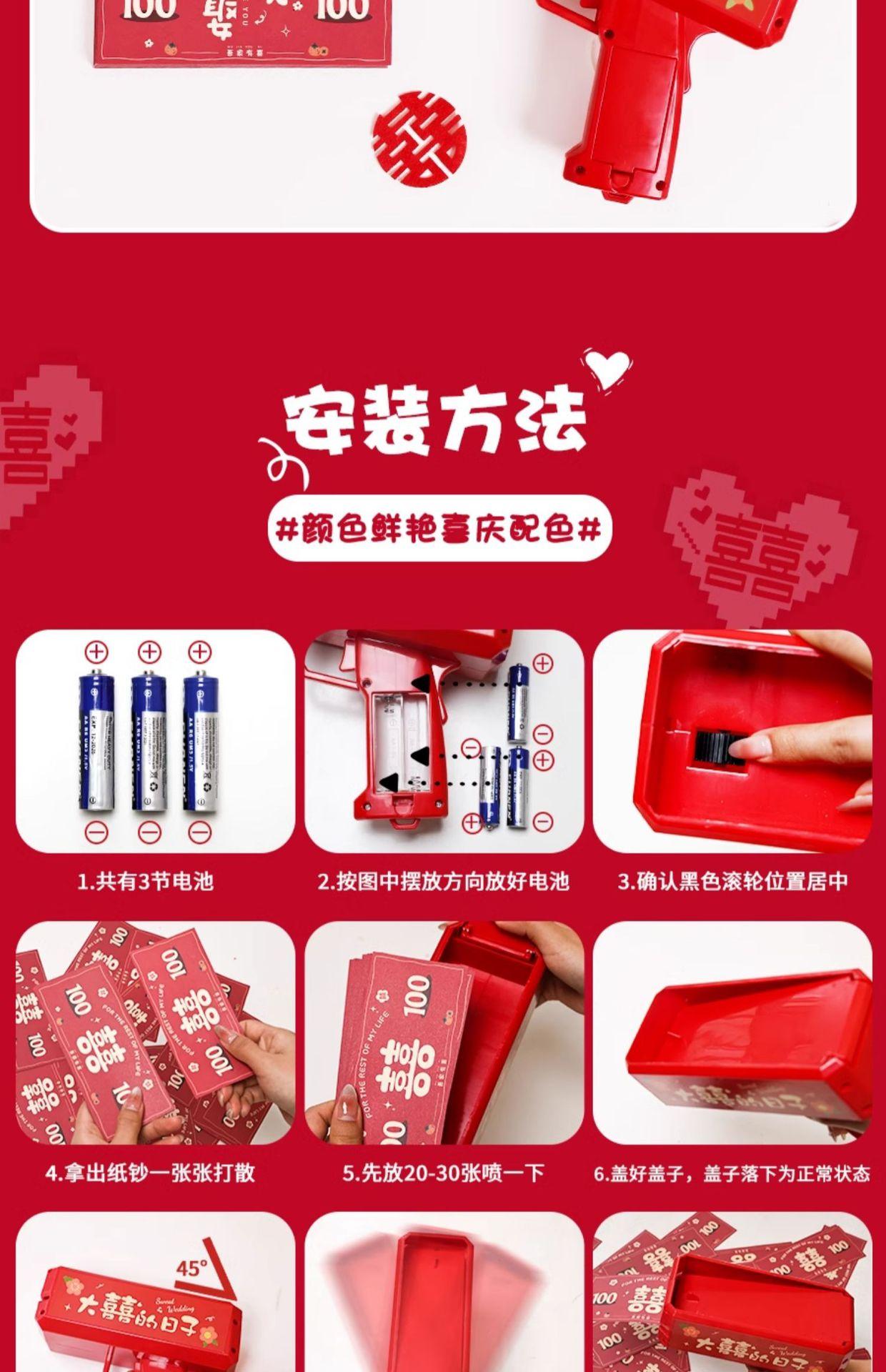 Pistola rociadora de dinero, palillos, billetes, billetes, billetes, juegos de boda, ambiente, bata de boda, accesorios para fotos