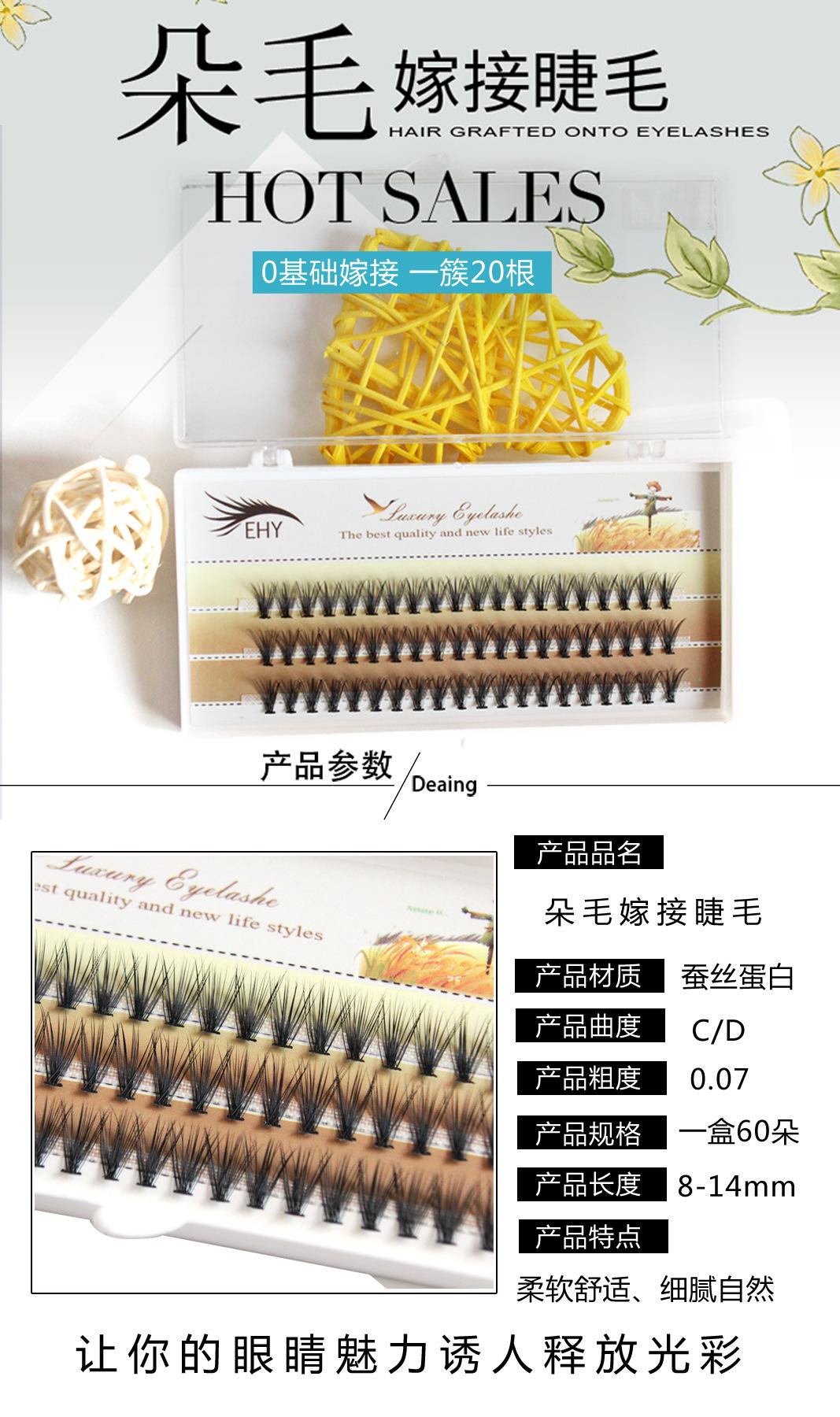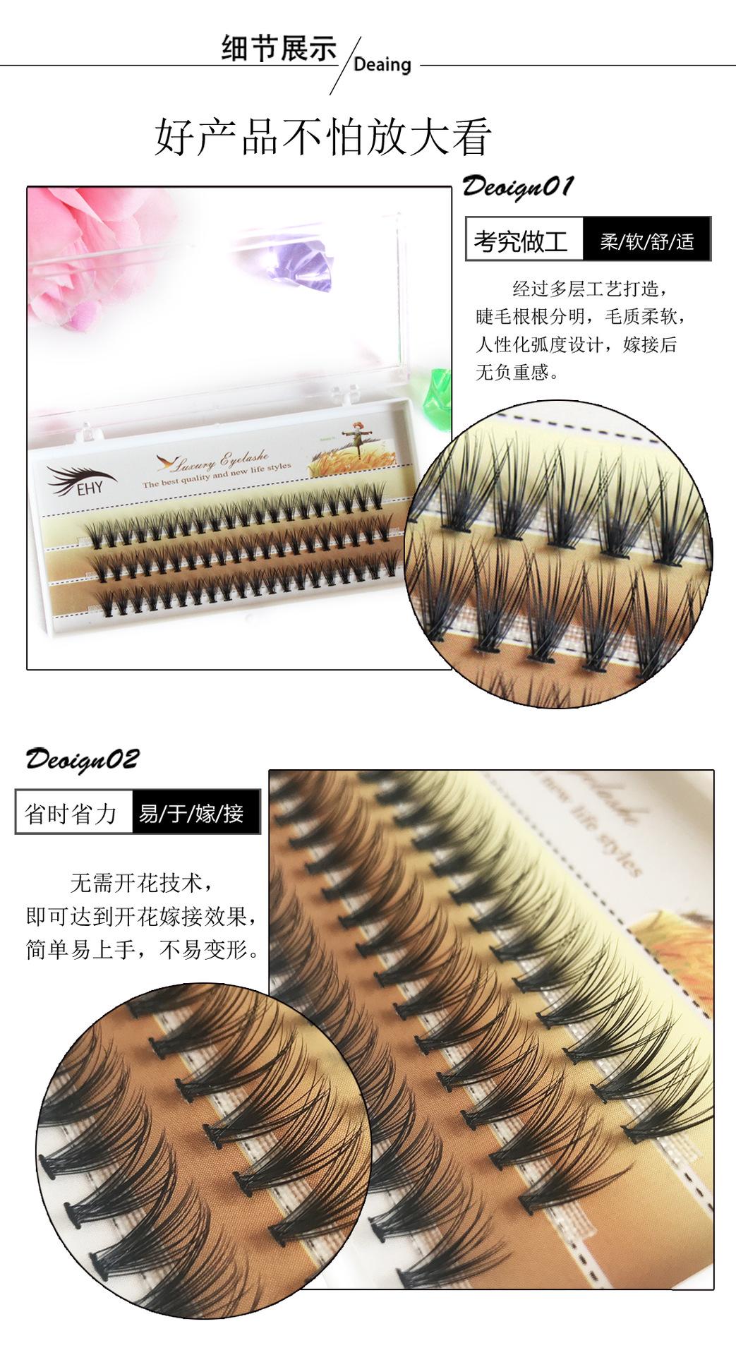 Este tipo de pestaña son pestañas en racimo fusionadas con calor, un estilo clásico natural de puntas abiertas, y un producto de pestañas de nivel de entrada para las principales tiendas de belleza y extensión de pestañas y principiantes en el injerto. ¡Las ventas en el mercado y el volumen de adquisición son grandes! Naturales, cómodas y no se deforman fácilmente, las pestañas son naturales.