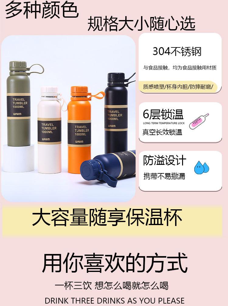 Nueva taza de agua Ike Pot con asa de gran capacidad, práctica taza térmica de acero inoxidable 304 para deportes al aire libre.