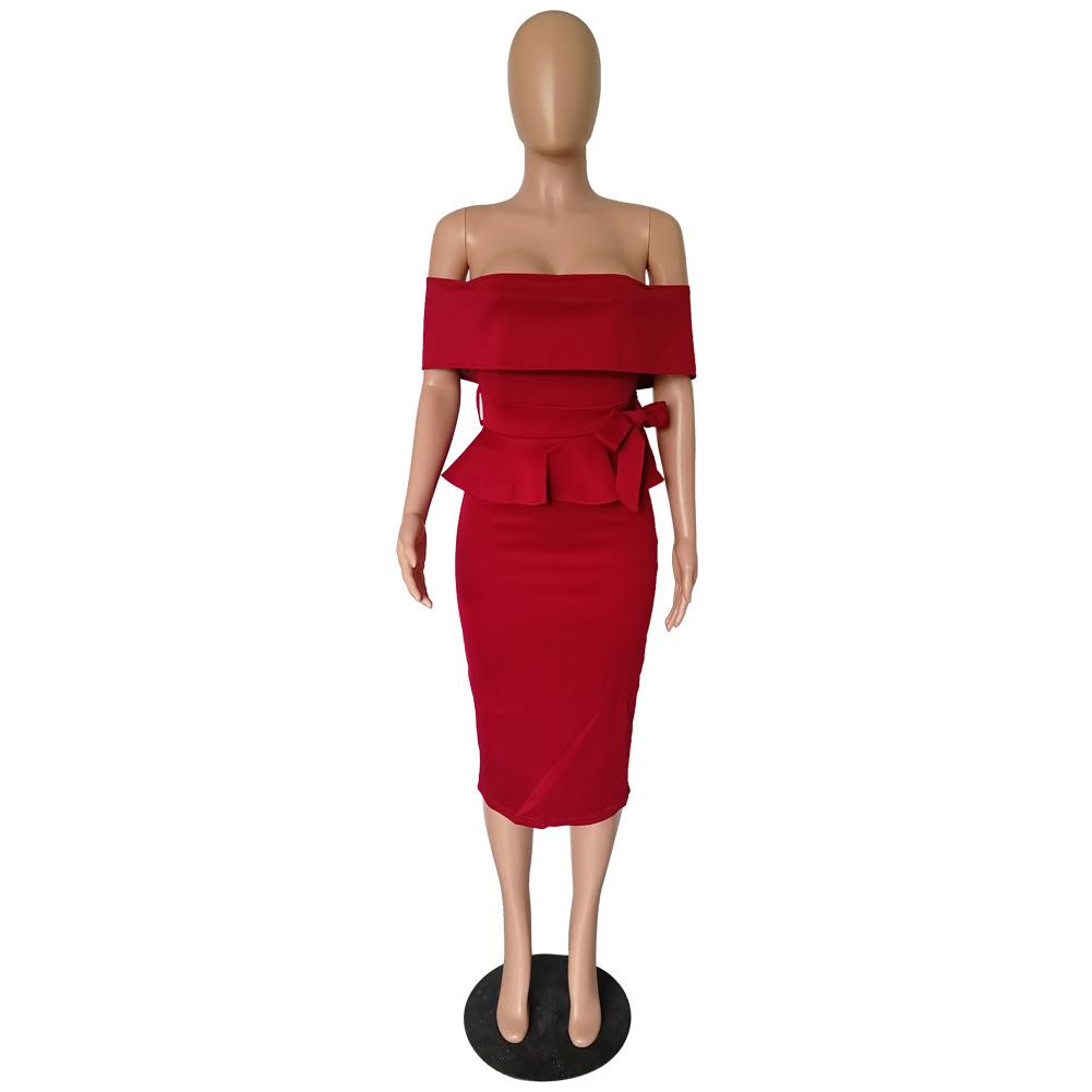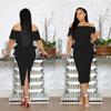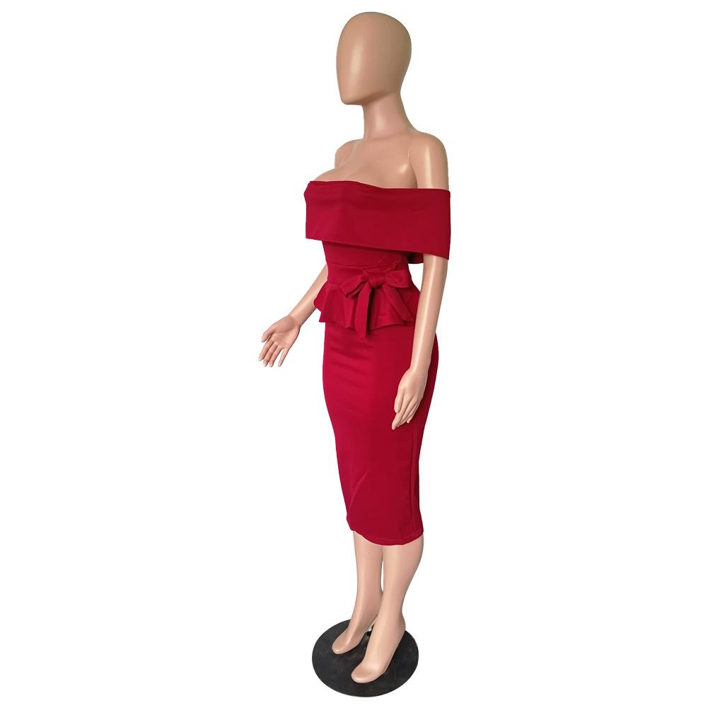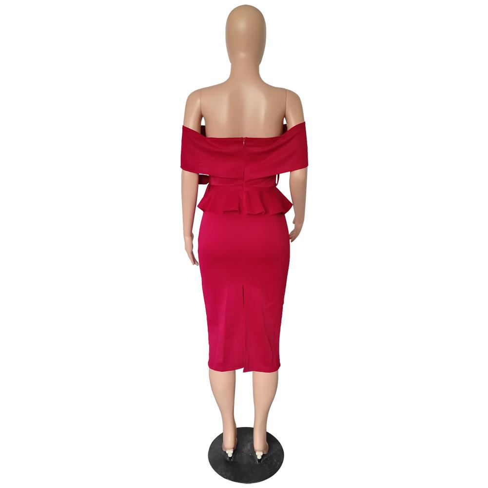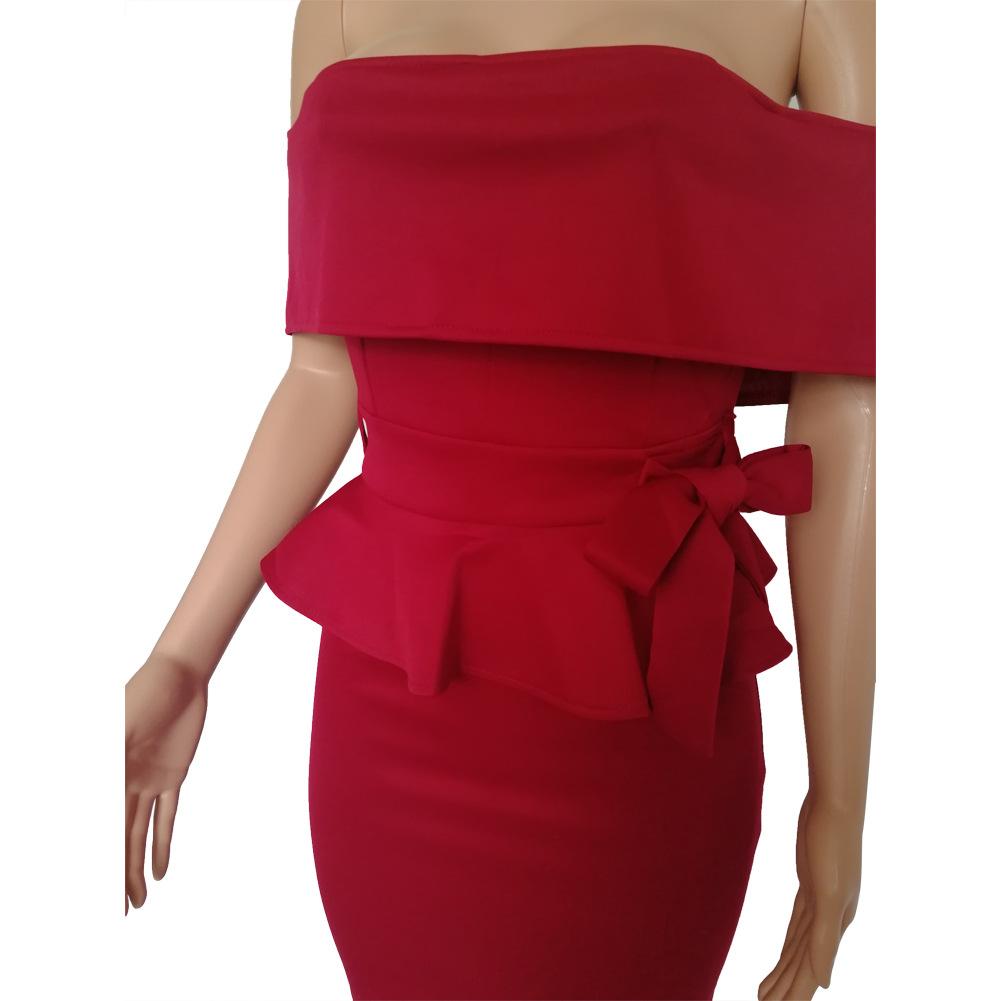 Título: vestido midi de moda para mujer con hombros descubiertos