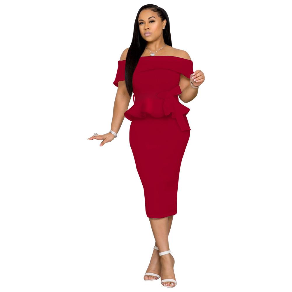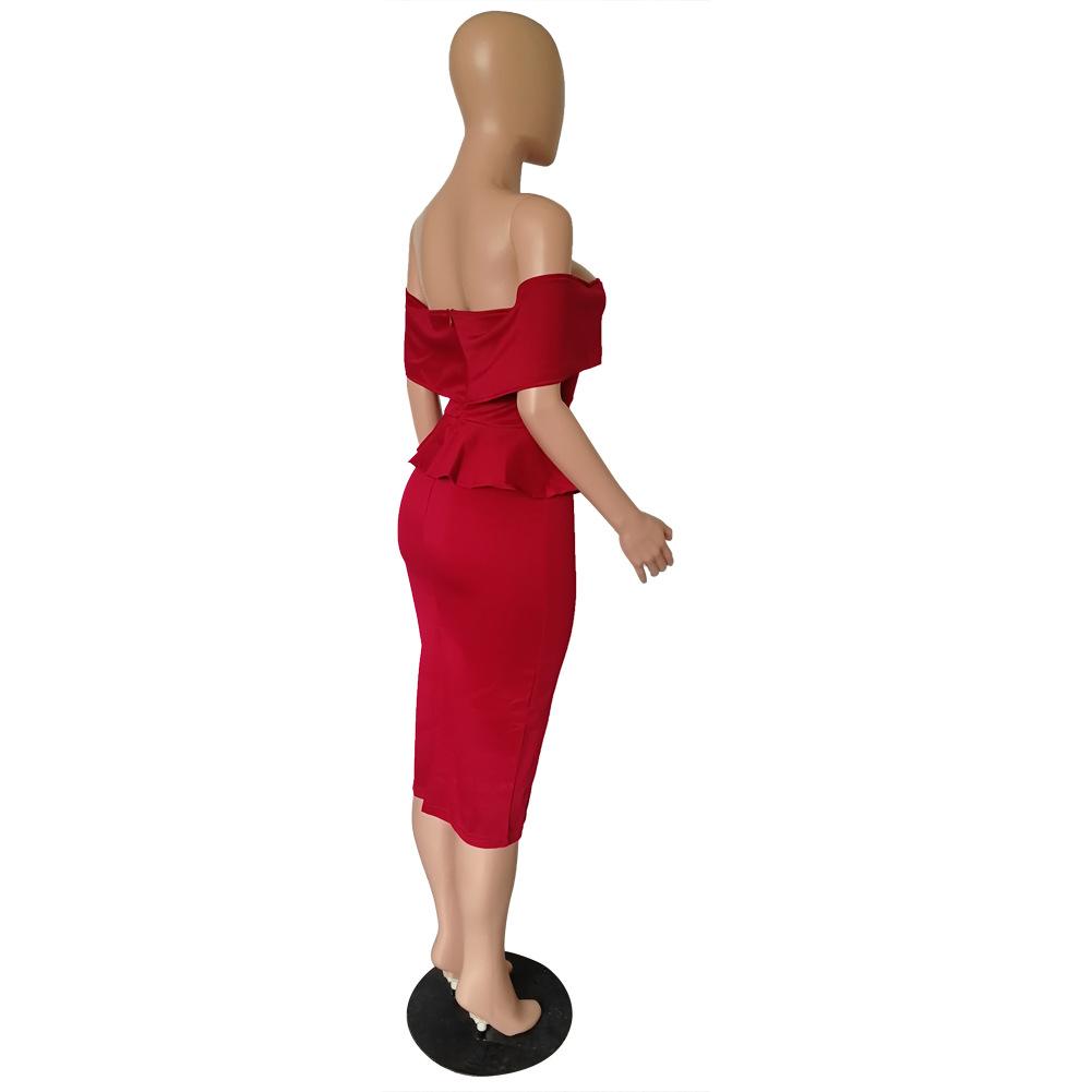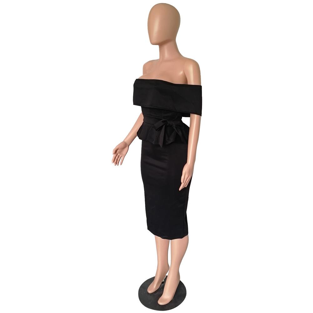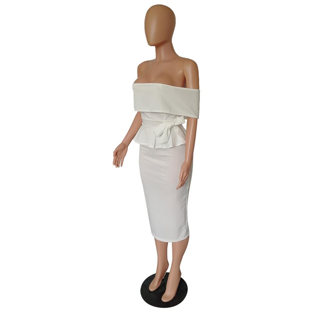 Título: vestido midi de moda para mujer con hombros descubiertos