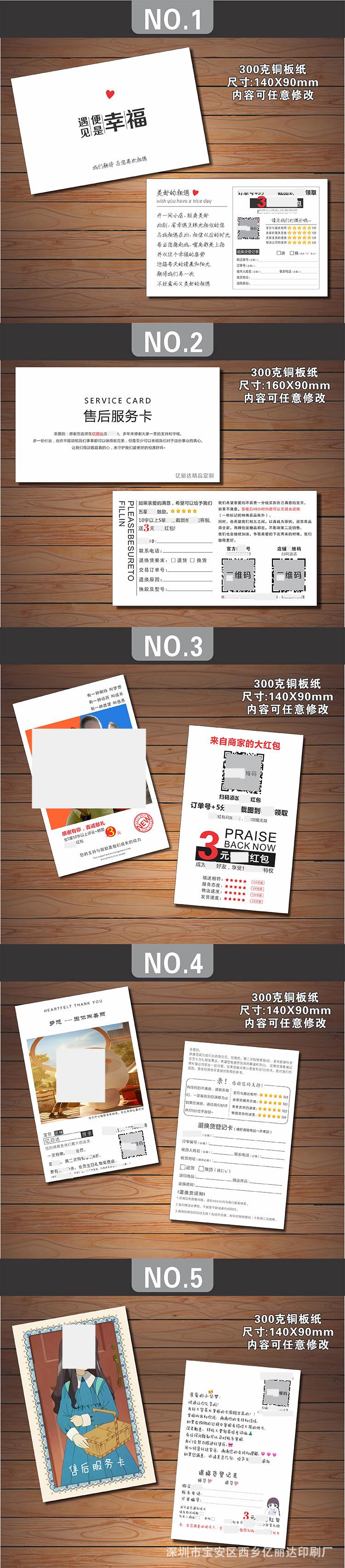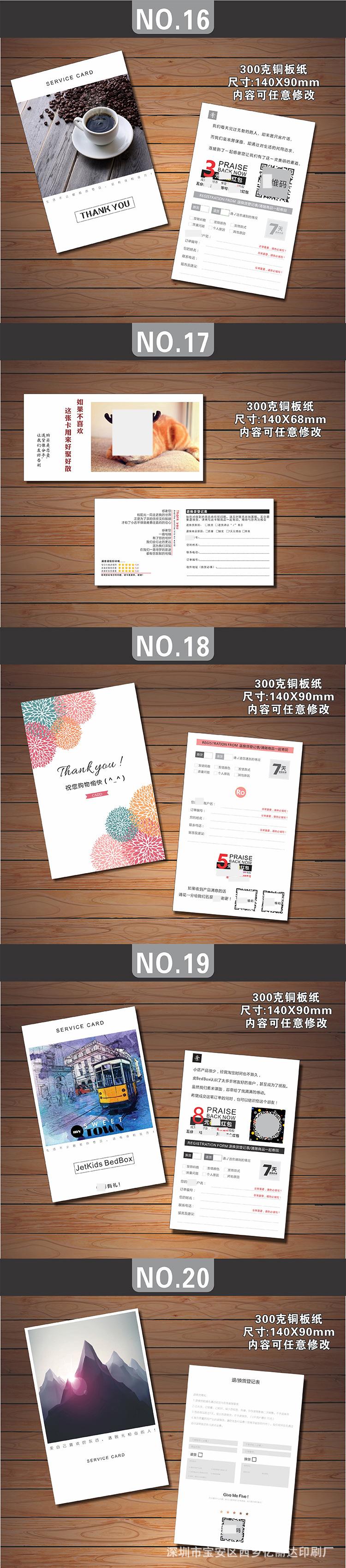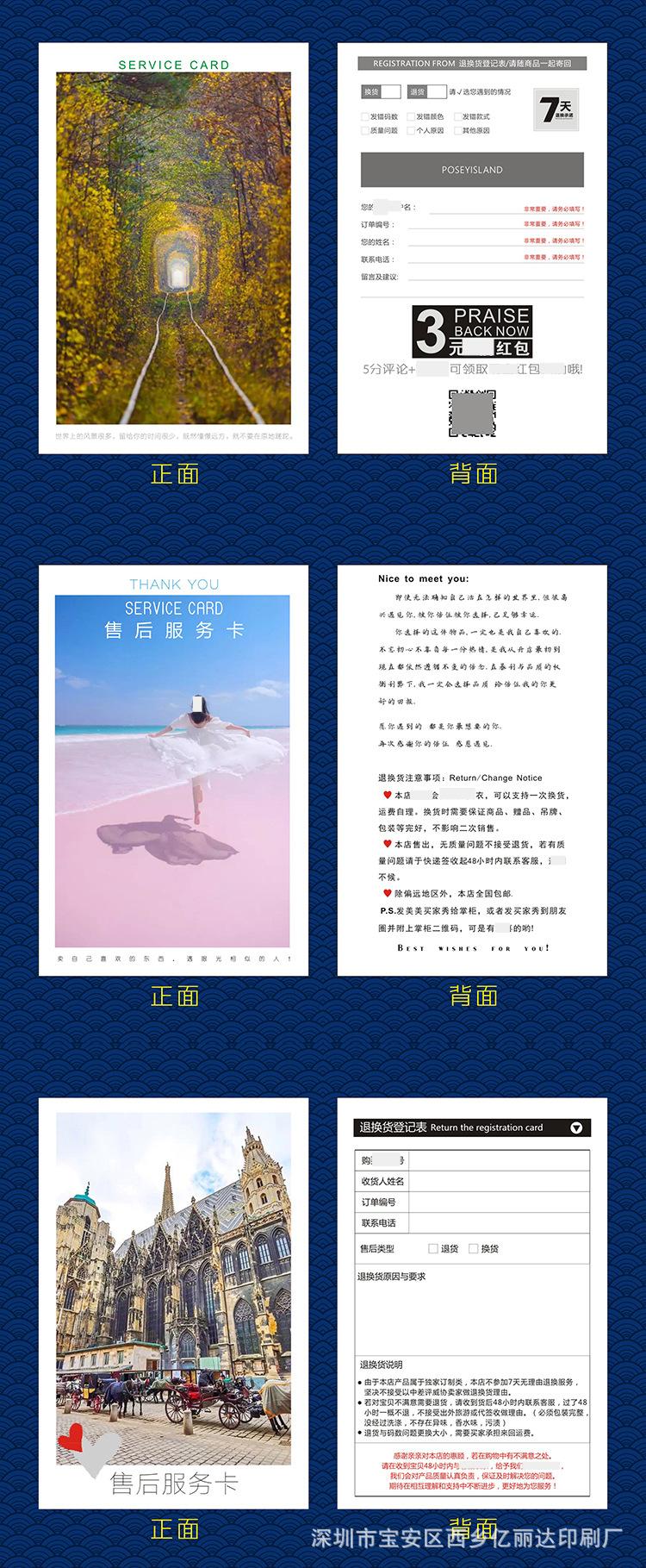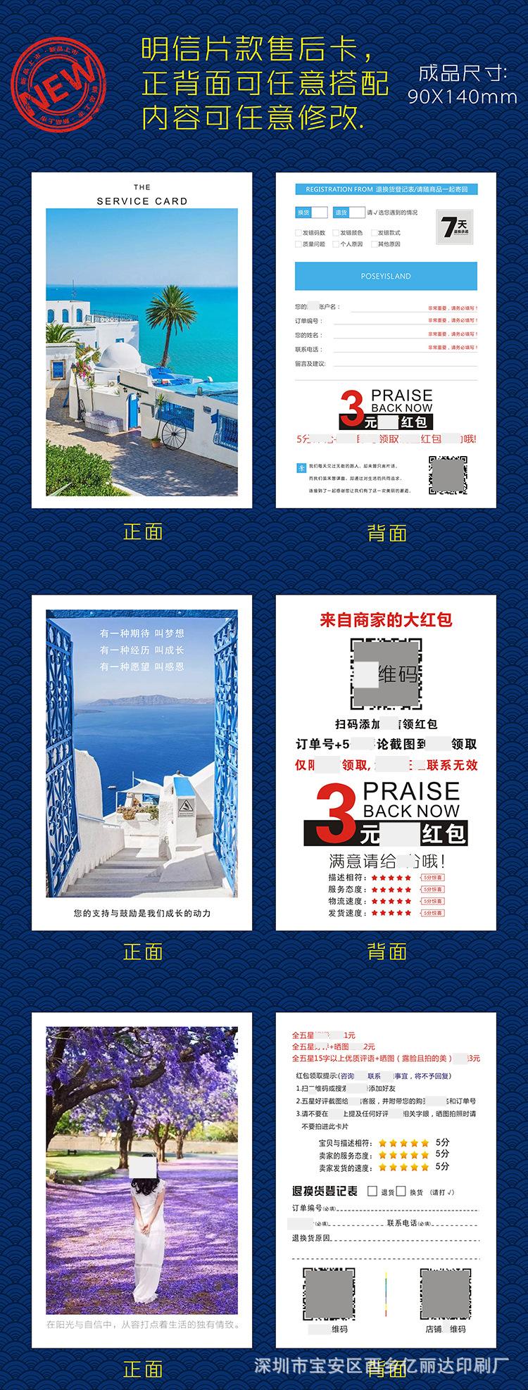 Estimado/a, el precio de las tarjetas posventa hechas a medida varía debido al tamaño personalizado, la artesanía, el material, la cantidad, el lugar de entrega y otros factores, lo que hace imposible listar un precio estándar unificado para los materiales impresos. Por lo tanto, el precio en la página no sirve como el precio de transacción real. Para el precio específico, ¡consulte al servicio de atención al cliente!