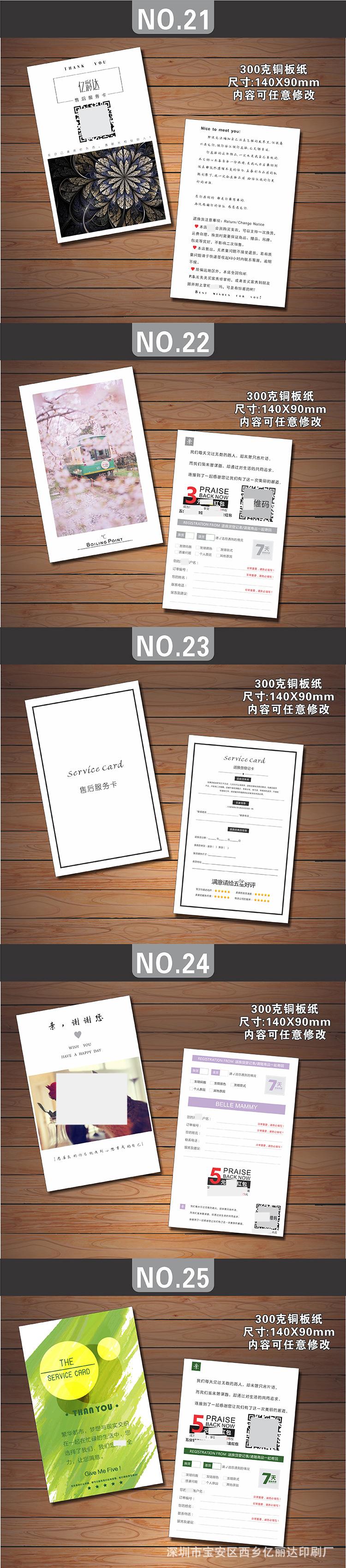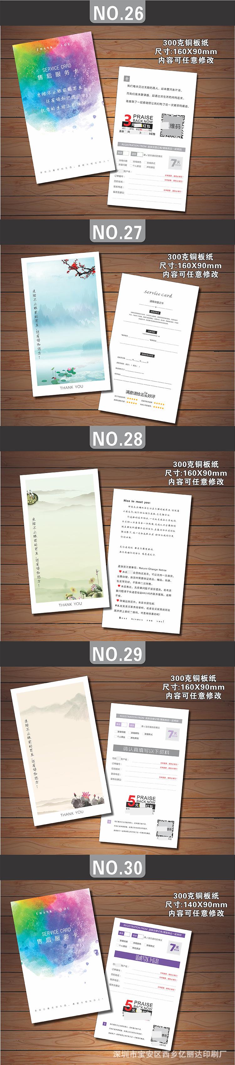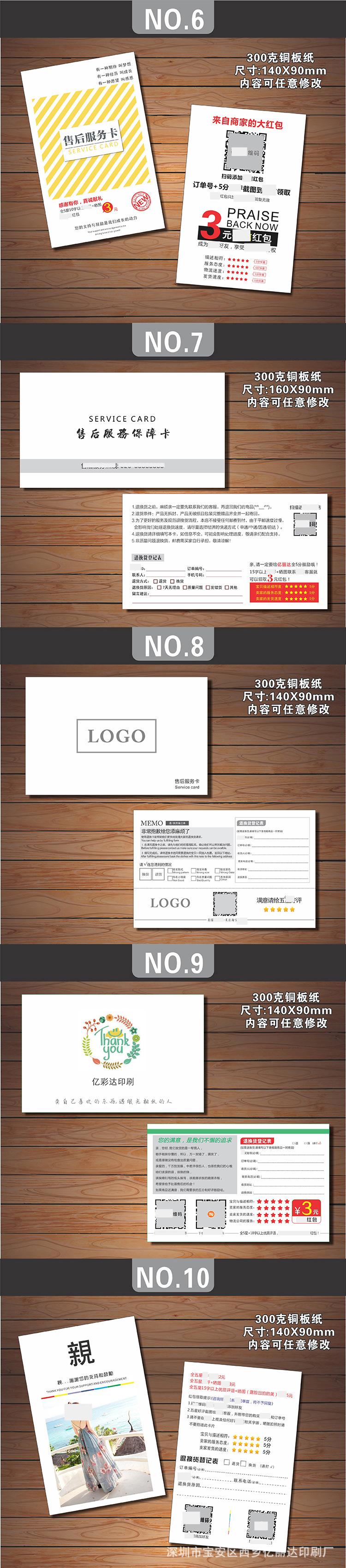 Estimado/a, el precio de las tarjetas posventa hechas a medida varía debido al tamaño personalizado, la artesanía, el material, la cantidad, el lugar de entrega y otros factores, lo que hace imposible listar un precio estándar unificado para los materiales impresos. Por lo tanto, el precio en la página no sirve como el precio de transacción real. Para el precio específico, ¡consulte al servicio de atención al cliente!