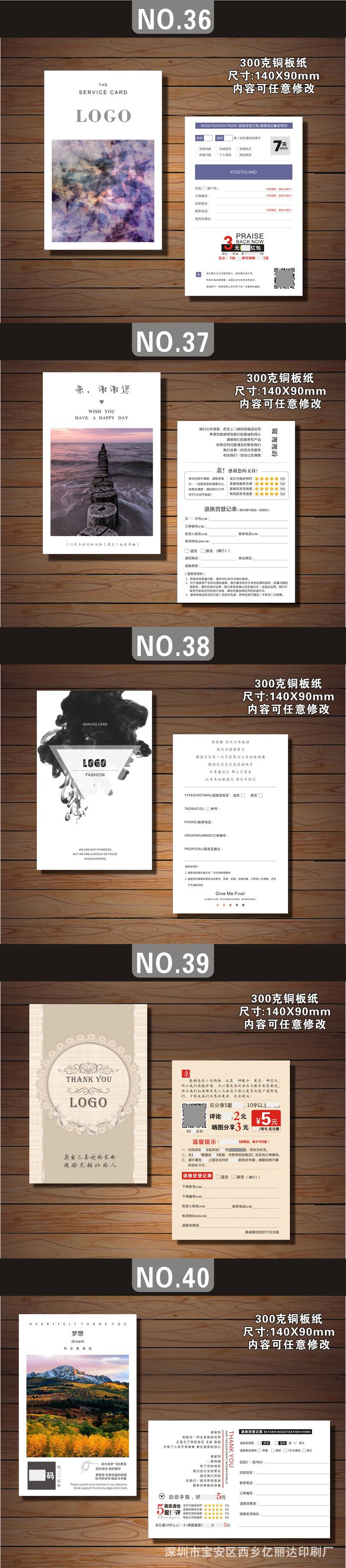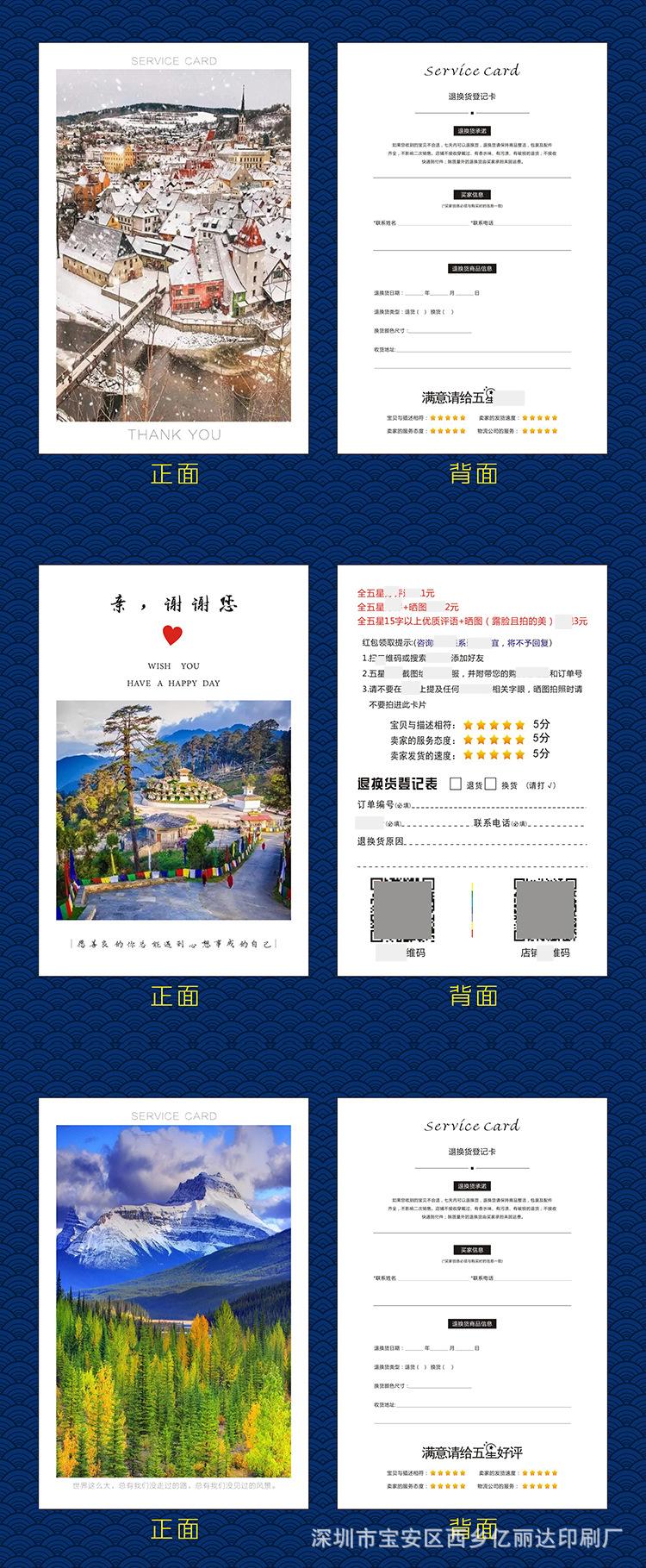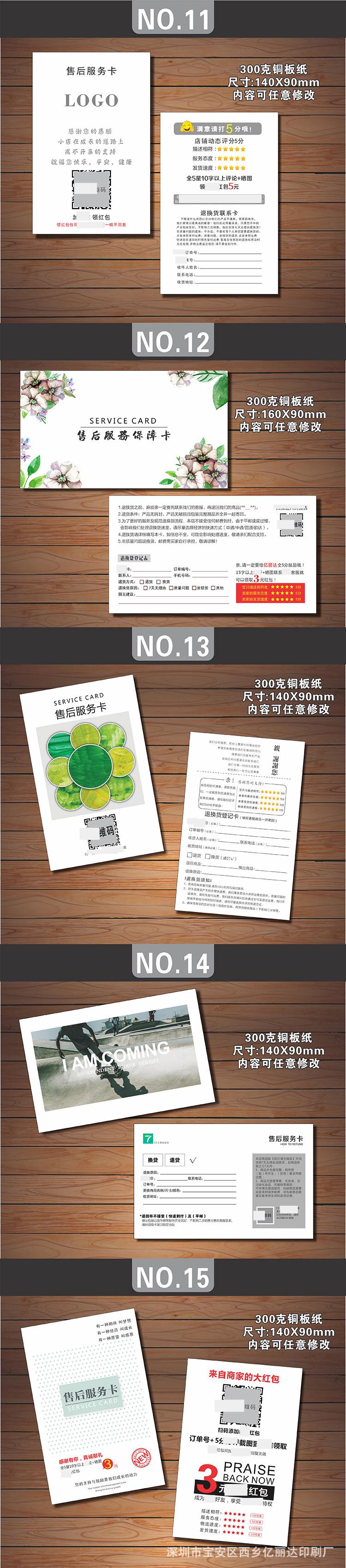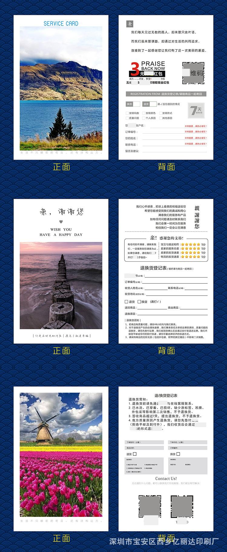 Estimado/a, el precio de las tarjetas posventa hechas a medida varía debido al tamaño personalizado, la artesanía, el material, la cantidad, el lugar de entrega y otros factores, lo que hace imposible listar un precio estándar unificado para los materiales impresos. Por lo tanto, el precio en la página no sirve como el precio de transacción real. Para el precio específico, ¡consulte al servicio de atención al cliente!