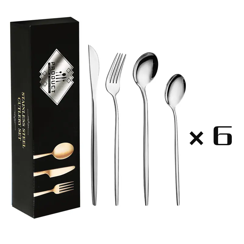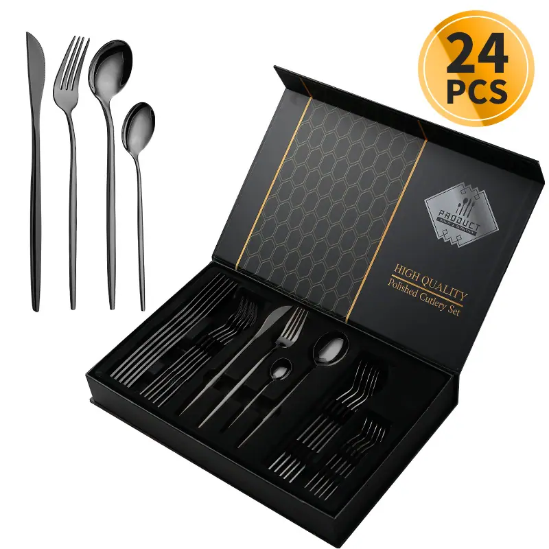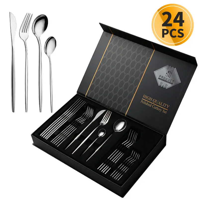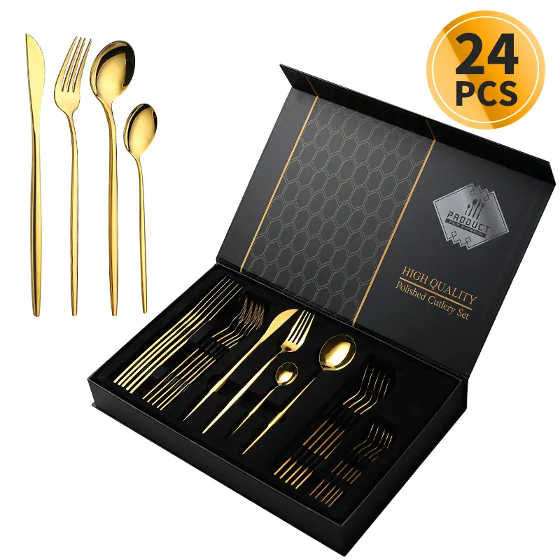 Compra Set de Caja de Regalo de Cubiertos Occidentales de Acero Inoxidable Cuchillo, Tenedor y Cuchara de Acero Inoxidable Juego de Cubiertos Portugueses para 6 Personas Juego de 24 Piezas al por mayor en Joom.pro