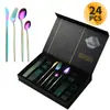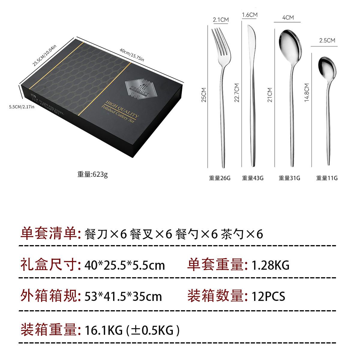 Set de Cubertería Occidental de Acero Inoxidable en Caja de Regalo Cuchillo, Tenedor y Cuchara de Acero Inoxidable Juego de Cubertería Portuguesa para 6 Personas Juego de 24 Piezas