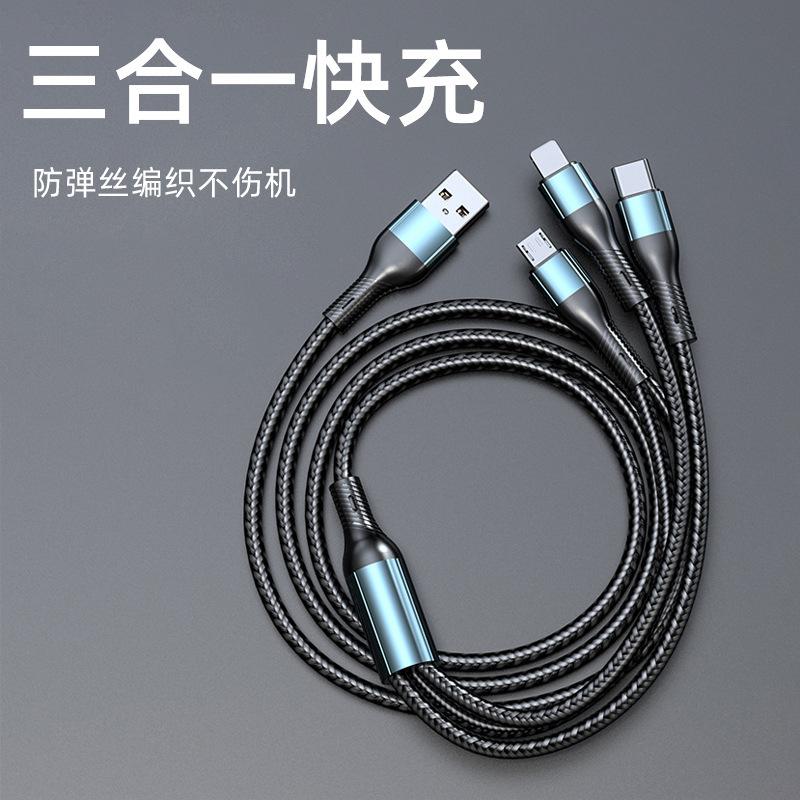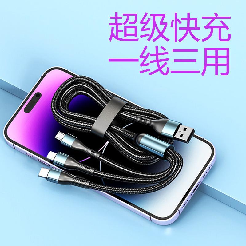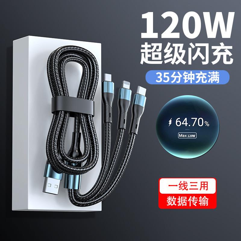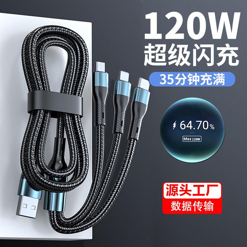 Cable de datos uno a tres tres en uno 120W para Apple Android cable de datos carga súper rápida línea de carga para teléfono móvil