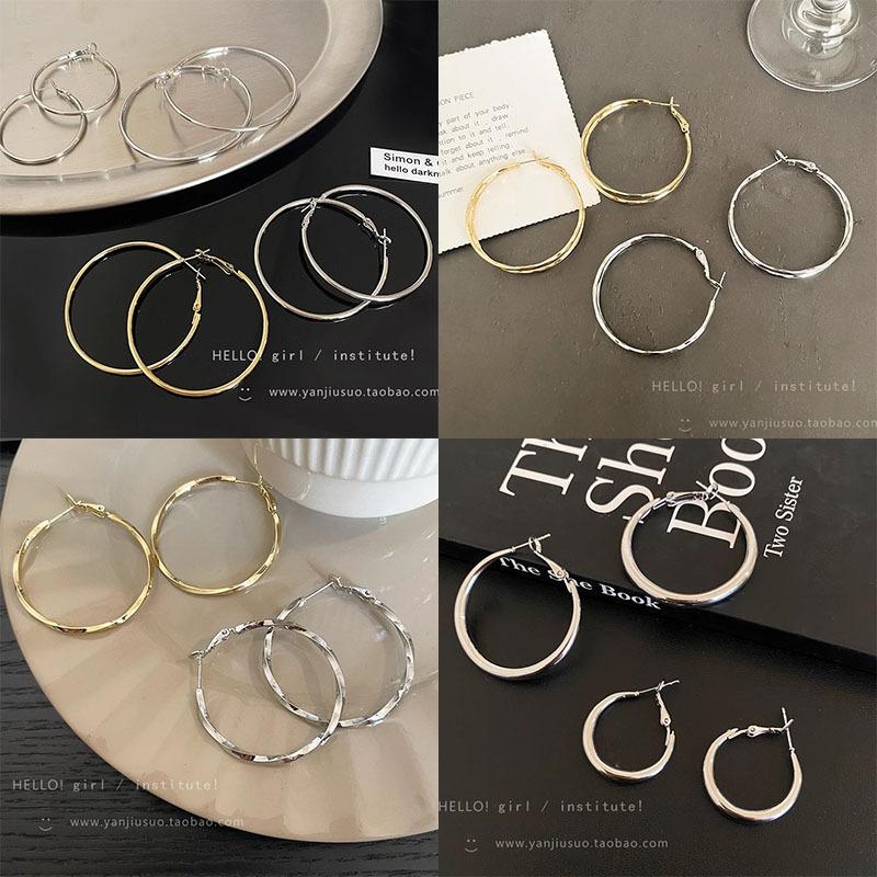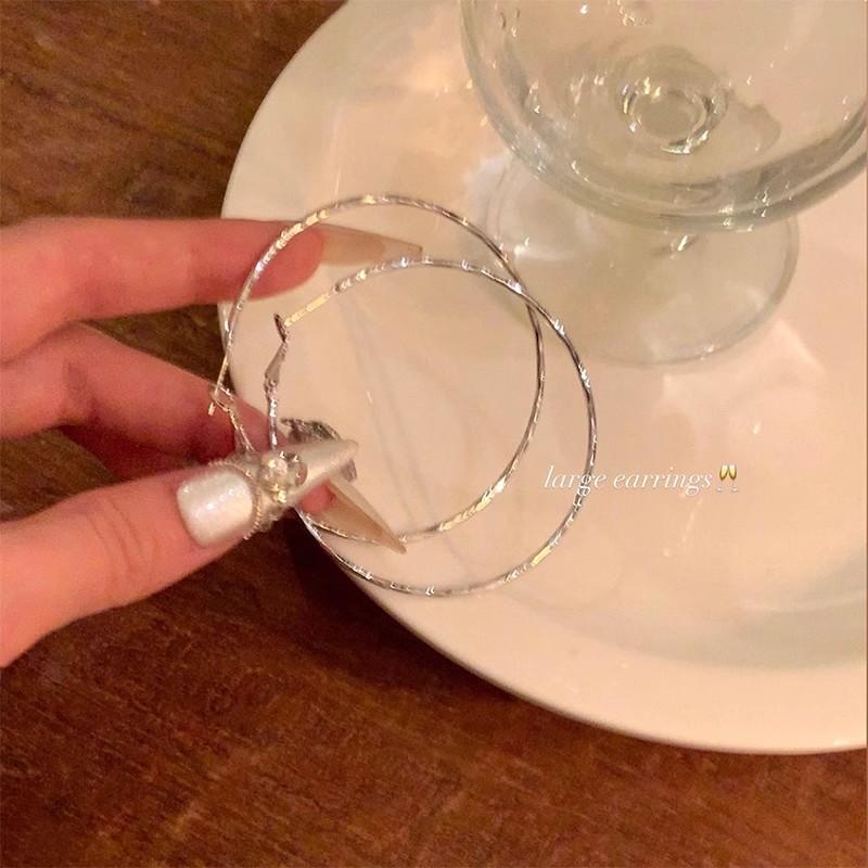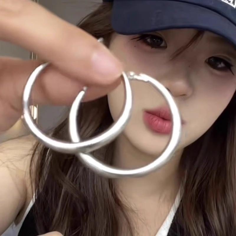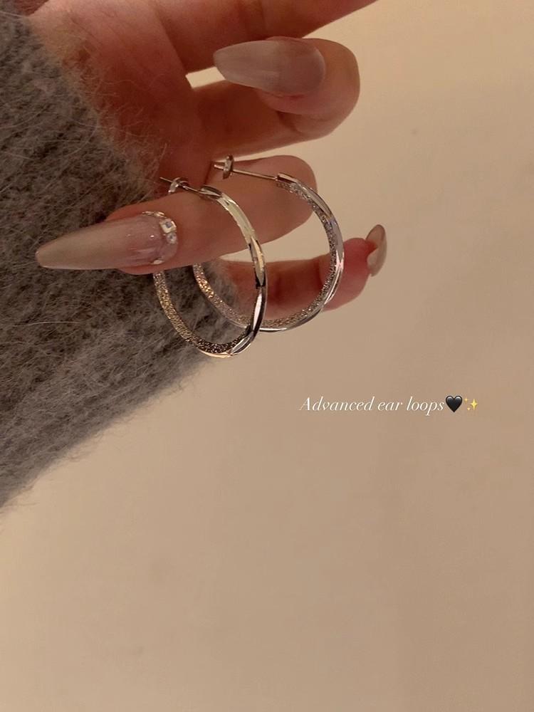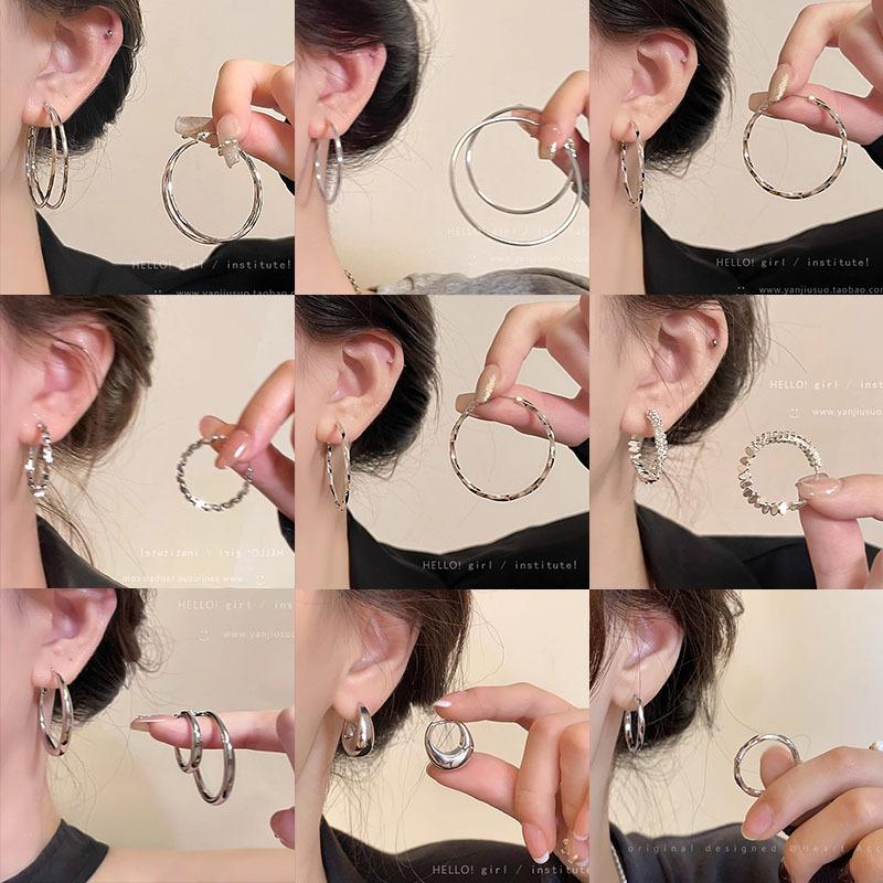 Aretes de Aro con Aguja de Plata S925 para Mujer, Lujo Ligero, Nicho, Sensación de Alta Gama, Exagerados, Aretes de Aro Versátiles y Modernos