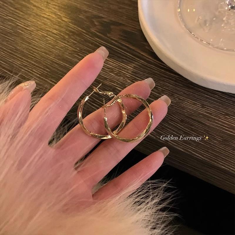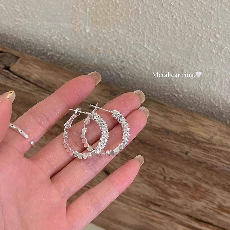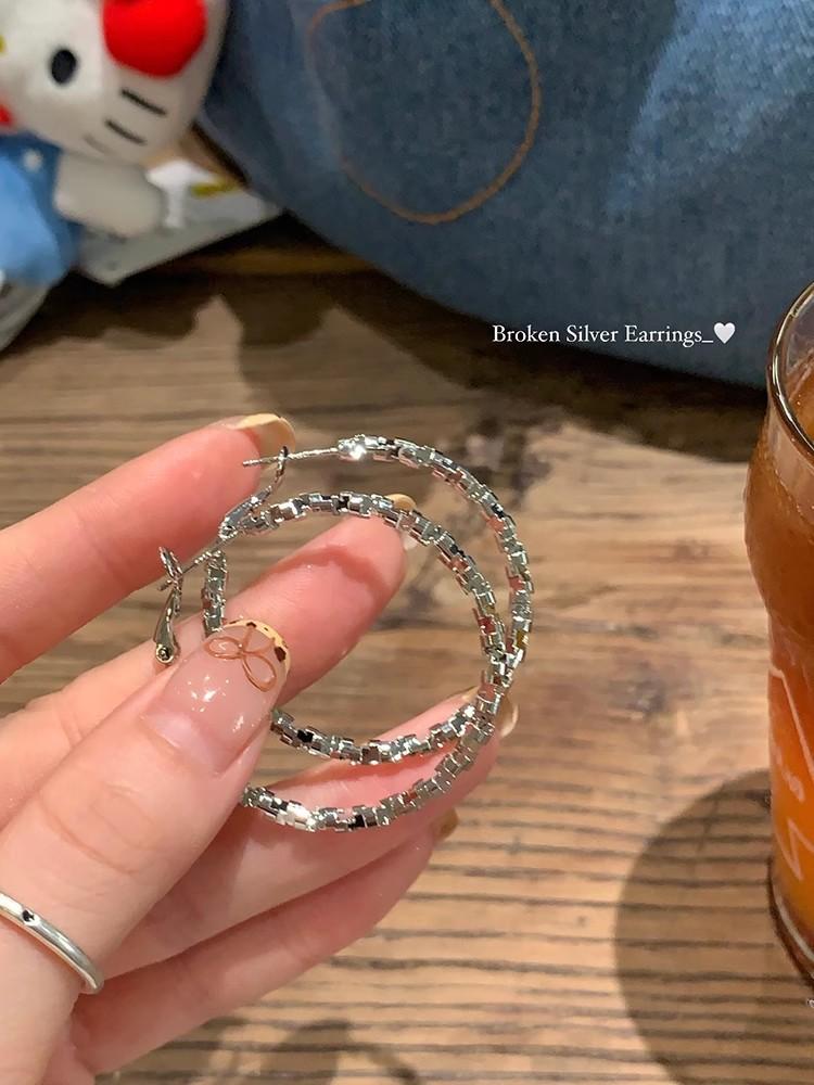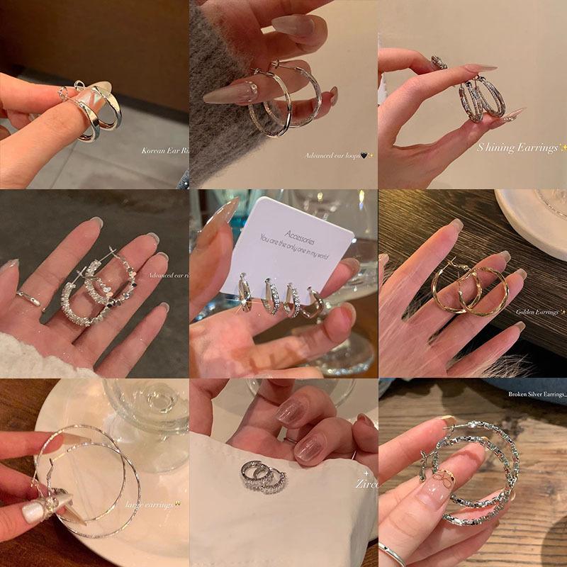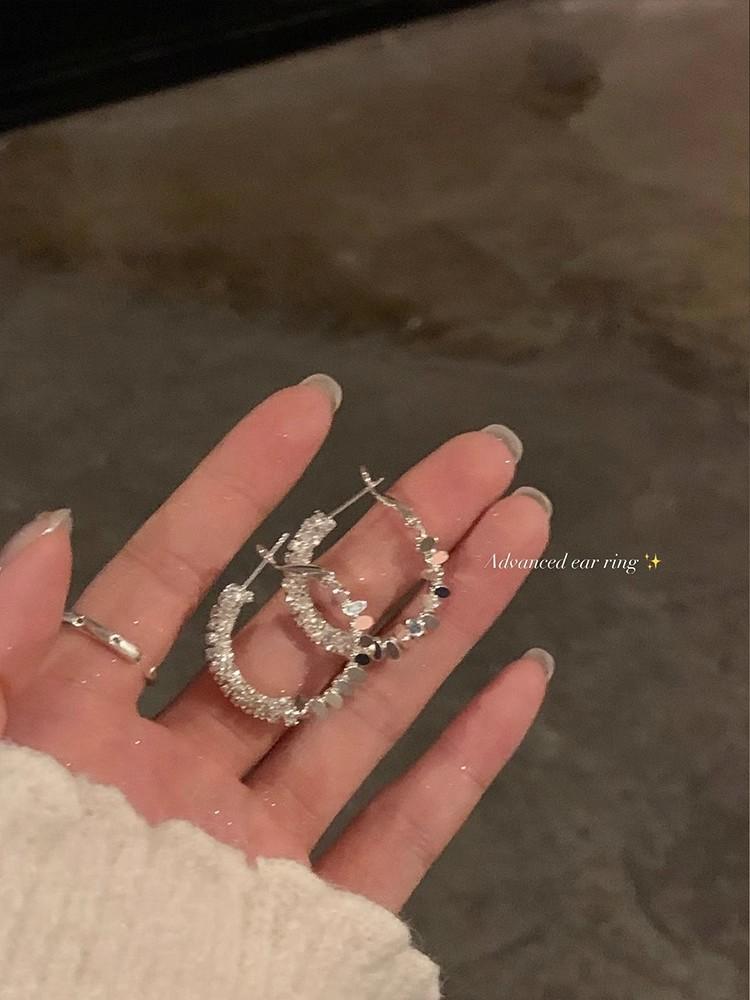 Aretes de Aro con Aguja de Plata S925 para Mujer, Lujo Ligero, Nicho, Sensación de Alta Gama, Exagerados, Aretes de Aro Versátiles y Modernos
