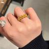 Anillo Ajustable de Apertura de Oro Arena Fina Esmerilado para Mujer Moda Dulce Lujo Ligero Nicho Exquisito Diseño Antiguo