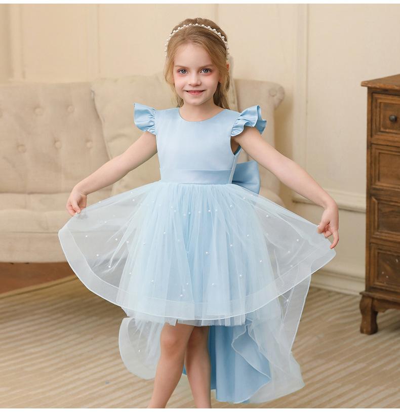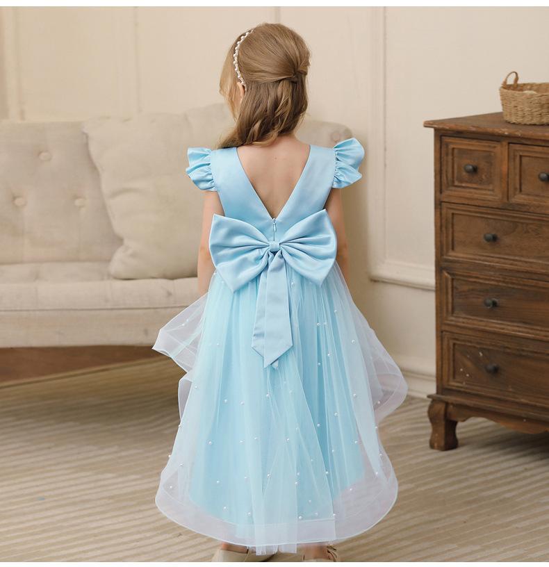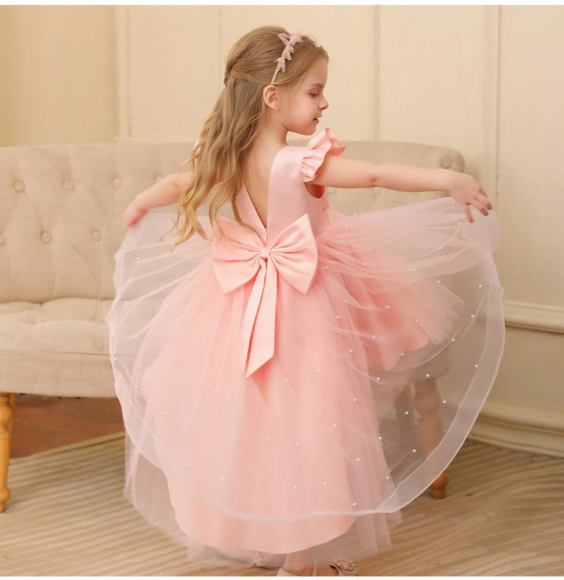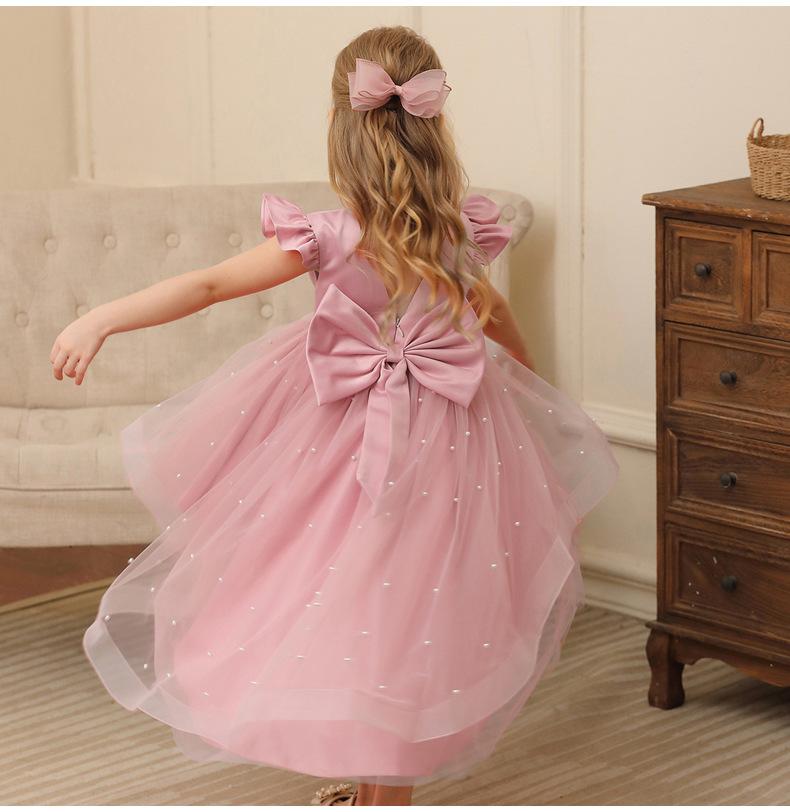 Vestido Tutú de Verano para Niña de Venta Caliente de Comercio Exterior Vestido de Princesa sin Espalda con Lazo Grande para Niña de las Flores Vestido Infantil