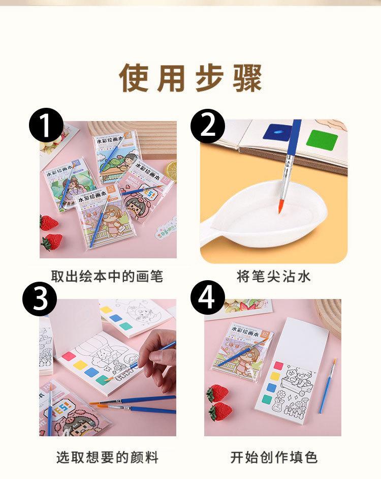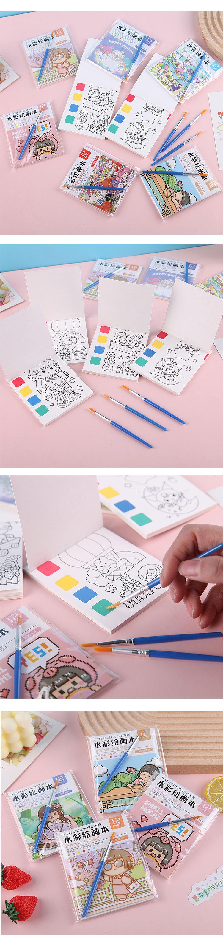 Libro para colorear de acuarela para niños, libro para colorear DIY, pintura para jardín de infantes, libro de dibujo de grafiti con gouache portátil hecho a mano, notas