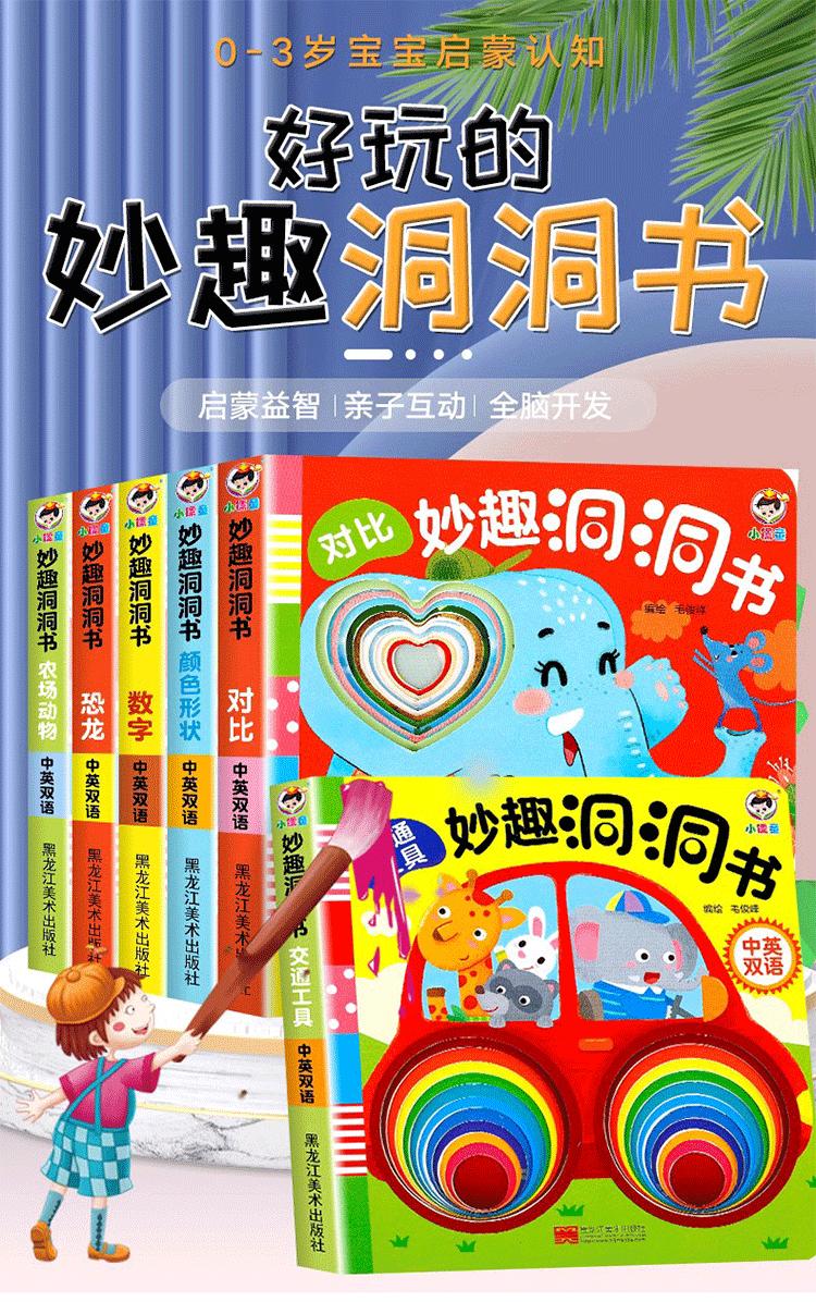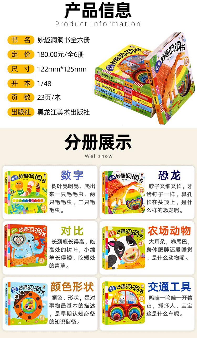 Libro divertido de la cueva Libros de educación temprana para niños Iluminación para bebés Tapa dura Libro de pegatinas chino Libro de imágenes 6 libros