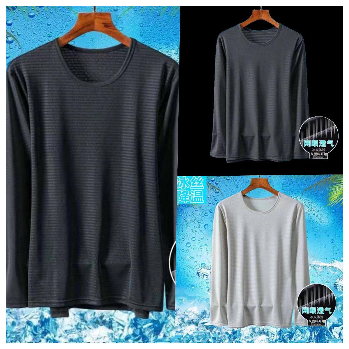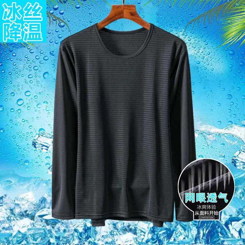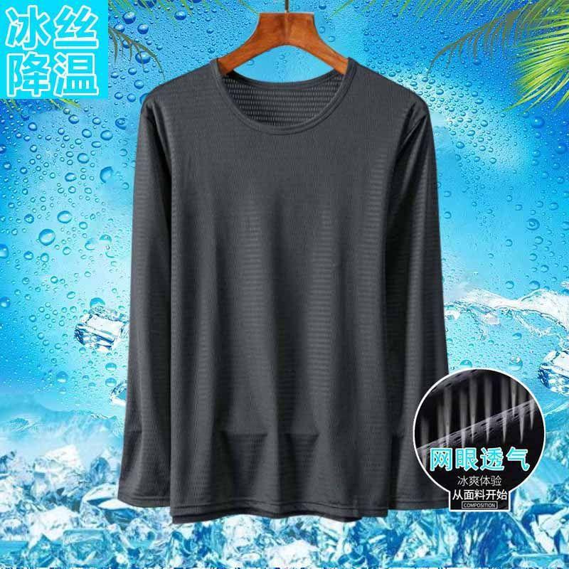 Camiseta de Manga Larga de Malla de Seda de Hielo para Primavera y Otoño para Hombre, Delgada, Holgada, Talla Grande, Transpirable, de Secado Rápido, Deportiva, Casual, para Hombre