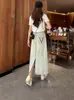 Falda de mezclilla con abertura de cintura alta para mujer 2025 Nueva falda de verano pequeña línea A falda larga retro que cubre las caderas