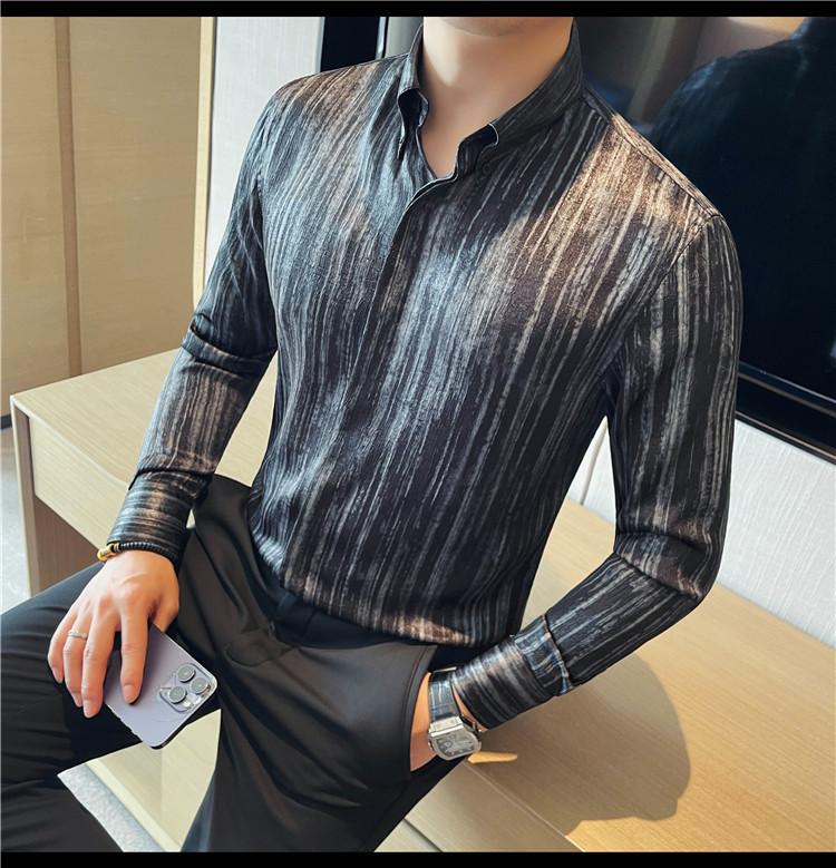 Compra Camisas de Manga Larga para Hombre de Primavera y Otoño de Alta Calidad al Por Mayor, Corte Slim, Cuello Abatible, Lujo Ligero, Camisas Base de Moda al por mayor en Joom.pro
