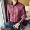 Camisas de Manga Larga para Hombre de Primavera y Otoño de Alta Calidad al Por Mayor, Corte Slim, Cuello Abatible, Lujo Ligero, Camisas Base de Moda