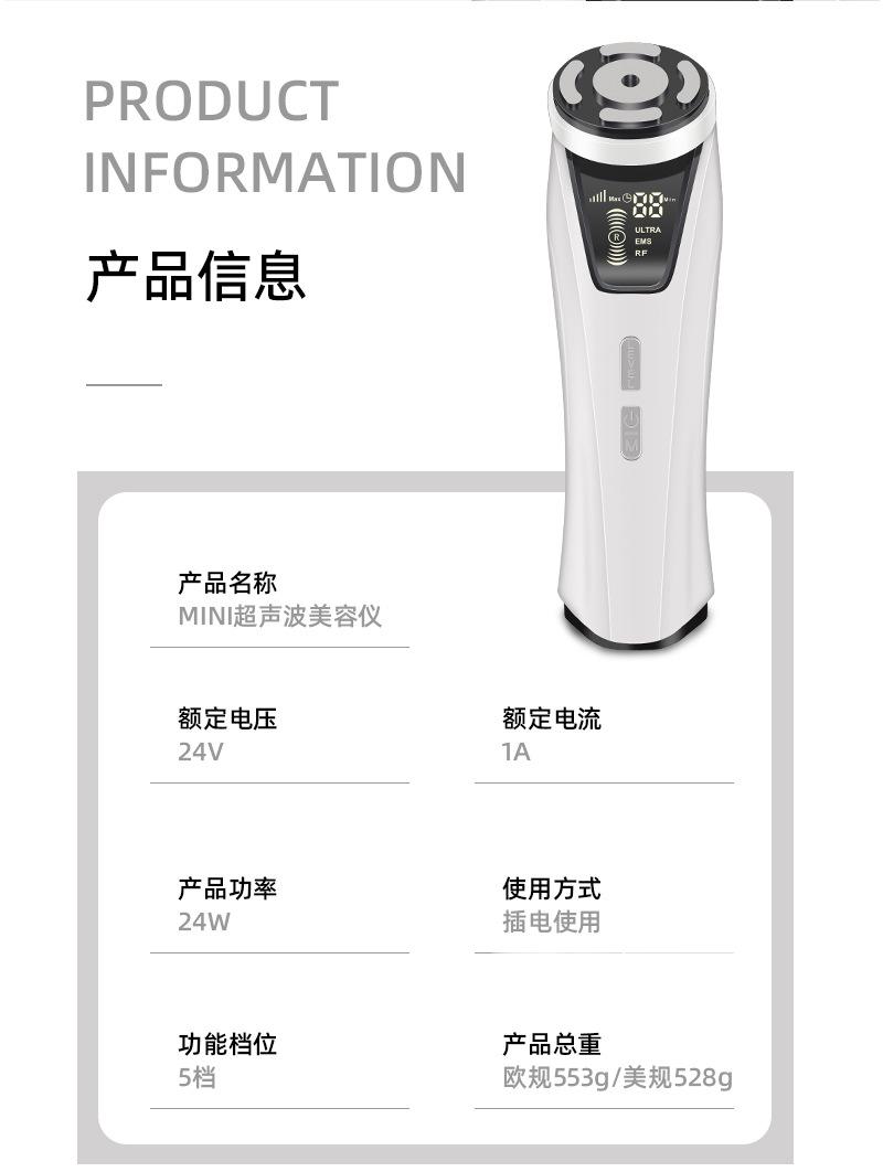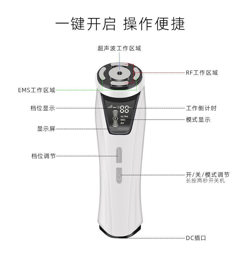 Masajeador Ultrasónico 3 en 1 Instrumento de Belleza Facial para el Hogar Ems Microcorriente Lifting, Reafirmante y Rejuvenecedor Instrumento de Belleza