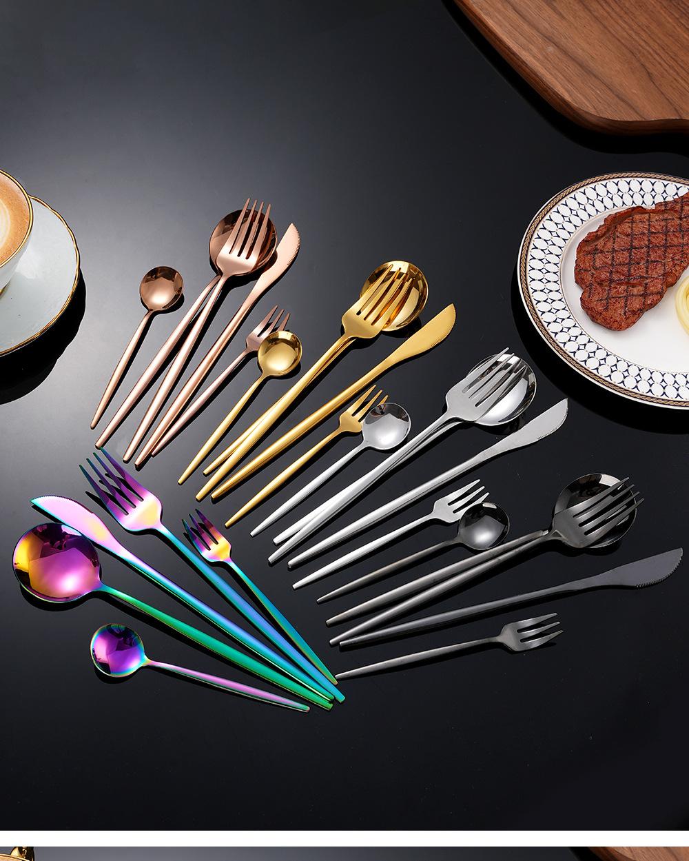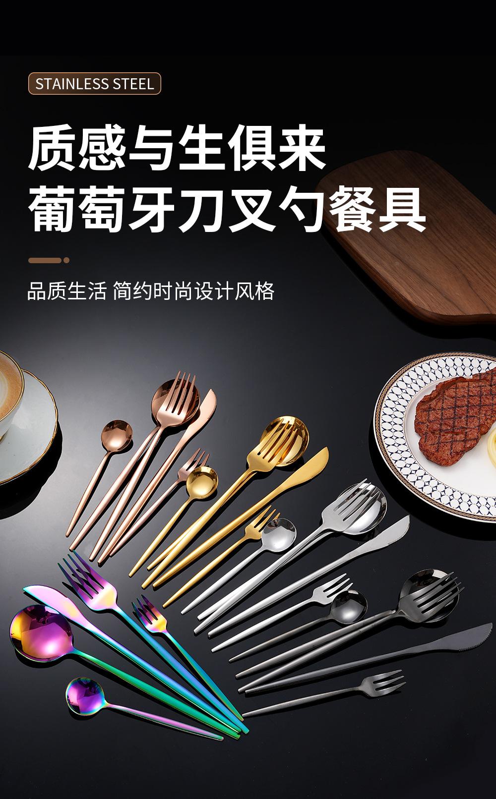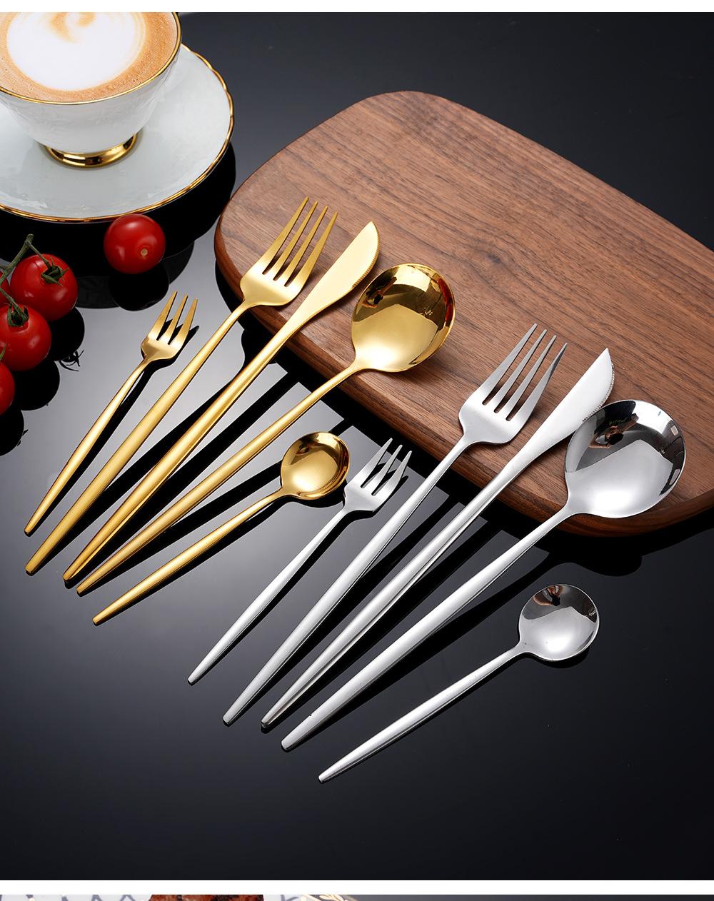 Cubiertos Portugueses de Mango Plano Acero Inoxidable Cuchillo y Tenedor Cuchara Hotel Restaurante Cuchillo para Bistec y Tenedor Cuchara Juego de Cinco Piezas traje Cuchara de Café
