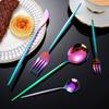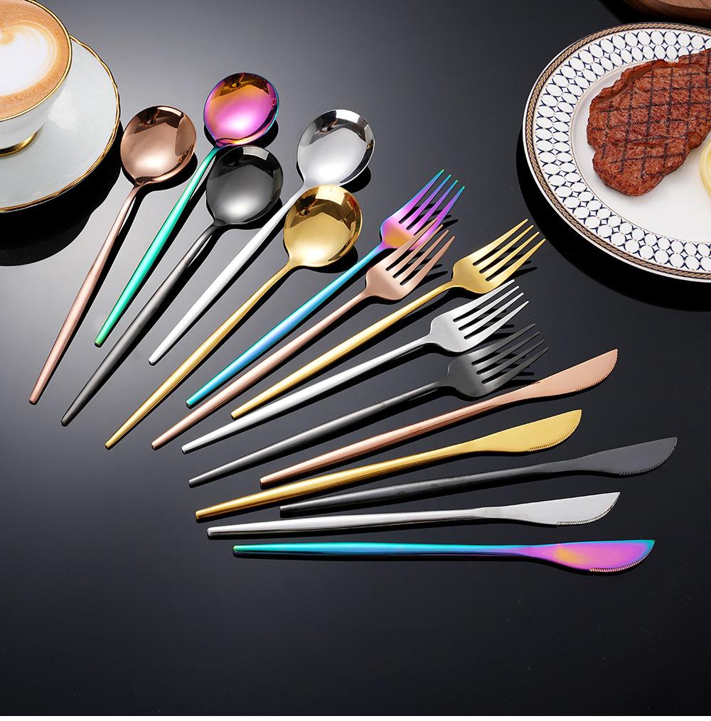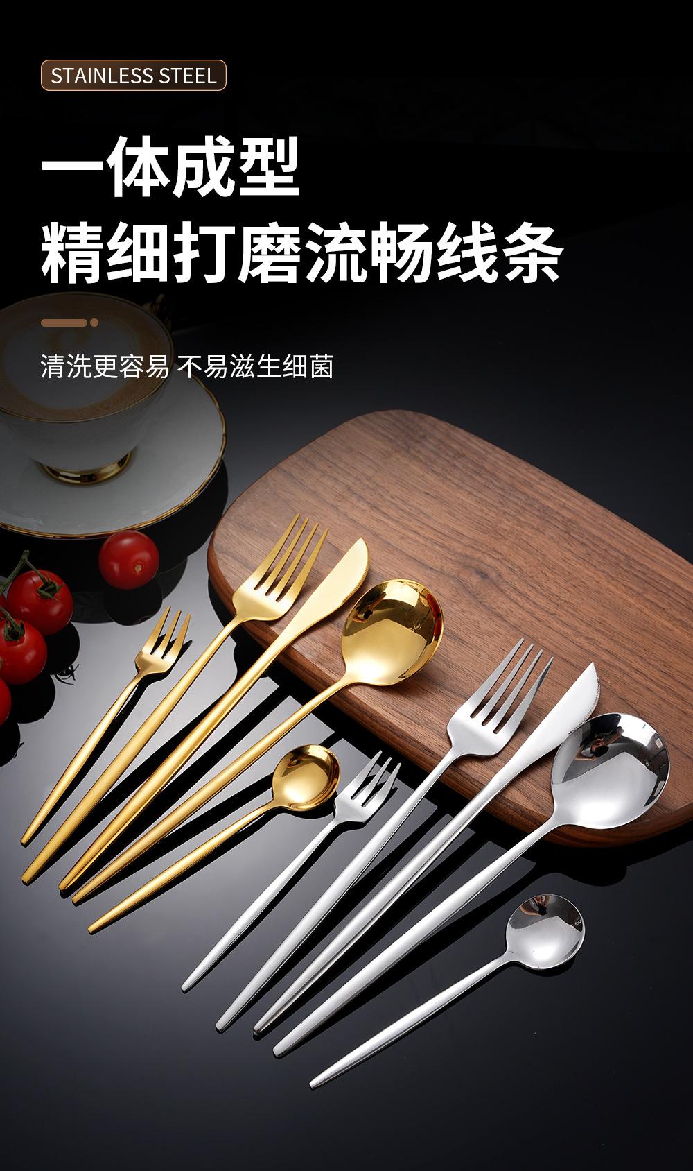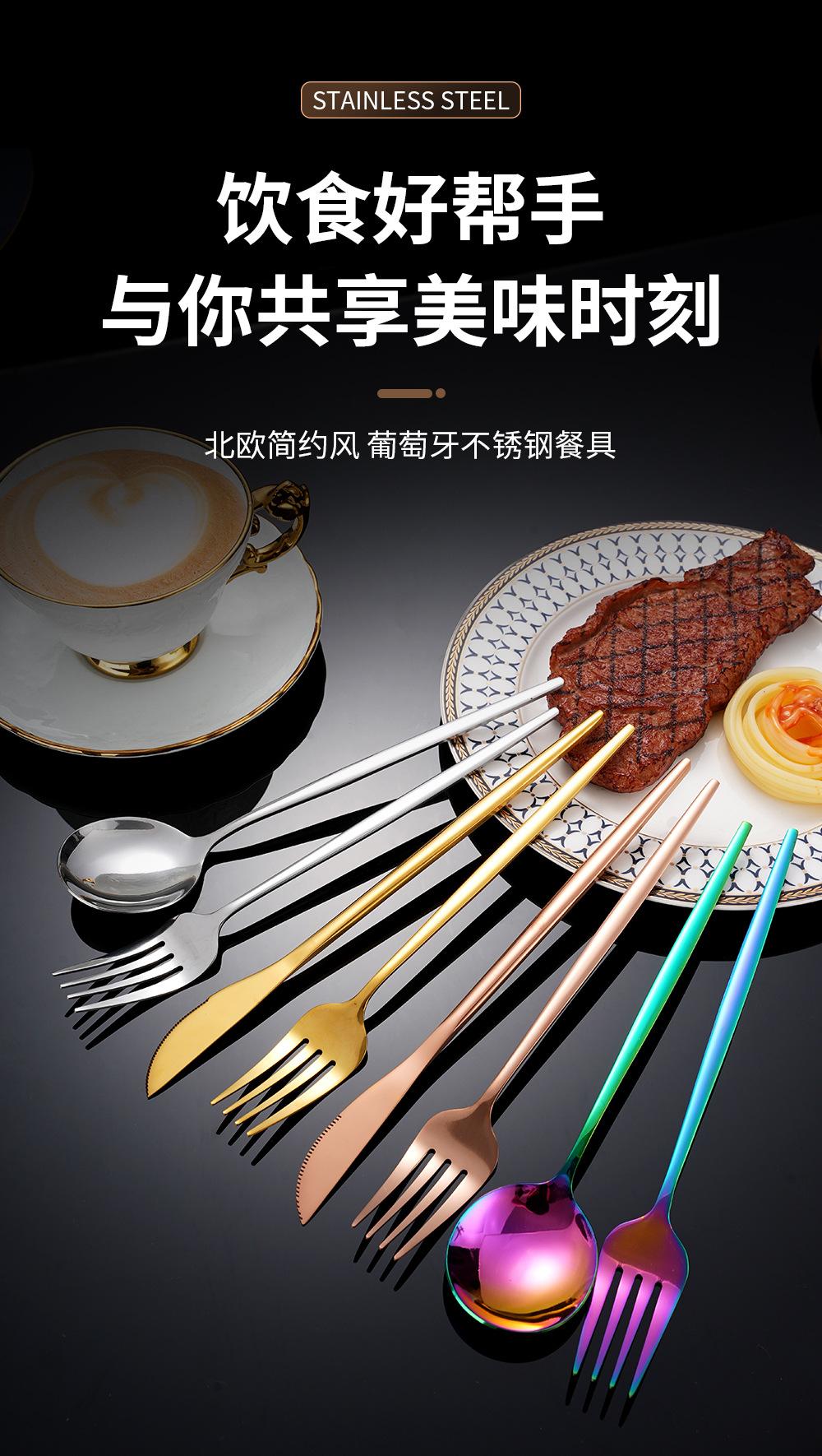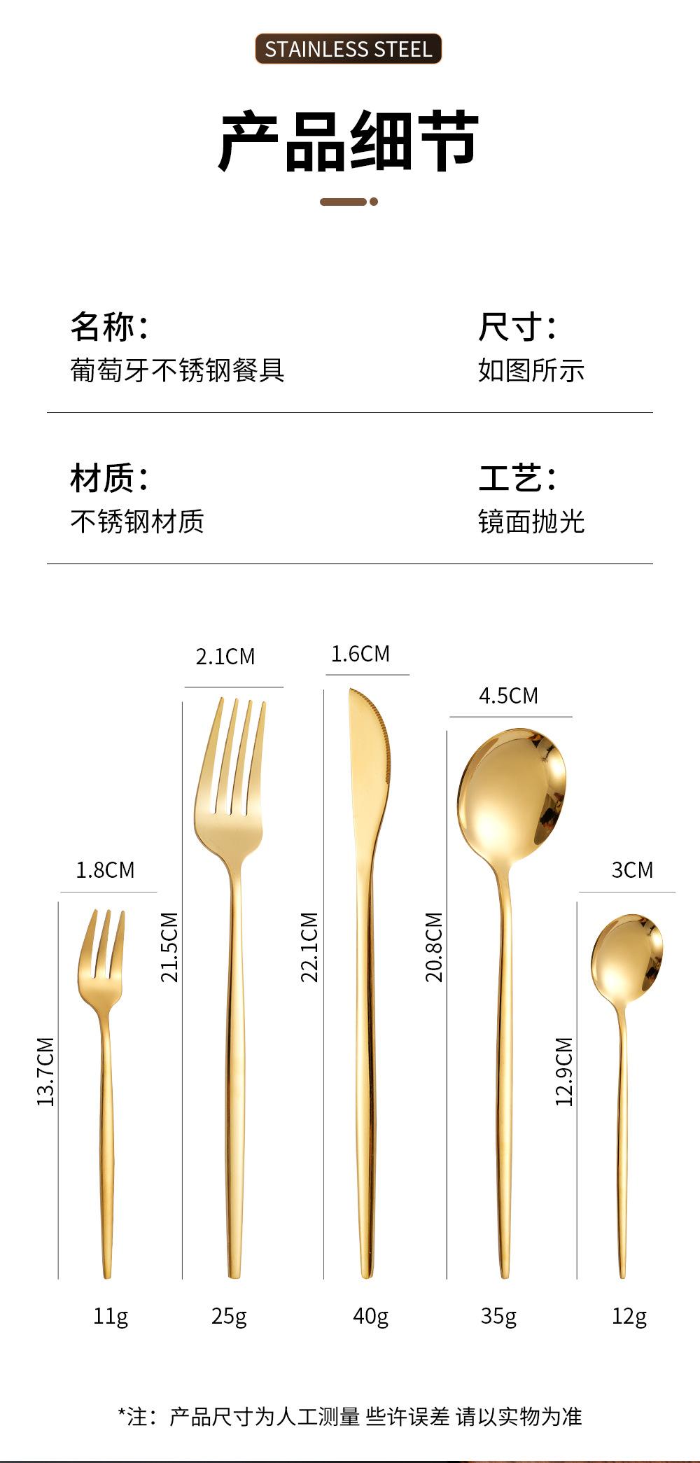 Cubiertos Portugueses de Mango Plano Acero Inoxidable Cuchillo y Tenedor Cuchara Hotel Restaurante Cuchillo para Bistec y Tenedor Cuchara Juego de Cinco Piezas traje Cuchara de Café