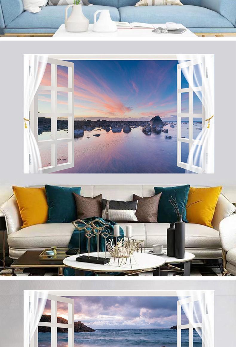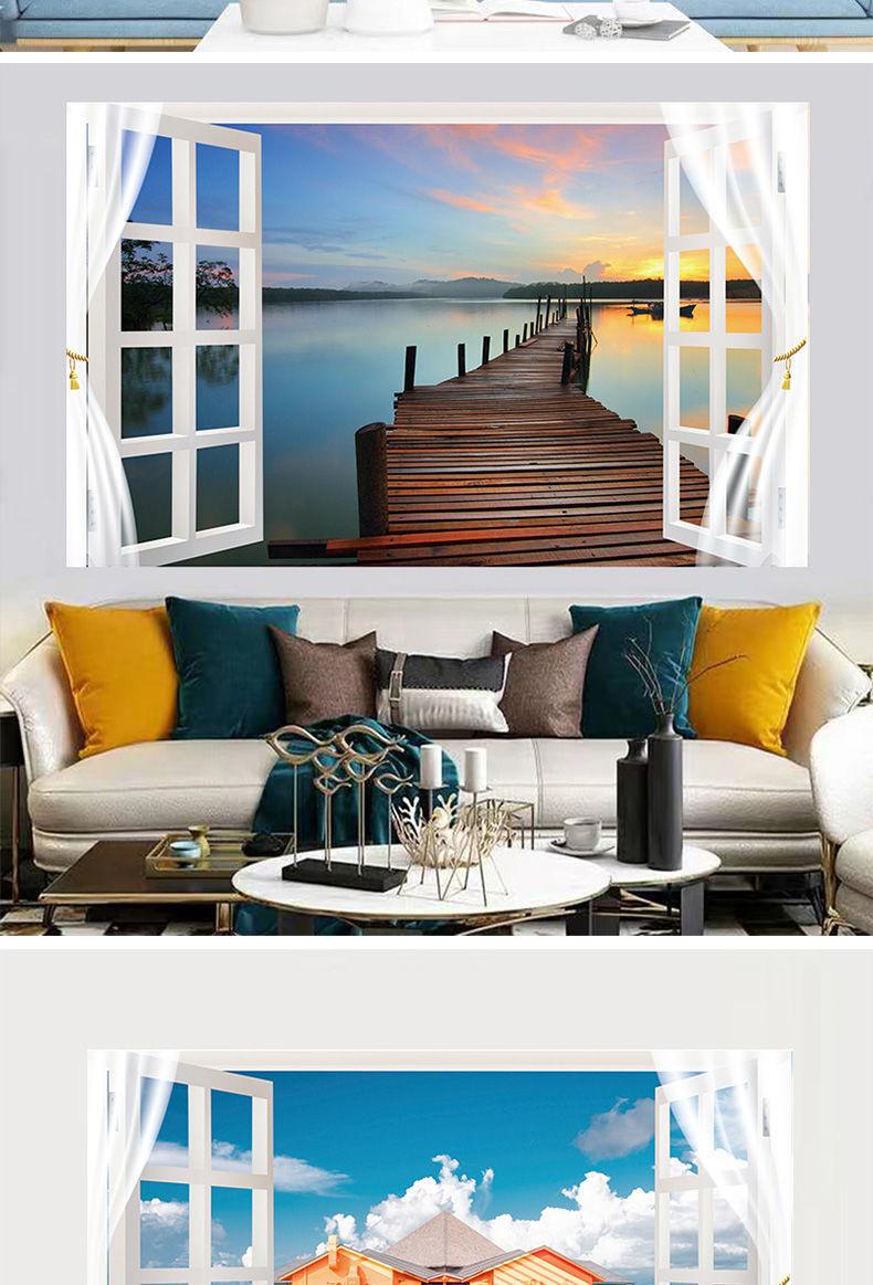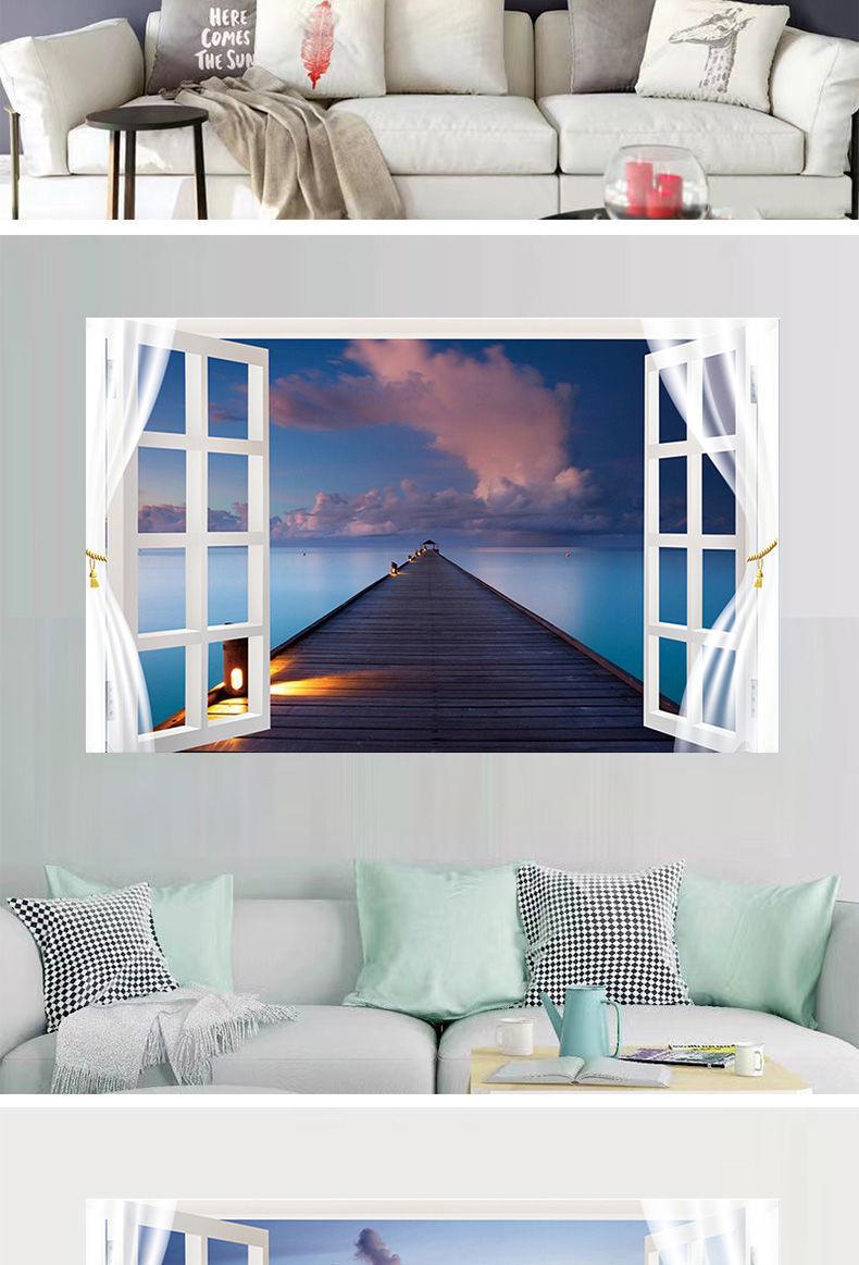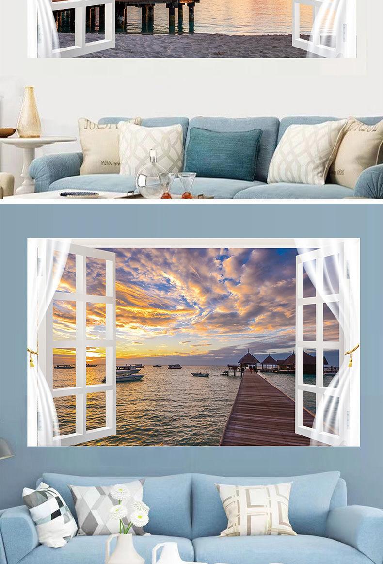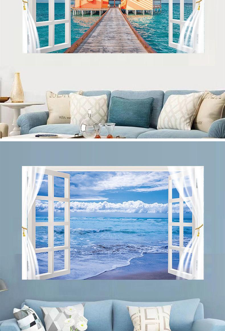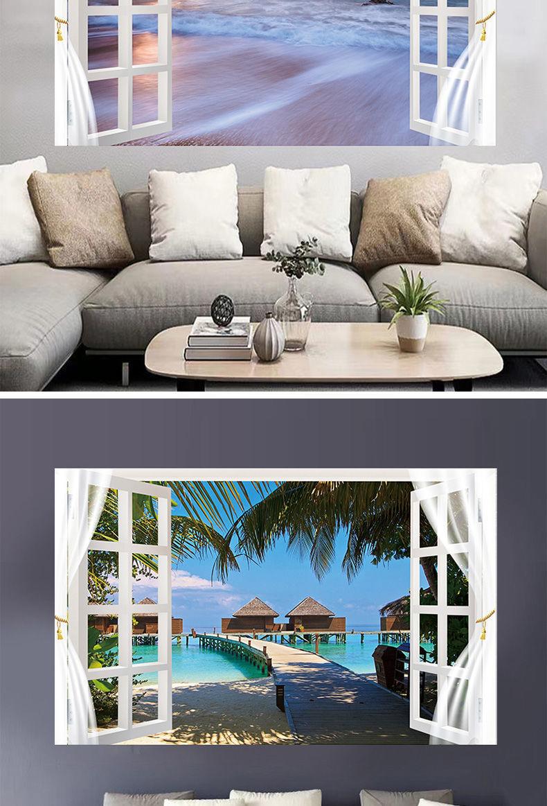 Adhesivos de pared para ventana simulación pintura decorativa dormitorio sala de estar comedor pared de fondo adhesivos autoadhesivos mural de paisaje 13 opcionales