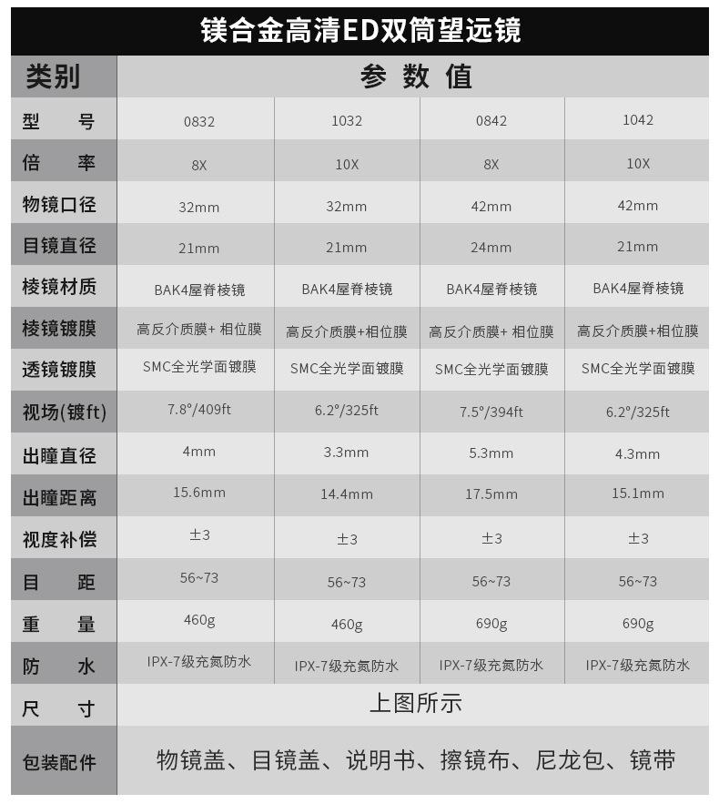 8x32ed mirror [portable model], 8x42ed mirror [comfortable style], 10x42ed mirror [upgraded model], 10x50ed mi...