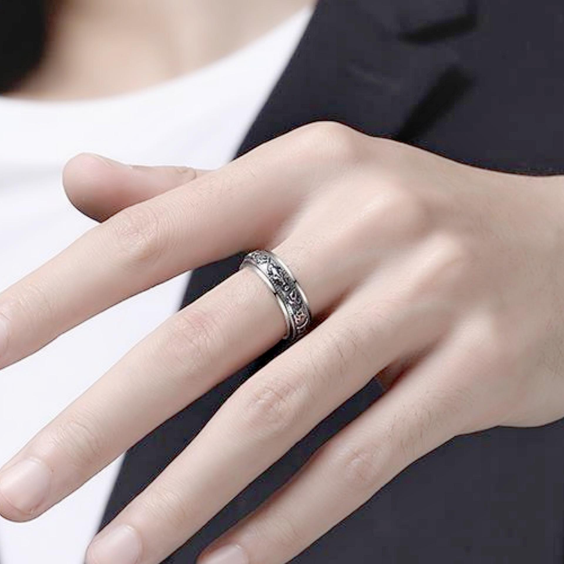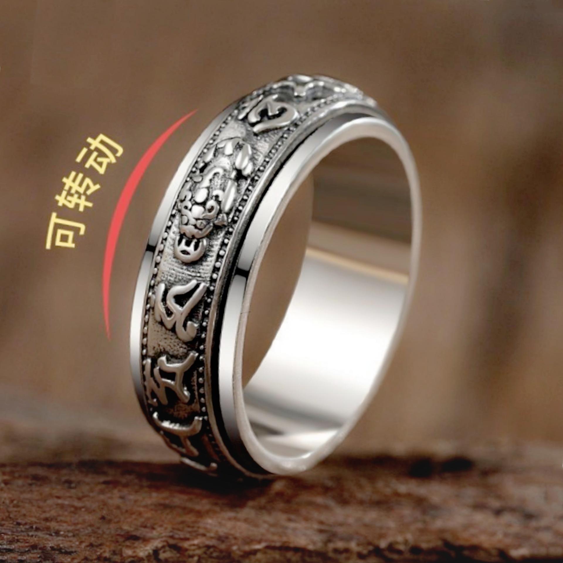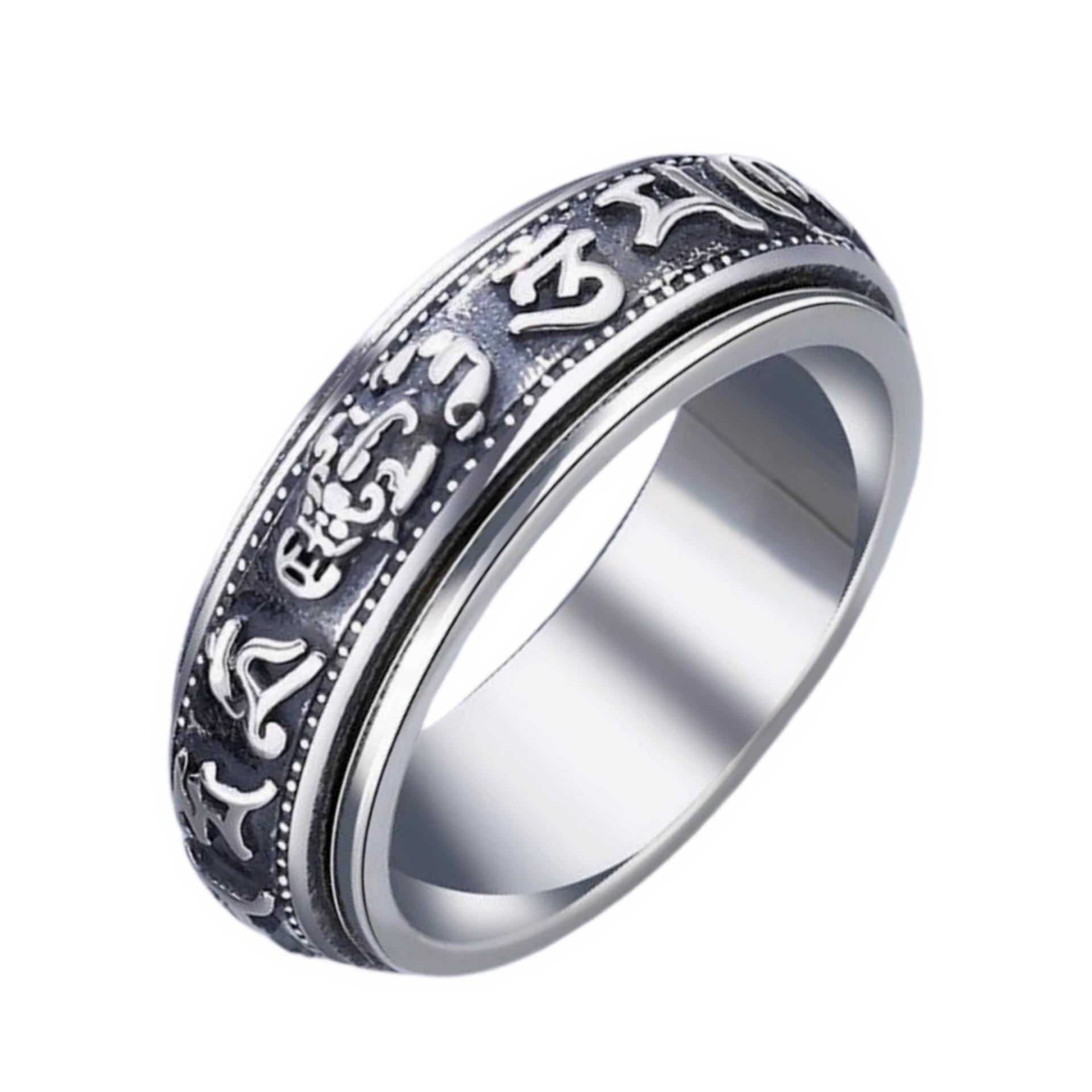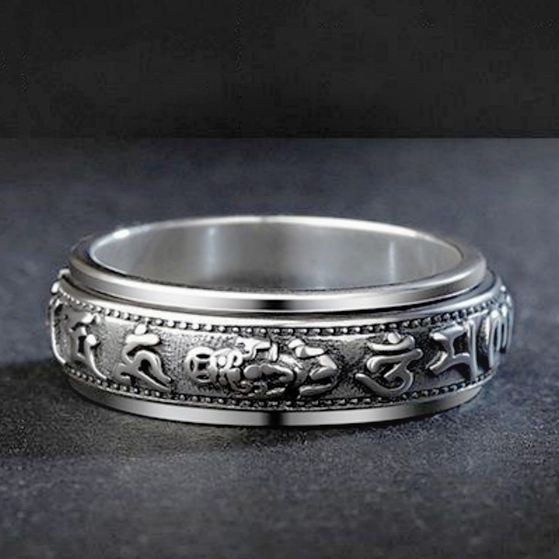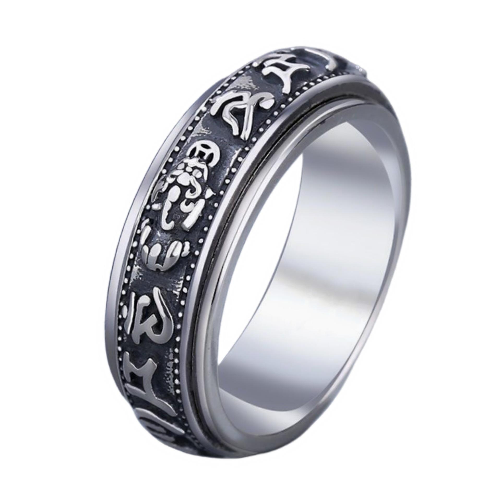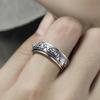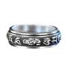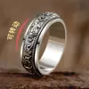 Anillo dominante creativo de plata tailandesa negro retro mantra de seis palabras moneda giratoria anillo decoración anillo giratorio de doble capa
