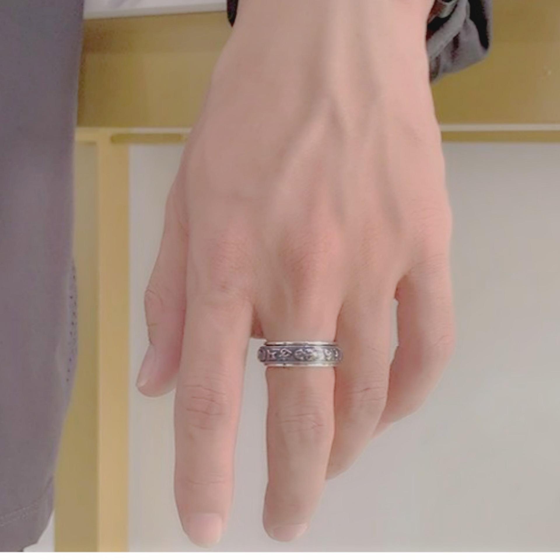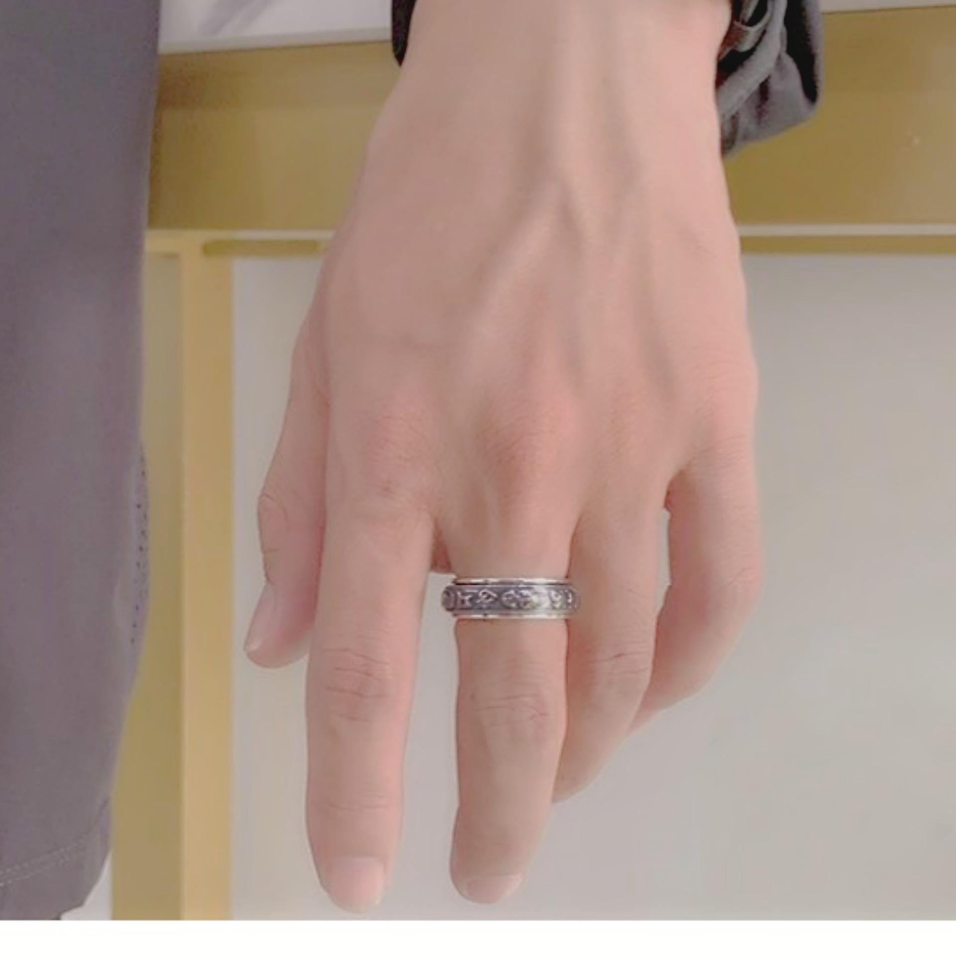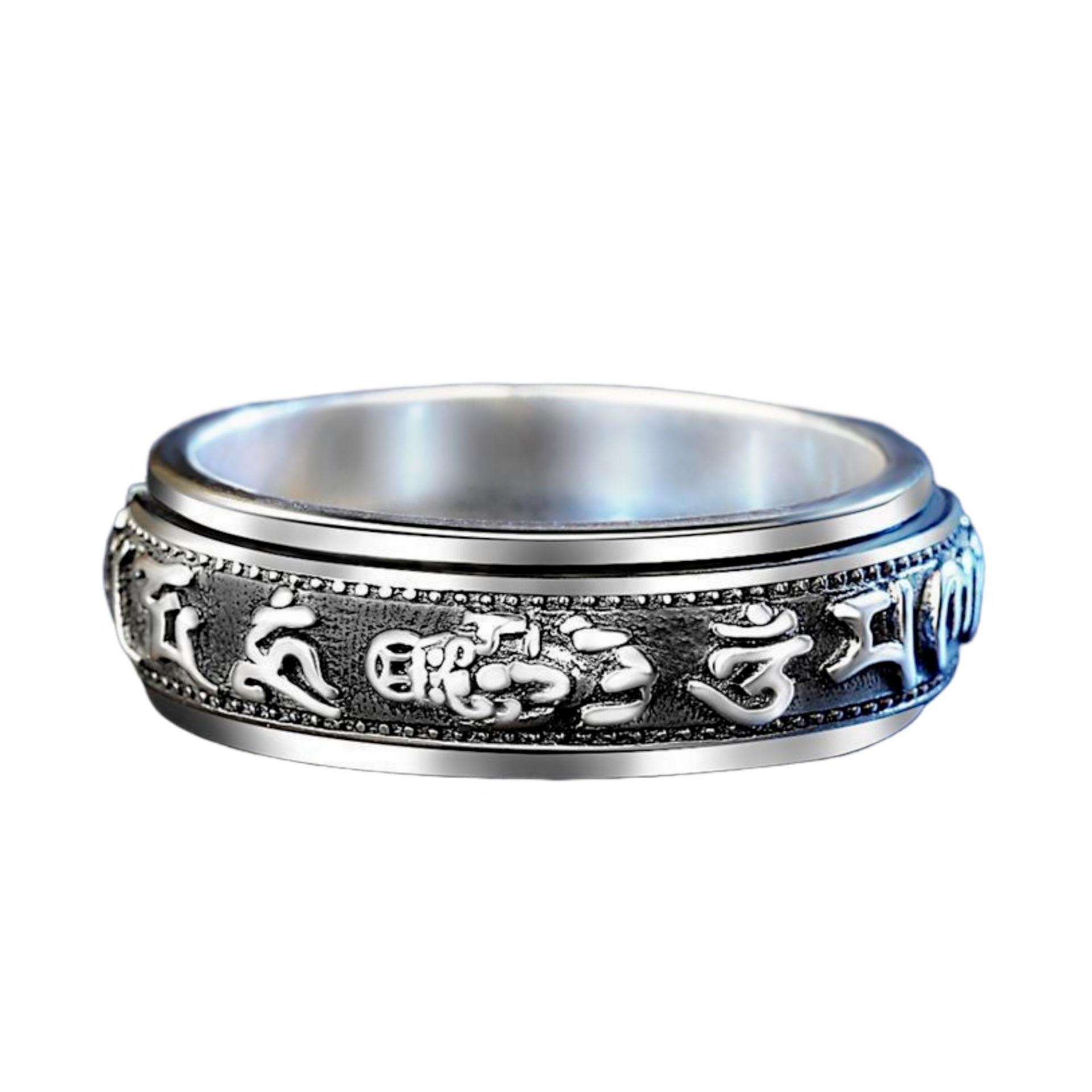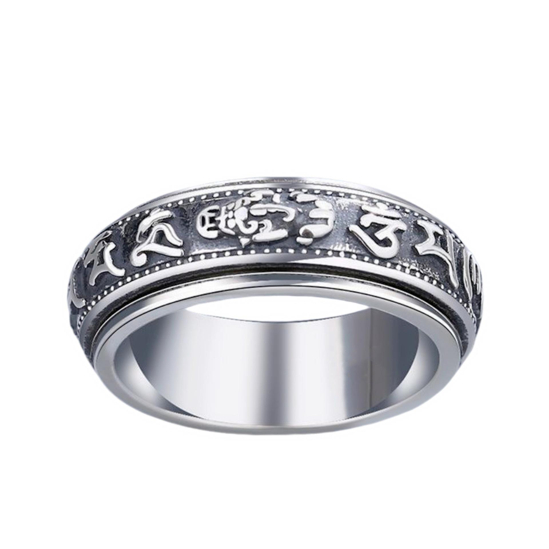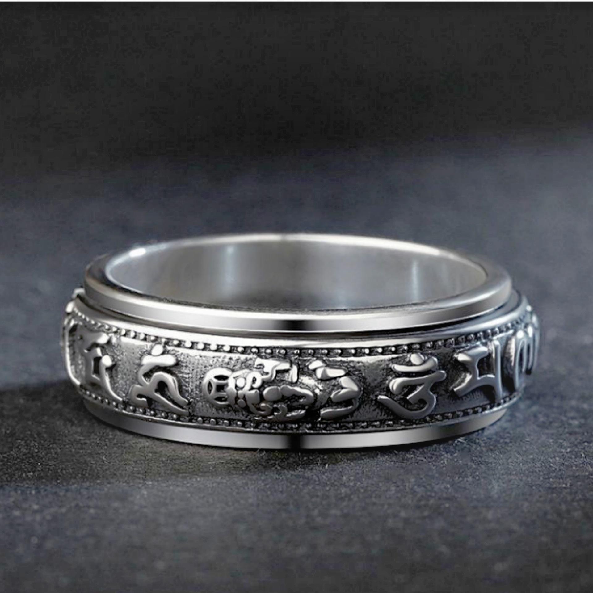 Anillo dominante creativo de plata tailandesa negro retro mantra de seis palabras moneda giratoria anillo decoración anillo giratorio de doble capa